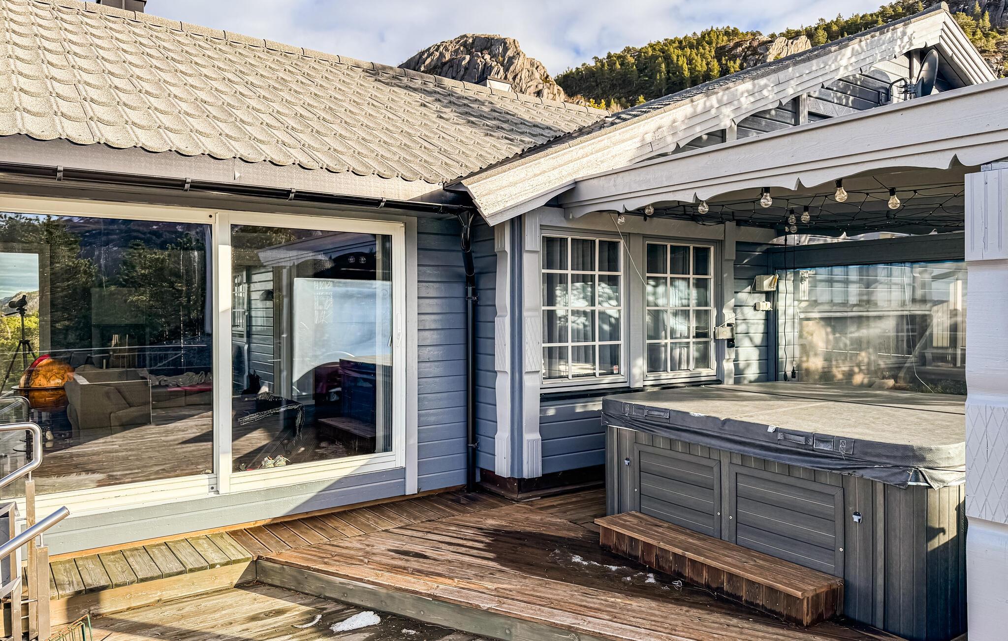 I dette lækre hus får I alt, I kunne drømme om til en rigtig Norgesferie. Huset er både varmt og flot indrettet med mange træelementer- og bjælker, der skaber en helt særlig stemning, som jo kun forstærkes af den vidunderlige panoramaudsigt over fjorden. Udsigten er allestedsnærværende, men nydes dog bedst fra det store udendørs spabad, hvorfra I udover den smukke natur også kan være heldige at spotte ørne, der nogle gange svæver majestætisk rundt over fjorden. På de kølige dage kan I tænde op i brændeovnen og lade en smuk dag gå på hæld med en hyggelig filmaften, mens I lægger planer for de kommende dage.