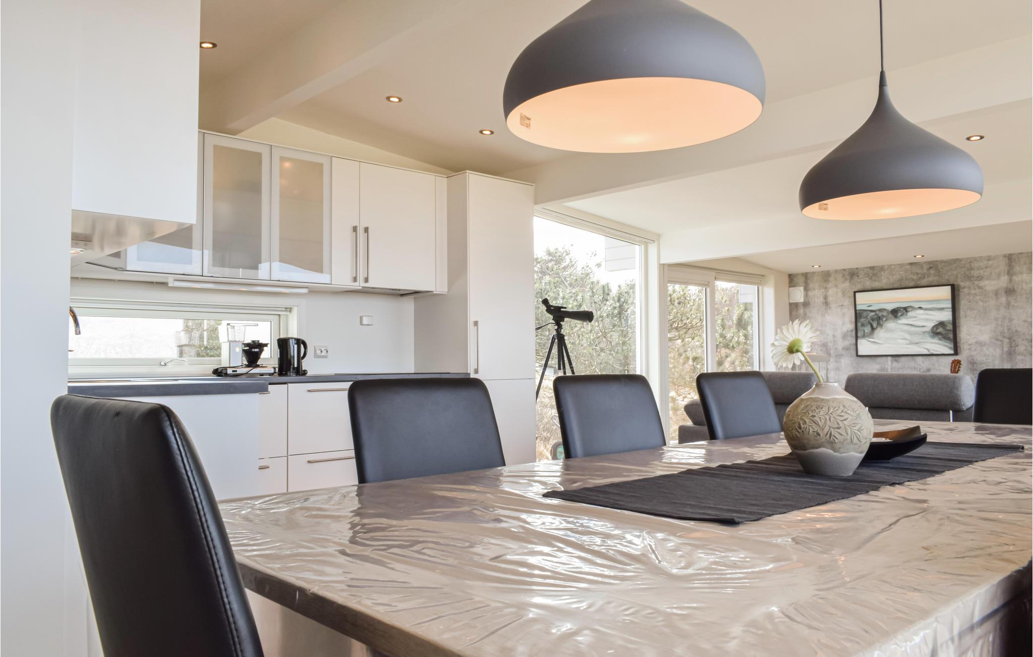 Med sine stilfulde og hyggelige møbler imponerer sommerhuset til sine gæster fra første øjeblik. Her kan I sidde behageligt sammen i komfortable møbler, se en film eller spille spil og lave planer for den næste feriedag sammen. De store vinduer giver et fantastisk lysindfald og en smuk udsigt.