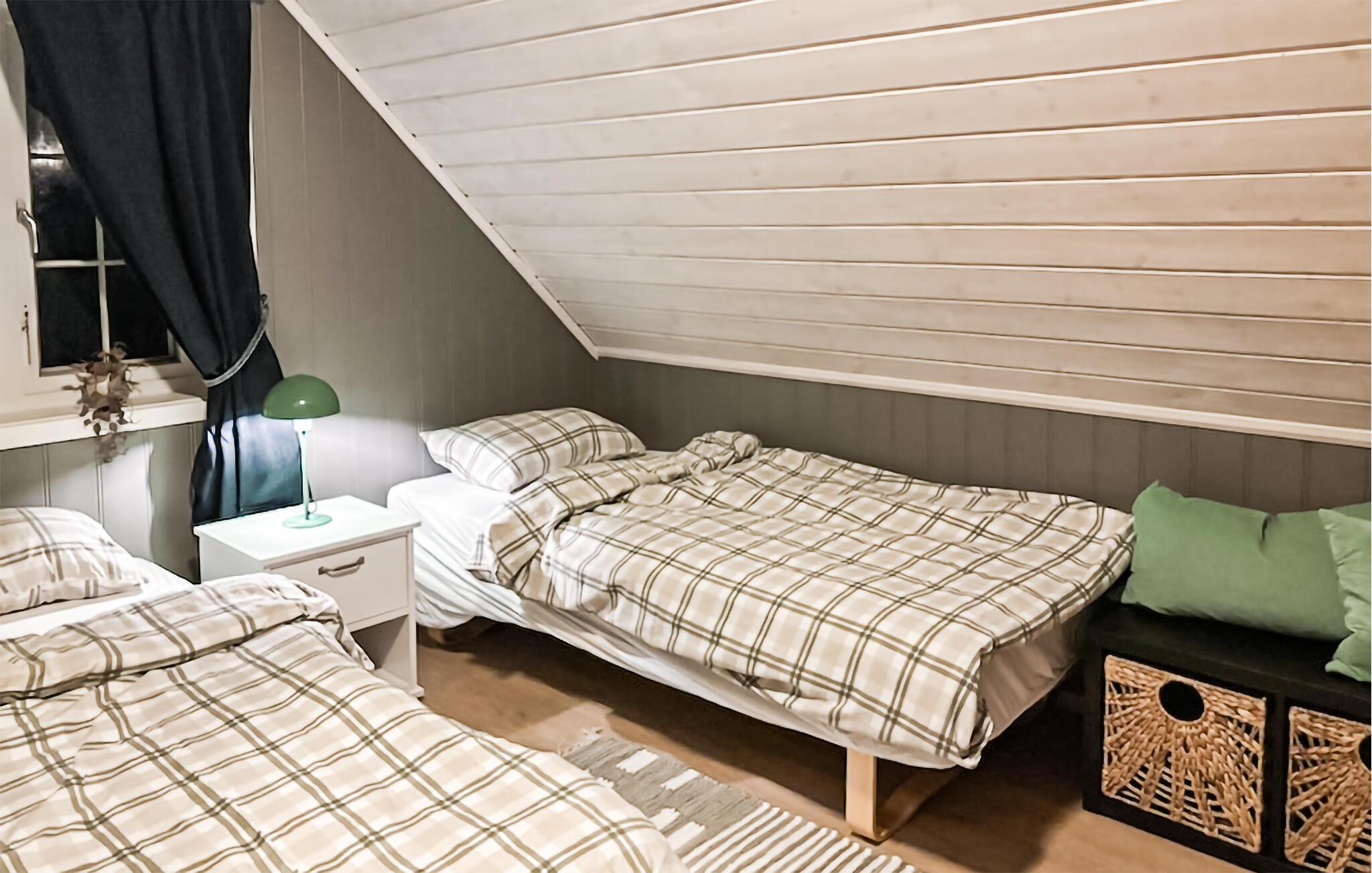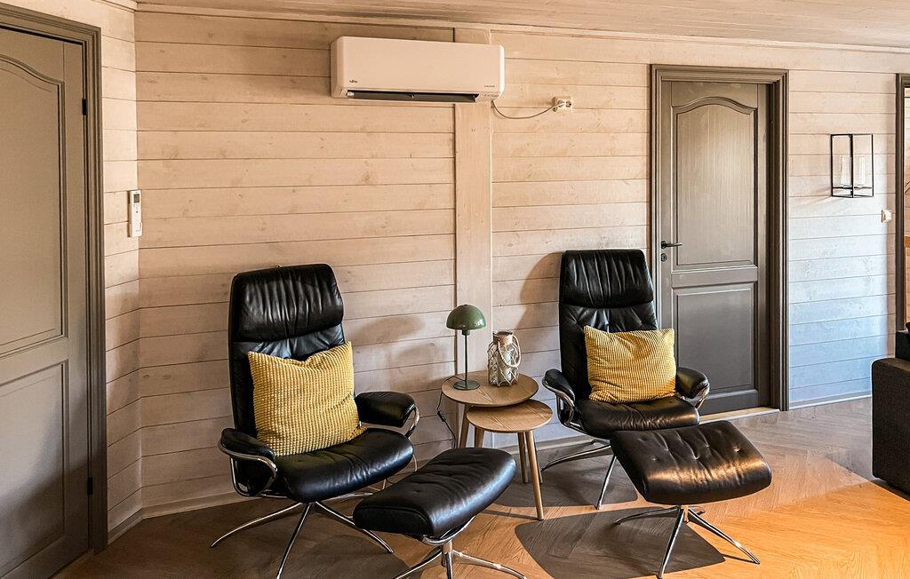 Velkommen til dette komfortable og smagfulde feriehus, hvor I finder masser af plads til en hyggelig pause med venner eller familie. Glæd jer til hyggelige måltider ved det behageligt oplyste spisebord, læg fødderne op på den behagelige læsestol efter en lang rejse eller nyd tiden sammen med en munter spilleaften i den hyggelige sofa.