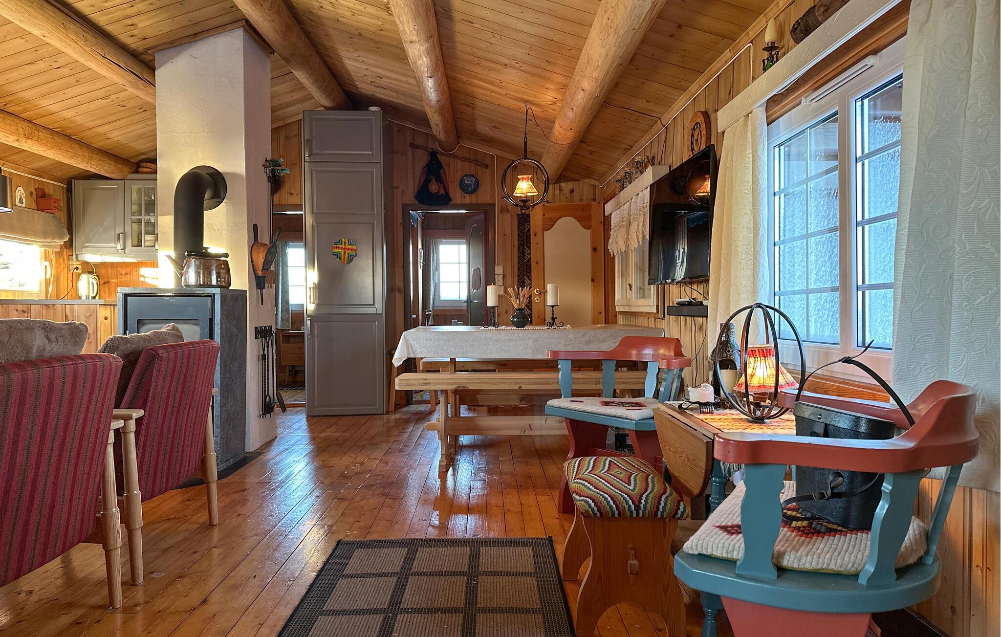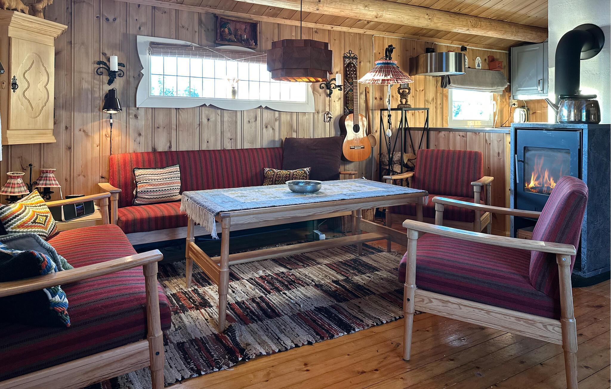 Dette praktiske og autentiske træferiehus tilbyder familien det ideelle tilflugtssted midt i den norske natur. Brændeovnen i stuen skaber en hyggelig atmosfære og lægger op til nogle afslappende timer. Den rummelige terrasse er det ideelle sted at nyde lange sommeraftener og indånde den klare bjergluft. Her kan I afslutte dagen i fred og føle jer helt hjemme.