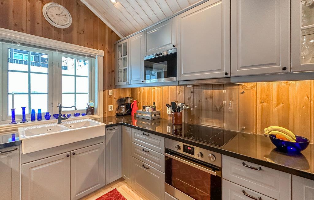Glæd jer til en afslappende ferie med familien. Dette skønne feriehus emmer af rendyrket hyggestemning, hvilket man især mærker om aftenen, når der er ild i pejsen, mens der steges og brases i køkkenet, og børnene leger. Efter en lang dag på farten er det skønt at få varmen i saunaen.