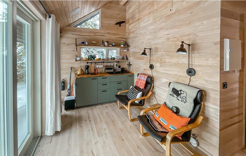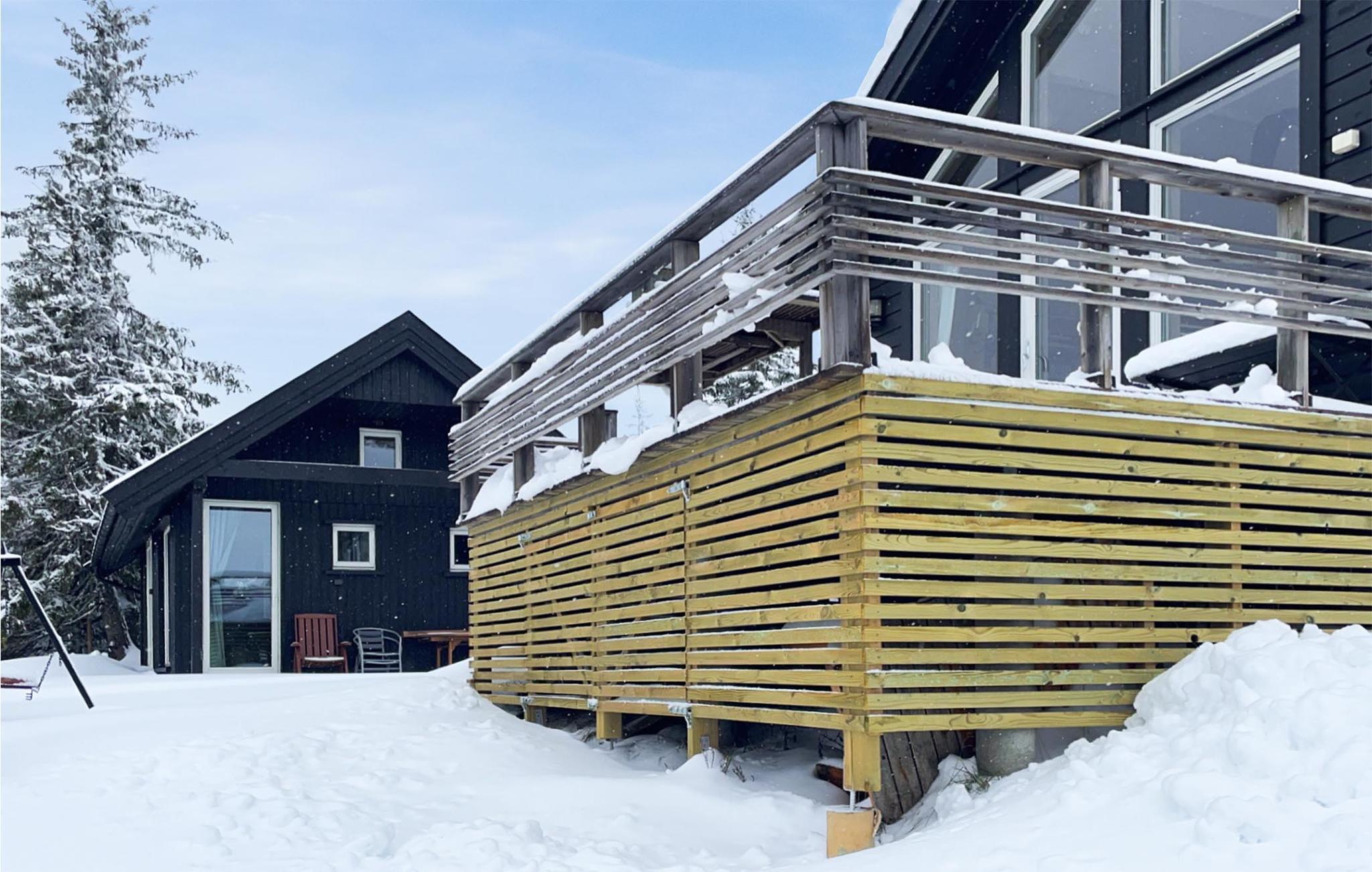 Glæd jer til denne komfortable bolig, som består af to hytter og er optimal til en stor familier eller turen med bedsteforældrene. De veludstyrede hytter har to saunaer, der kan bruges på samme tid. Der er derfor gode muligheder for at slappe af og hvile de trætte ben efter en lang dag på farten. Den moderne tilbygning giver jer en fantastisk udsigt over Snörvillen og Sjusjövannet gennem panoramavinduet, lige fra I slår øjenene op i det store soveværelse. I kan også nyde dagens hyggestunder i hovedhuset, som har åbent køkken og gode faciliteter til madlavning. Huset har store vinduespartier, der lukker masser af naturligt lys ind i boligen og sørger for en spektakulær panoramaudsigt over bjergene. På klare dage strækker udsigten sig så langt som til Högevarde. Om aftenen kan lysene fra Gjövik ses. Der er direkte udsigt til Birkebeinerlöypa, som ligger blot et par hundrede meter under hytten.