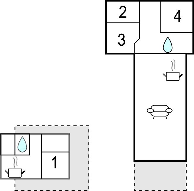 Badeværelse (nr. 1) - WC. Varmt og koldt vand. Bruser