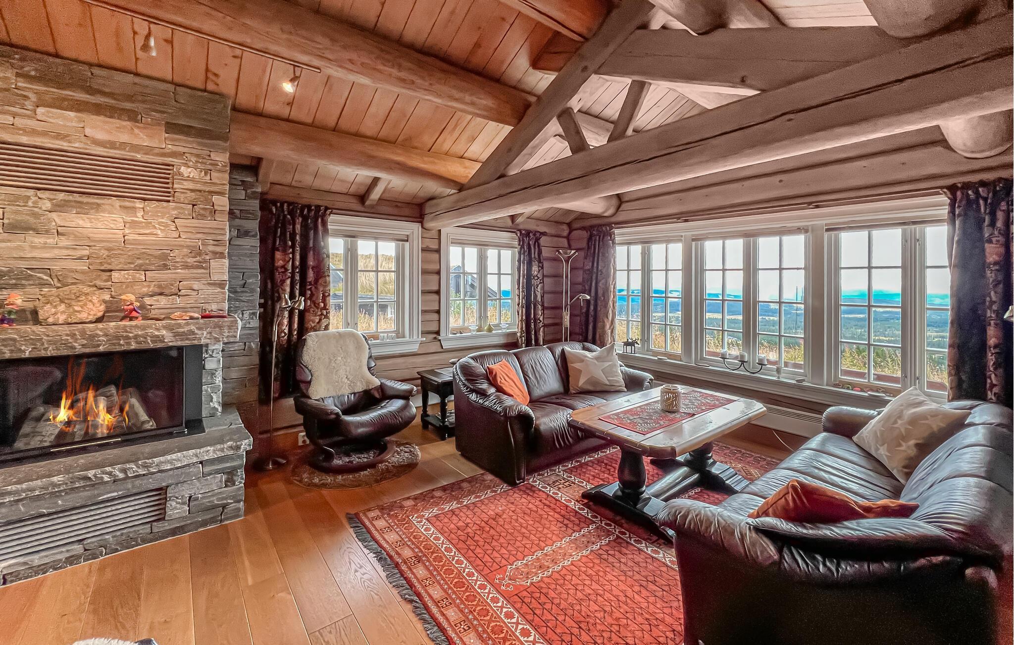 Denne rummelige hytte tilbyder familier eller vennegrupper den ideelle base for en afslappende ferie og forkæler jer takket være sin høje beliggenhed med fortryllende udsigter. Tilbered lækre måltider i godt selskab, nyd hyggelige måltider, find sammen til en spilleaften efter en lang vandretur, forkæl jer selv med nogle afslappende øjeblikke i saunaen eller lyt til den knitrende pejs, mens I læser.