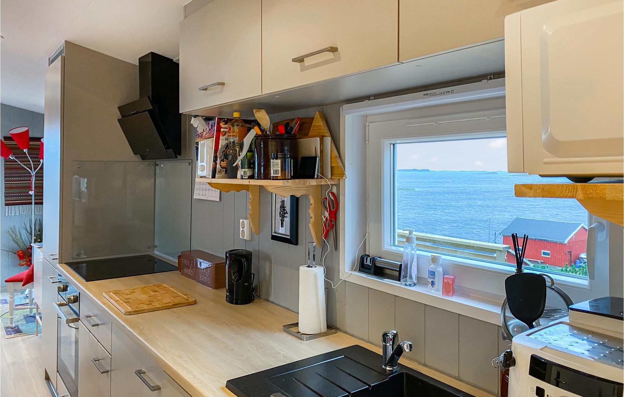 Her kan I nyde en fantastisk udsigt til havet, mens I laver mad, og efterfølgende kan I nyde retterne med en vidunderlig udsigt fra spisebordet. Her bliver I sikkert hængende, længe efter I har lagt bestikket fra jer. Efter en lang, aktiv dag på øen er der ikke noget bedre end at læne sig tilbage i den behagelige sofa og glæde sig til næste feriedag.