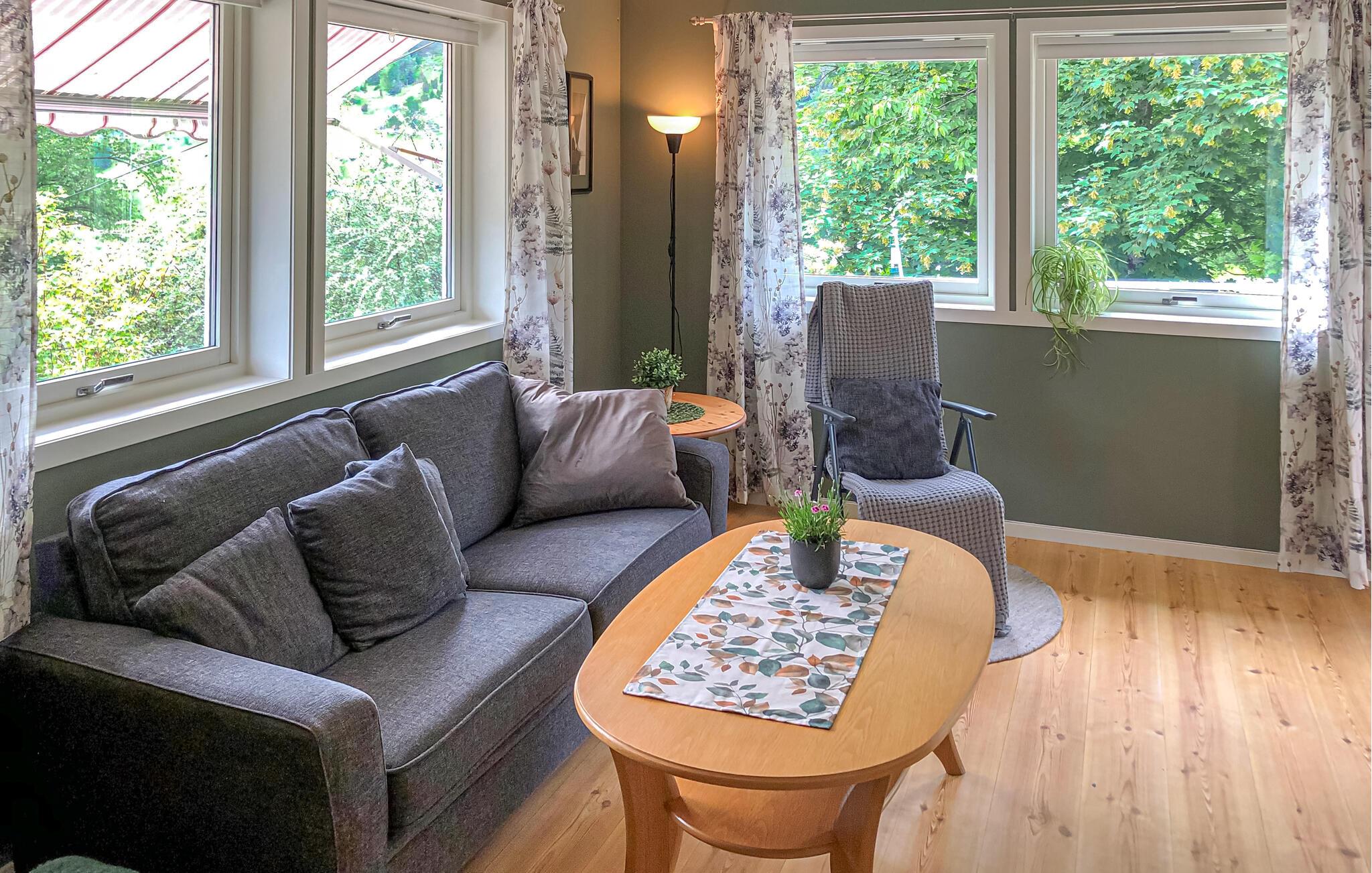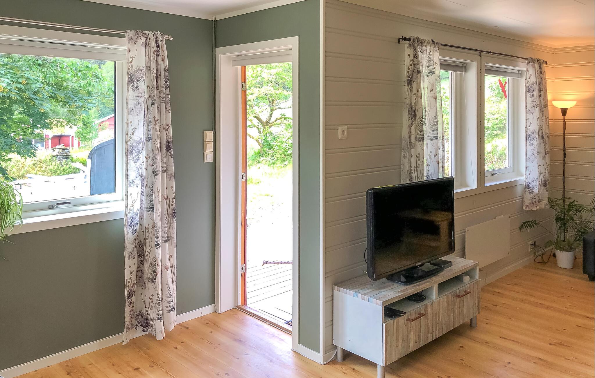 Velkommen til dette flotte træhus, der ligger midt i det fantastiske fjordlandskab og er dejligt indrettet til en ferie med familien i absolut naturskønne omgivelser. Huset er nydeligt indrettet med gode møbler, behagelige farveskalaer og mange vinduespartier, der interiøret et dejligt lysindfald og en vidunderlig udsigt over fjorden. Nyd godt af det veludstyrede køkken og tilbered en solid morgenmad, mens I lægger planer for dagen, der kommer.