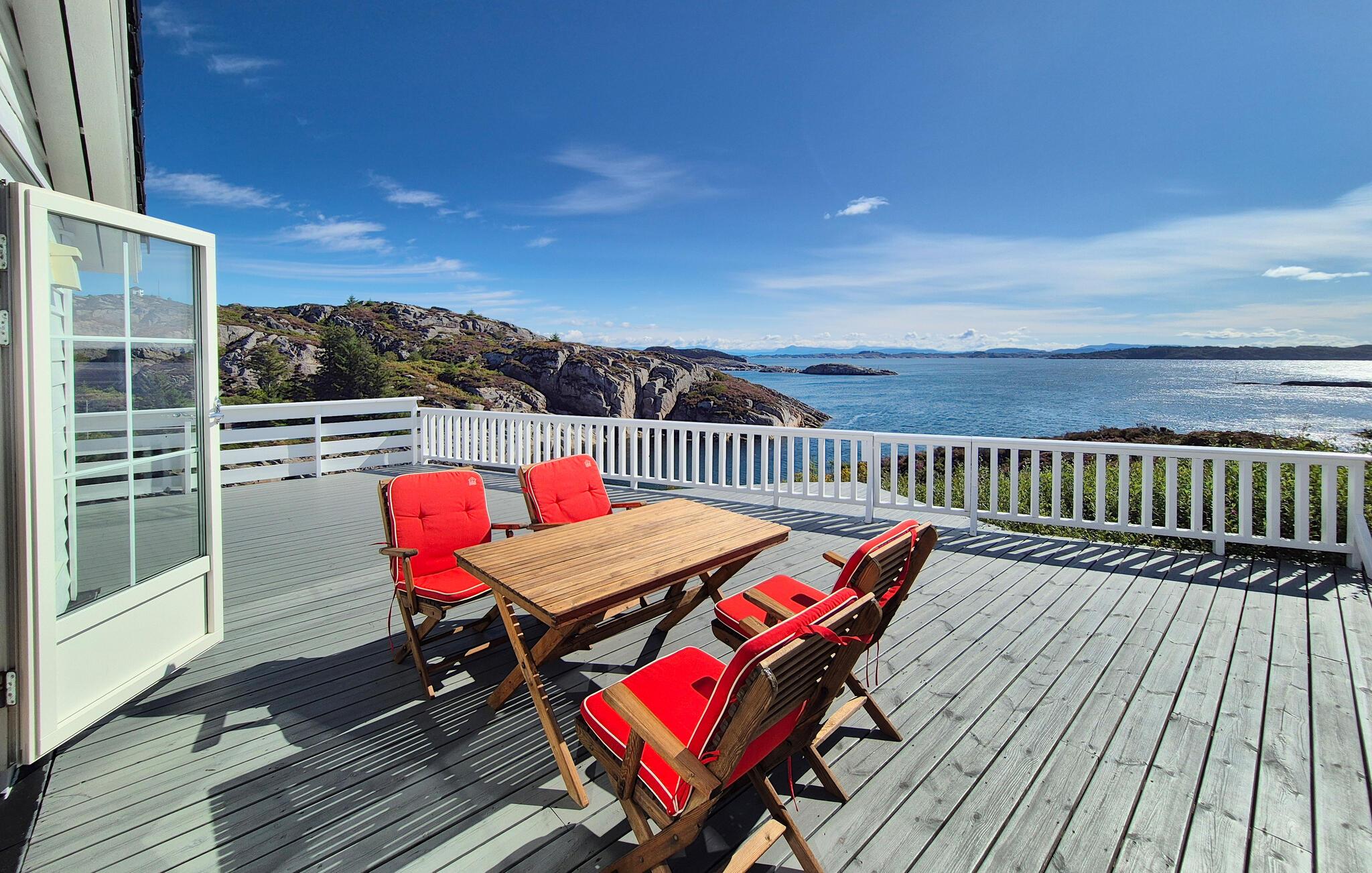 På jeres store terrasse kan I nyde havbrisen over en dejlig morgenmad eller en stemningsfuld grillmiddag. Gå ned til den private mole, genopliv jeres sanser med en forfriskende dukkert i det klare vand eller nyd roen, mens I fisker.