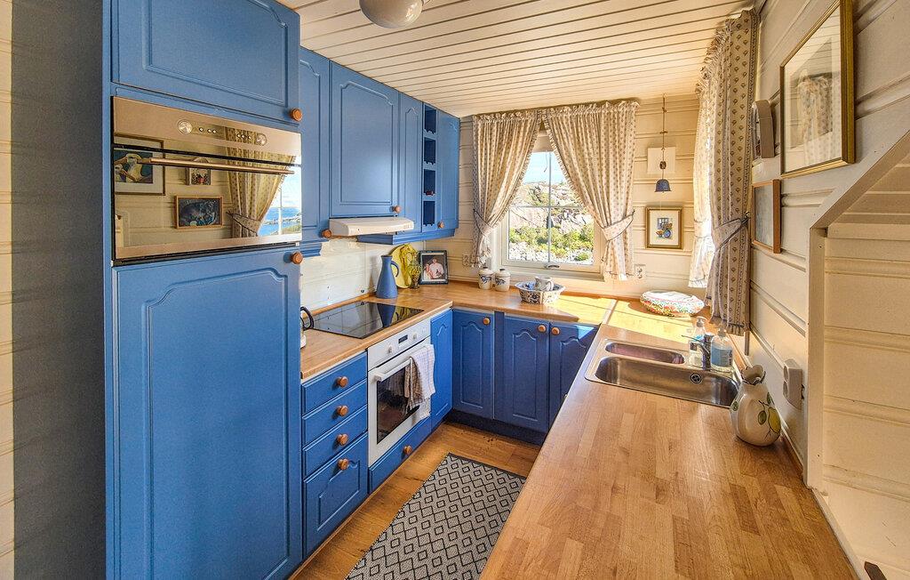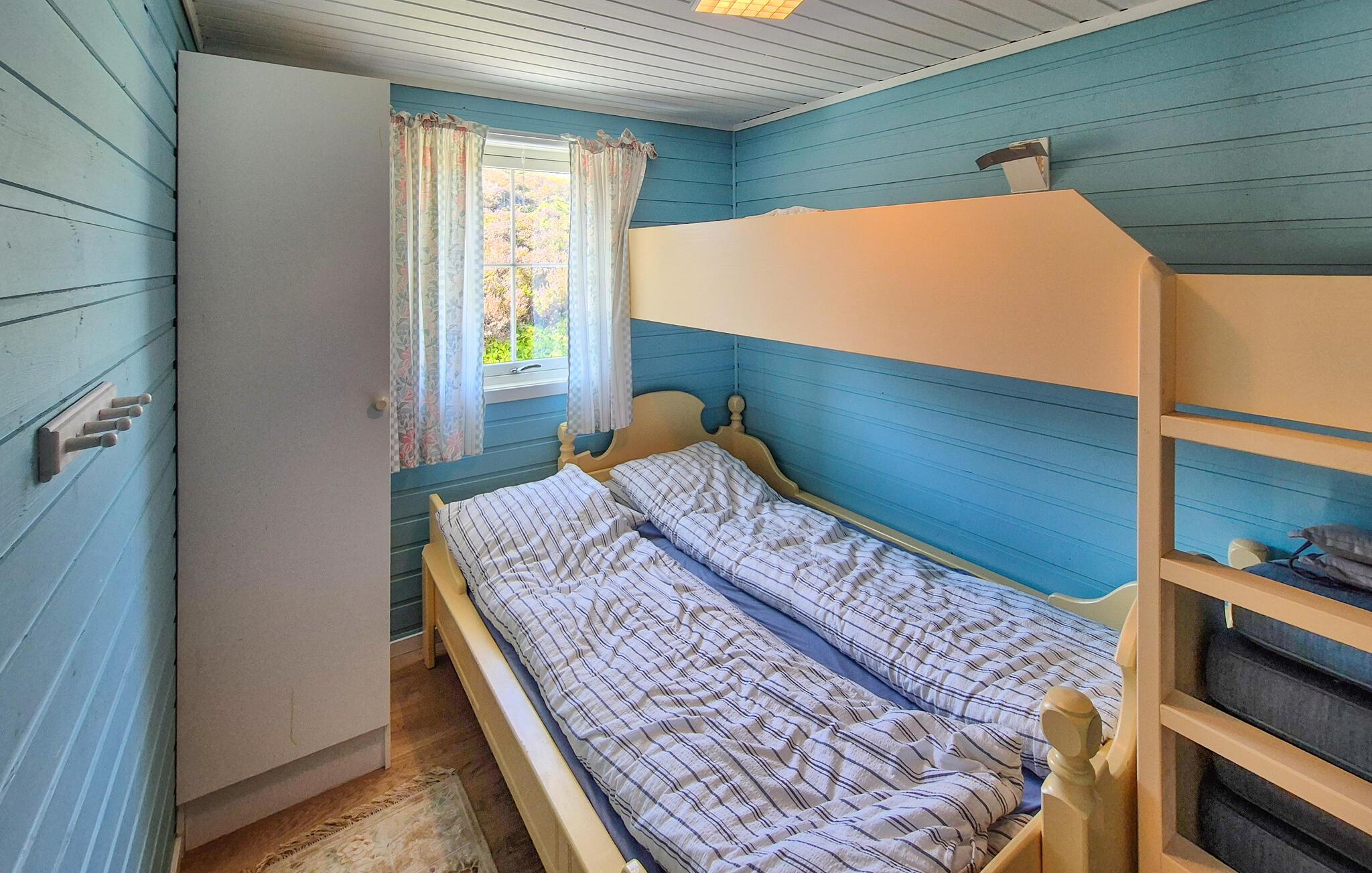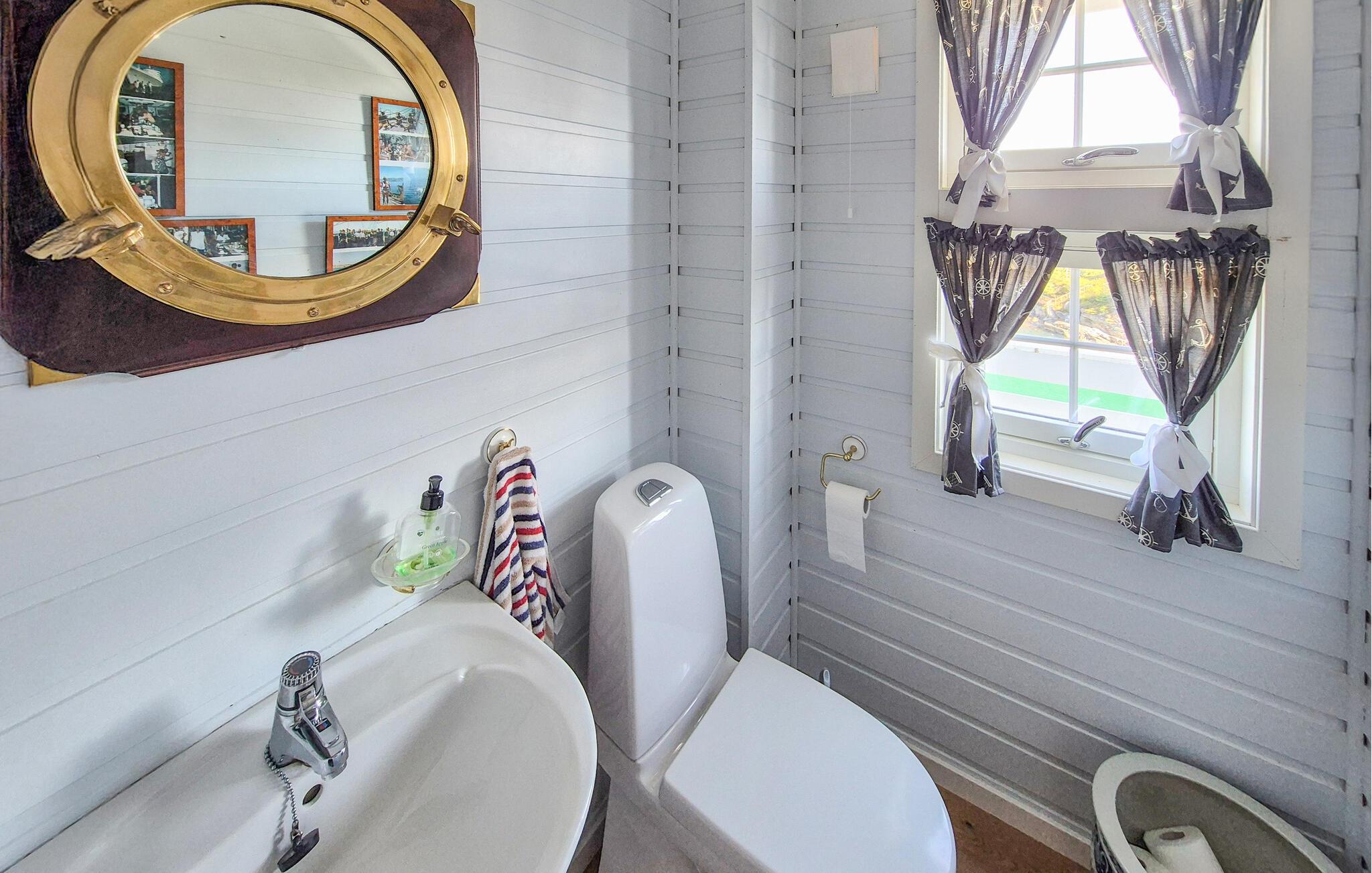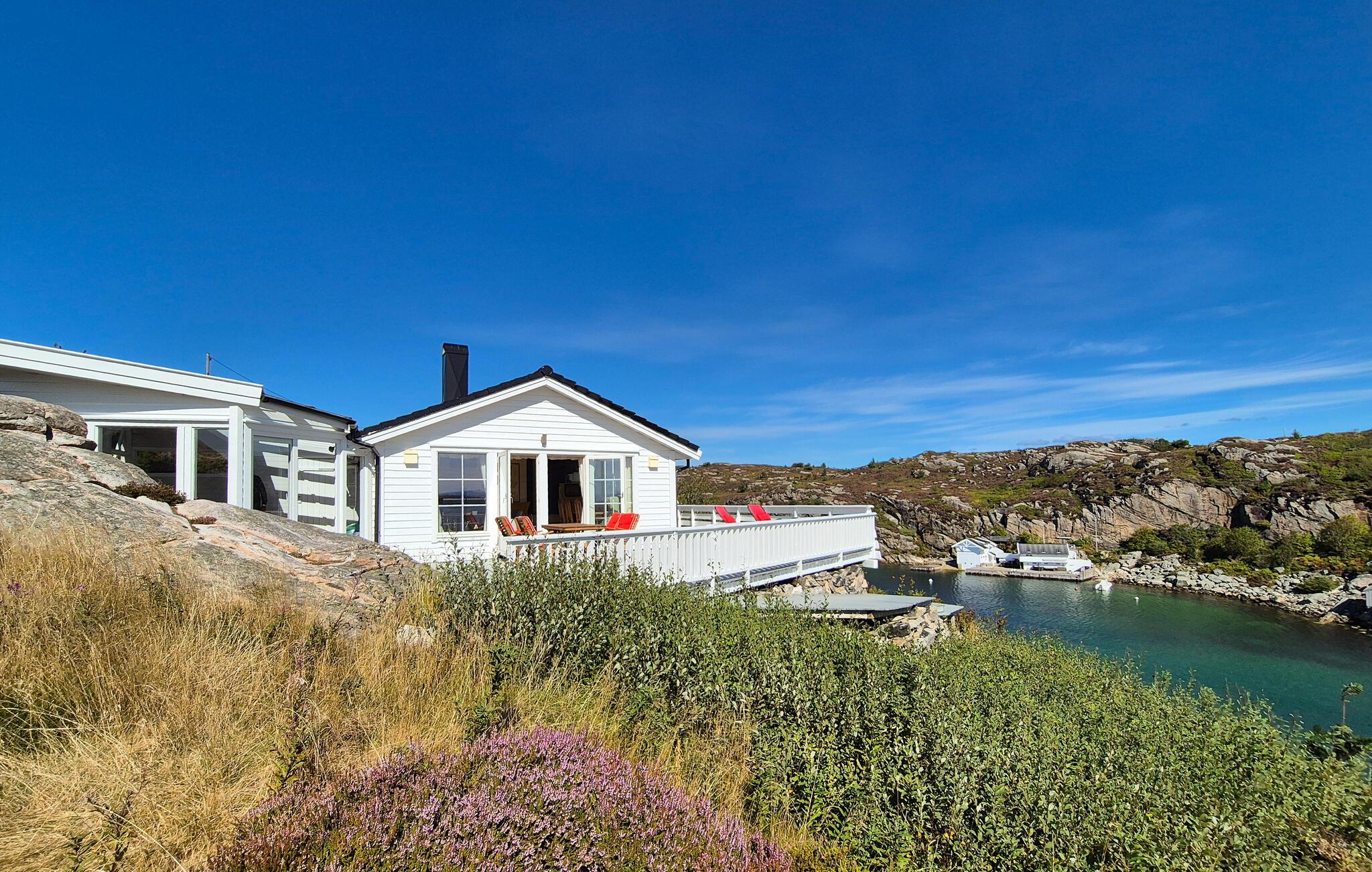 Dette afsidesliggende hus giver jer mulighed for at være tæt på naturen og havet, langt fra hverdagen. Her kan I nyde det lyse, hyggelige interiør og den maritime atmosfære udenfor i hyggeligt selskab. Tryll lækre måltider frem i det indbydende køkken, find sammen omkring det smukke spisebord, og tænd pejsen til hyggelige spilleaftener på de komfortable sofaer.
