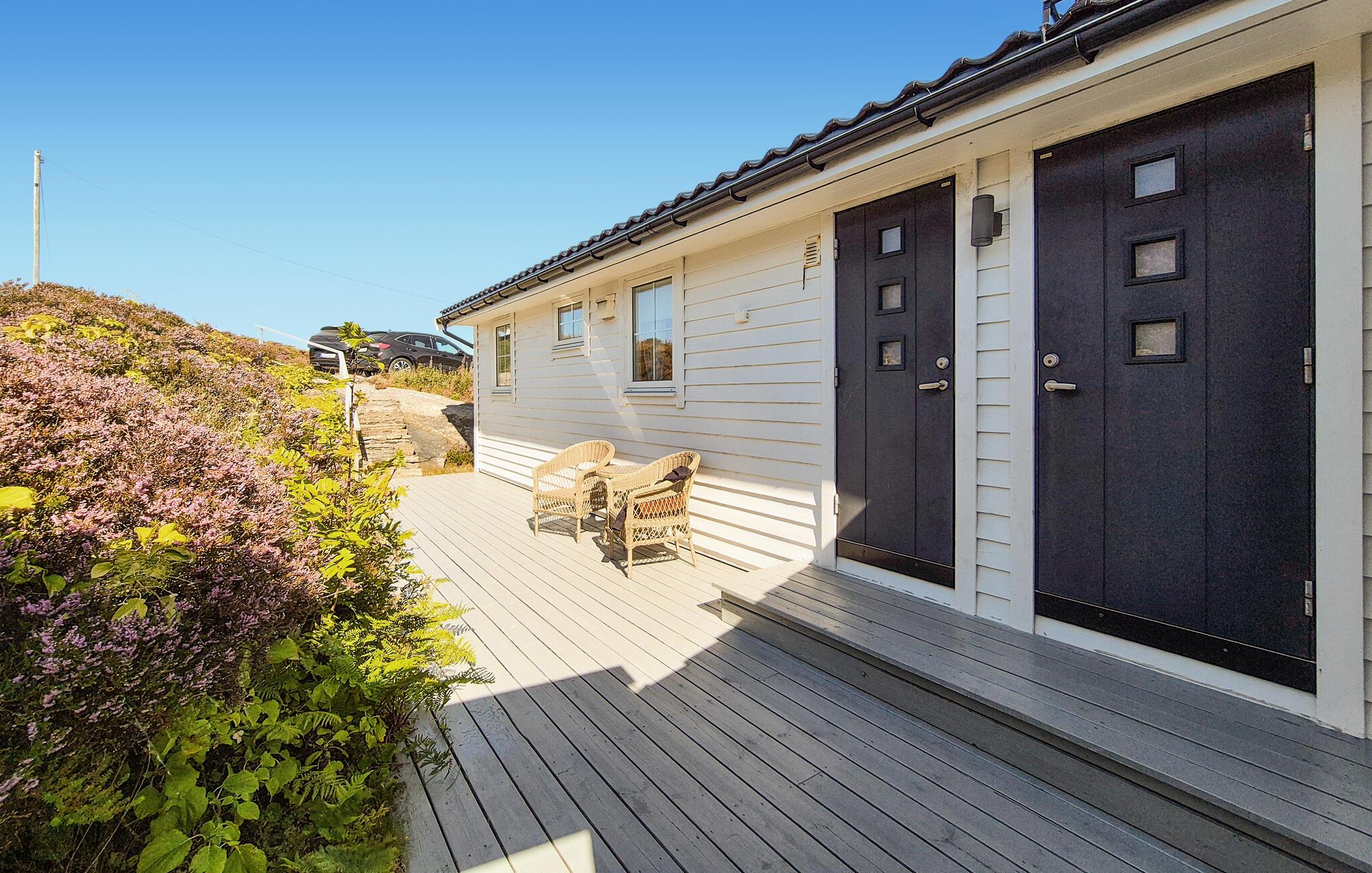 Glæd jer til uforglemmelige dage i dette hyggelige feriehus med fortryllende havudsigt.
