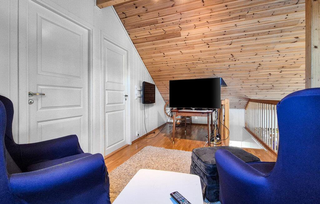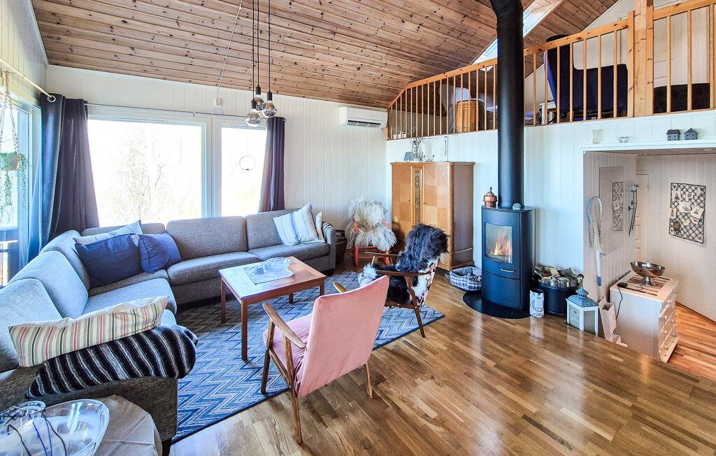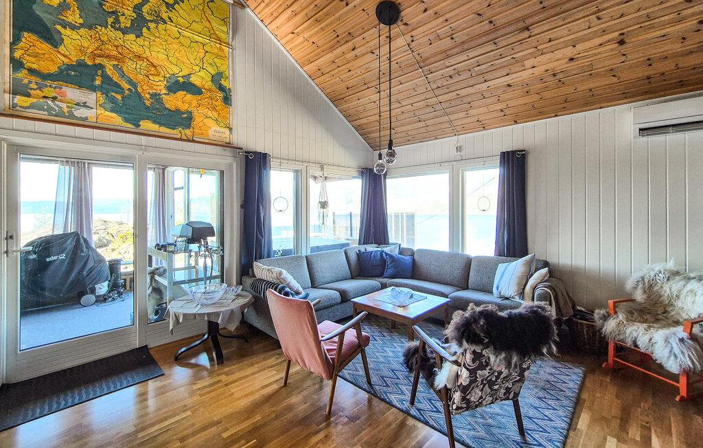 Beliggende i idylliske omgivelser tilbyder dette rummelige feriehus jer et hyggeligt og komfortabelt tilflugtssted til afslappende dage med familien. Efter en lang dag i den friske havluft kan I lade batterierne op med solide måltider ved det indbydende spisebord, tænde pejsen og putte jer i den rummelige sofagruppe til hyggelige aftener foran fjernsynet.