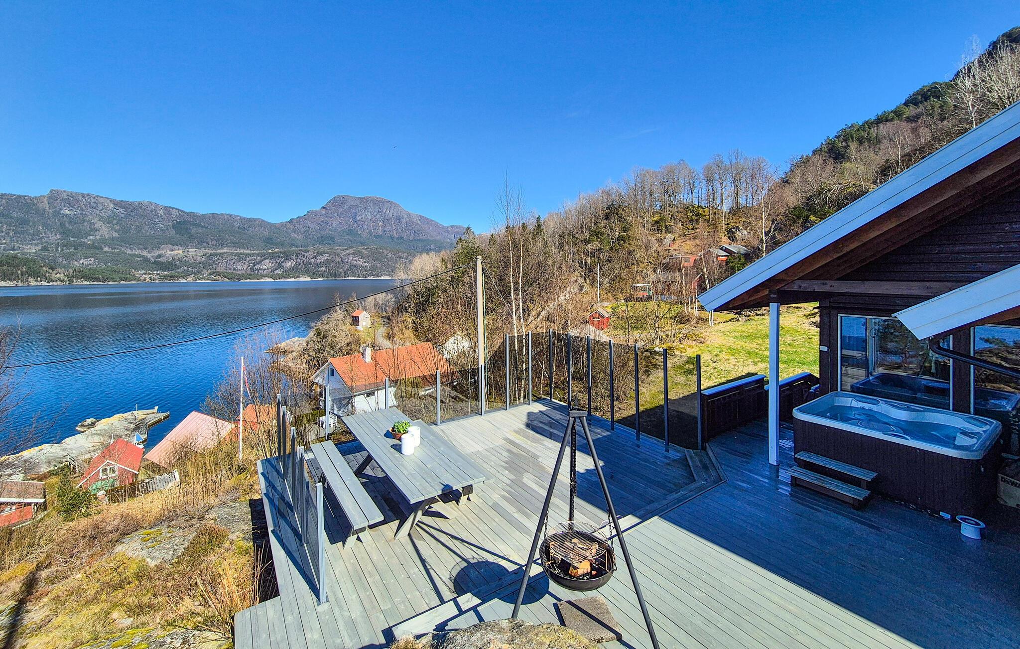 Nyd en uforglemmelig ferie i dette hyggelige feriehus med spabad og magisk udsigt over fjorden.