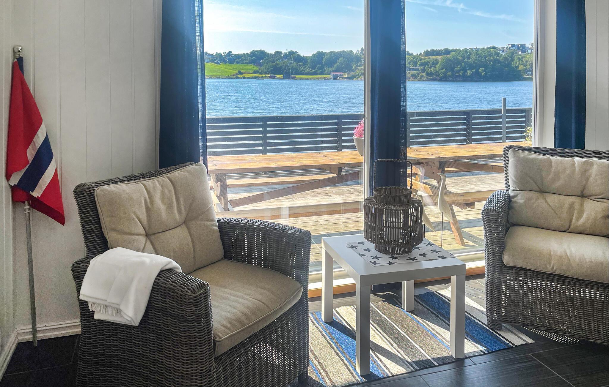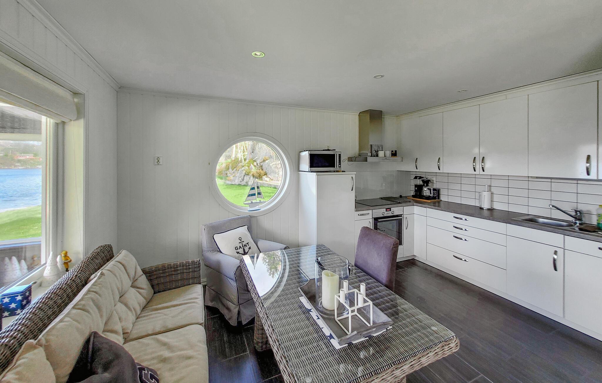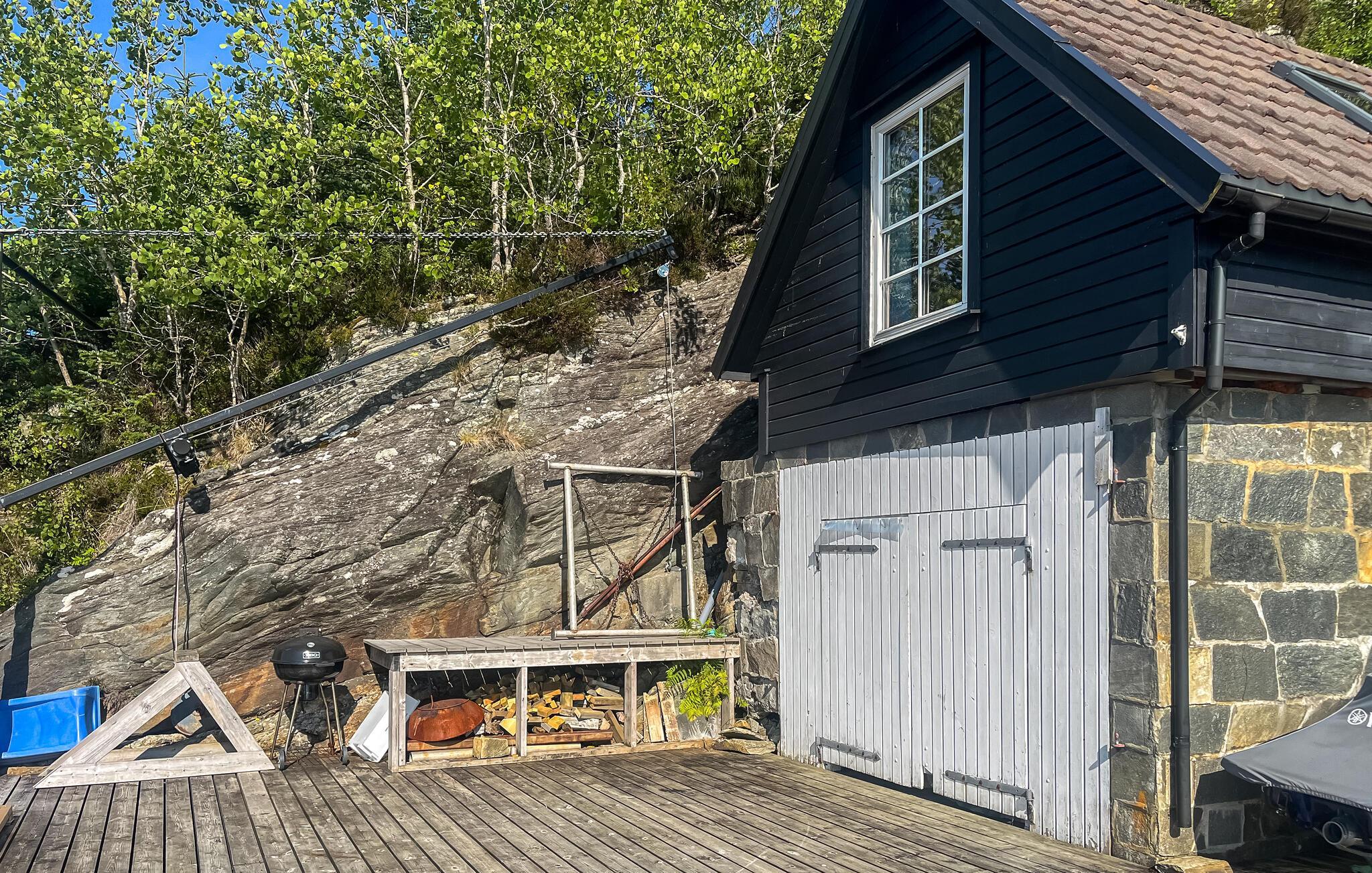 I en smuk region byder dette feriehus jer velkommen til en ferie, som I vil huske i lang tid. Huset ligger på en stor grund med en velholdt have til siden og en sandstrand lige uden for døren. Her kan I sætte hverdagen på pause og fuldt ud nyde freden og roen i området. En velanlagt grussti fører jer til den nærliggende kaj, hvorfra I kan tage på vandudflugter. Lej en båd og tag på afslappende bådture eller prøv lykken med at fiske. Til hyggelige aftener giver det tilstødende bådehus i stueetagen mulighed for selskabelige timer ved langbordet lige ved vandet.