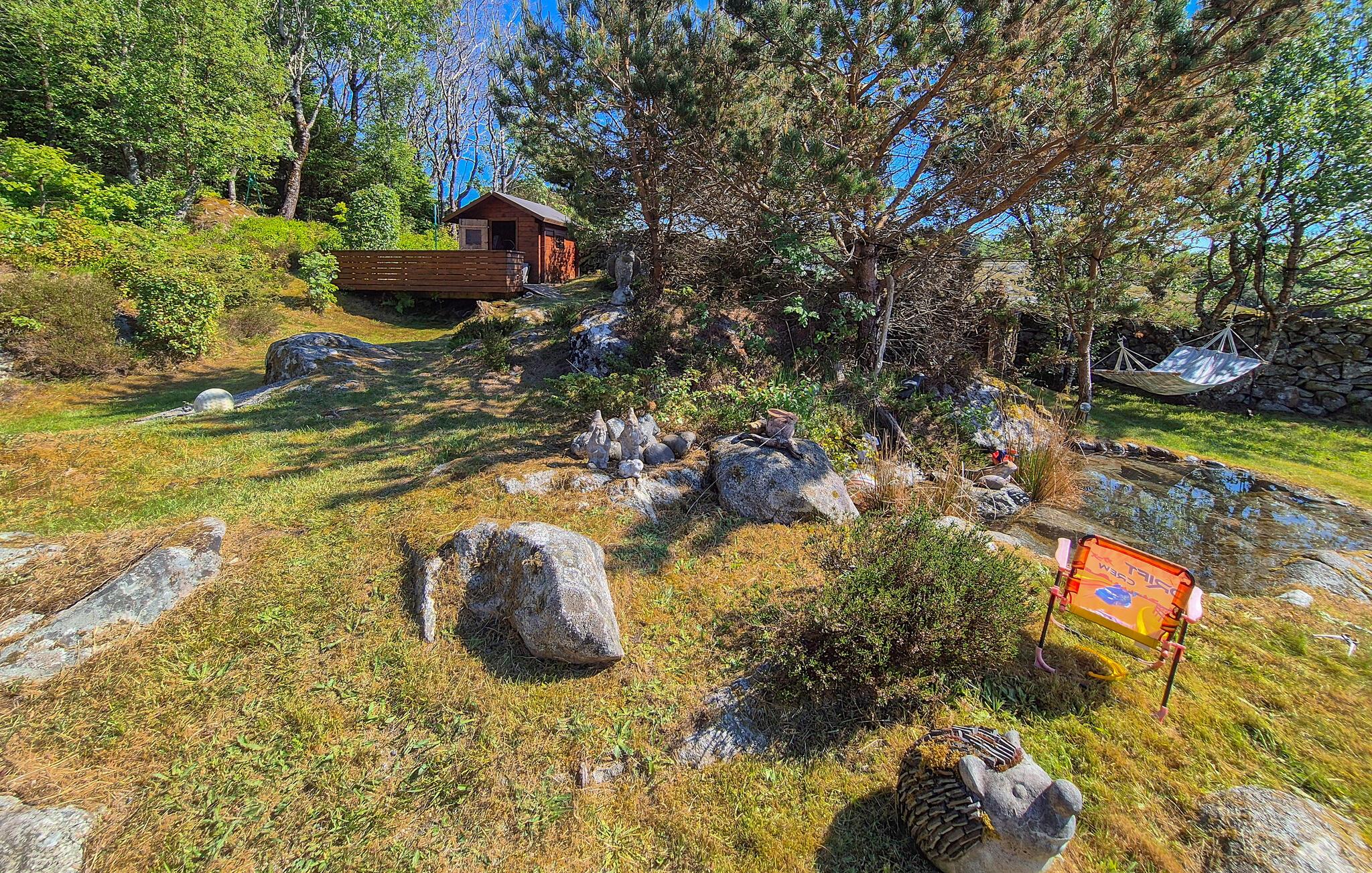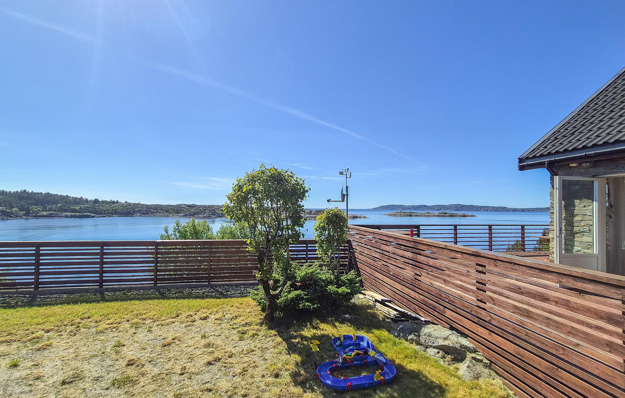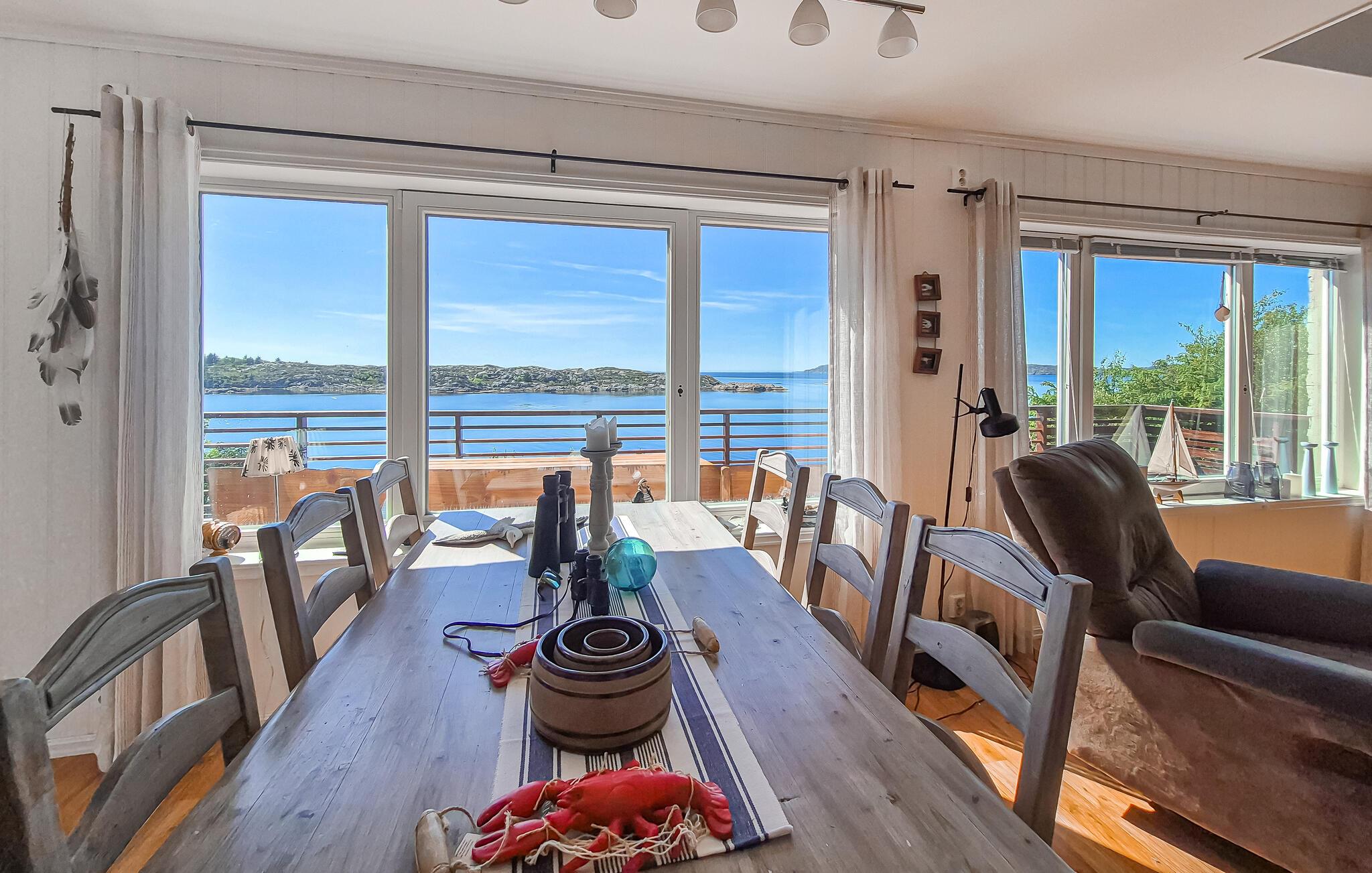 Kun en kort gåtur væk ligger havet, hvor I finder en badebro. En båd kan lejes, hvis I vil udforske fjorden på egen hånd. Området byder på gode muligheder for lystfiskere, både fra land og fra båd. Det maleriske landskab lægger op til lange vandreture, hvor I kan udforske den uberørte natur og fuldt ud nyde roen i omgivelserne.