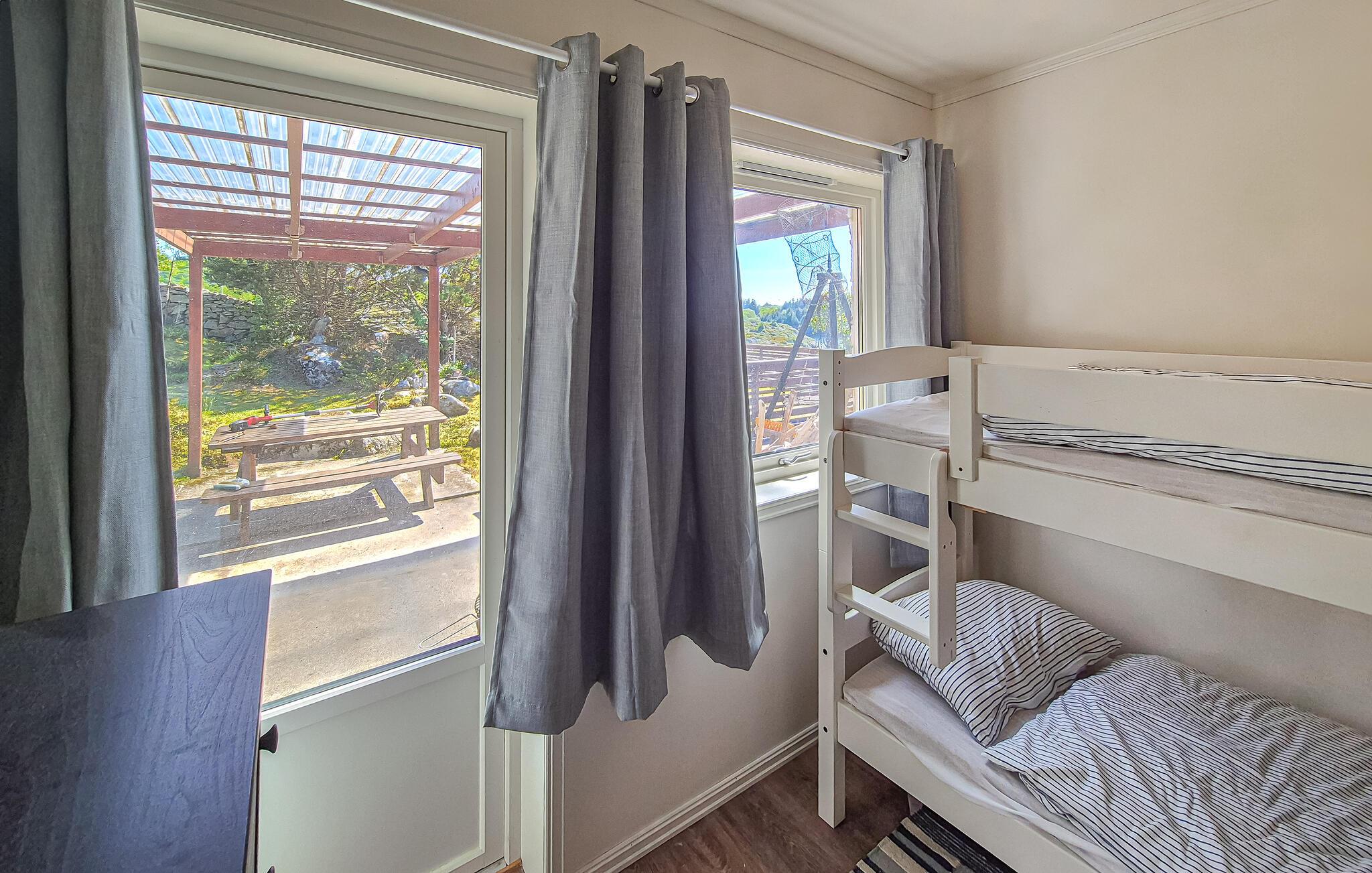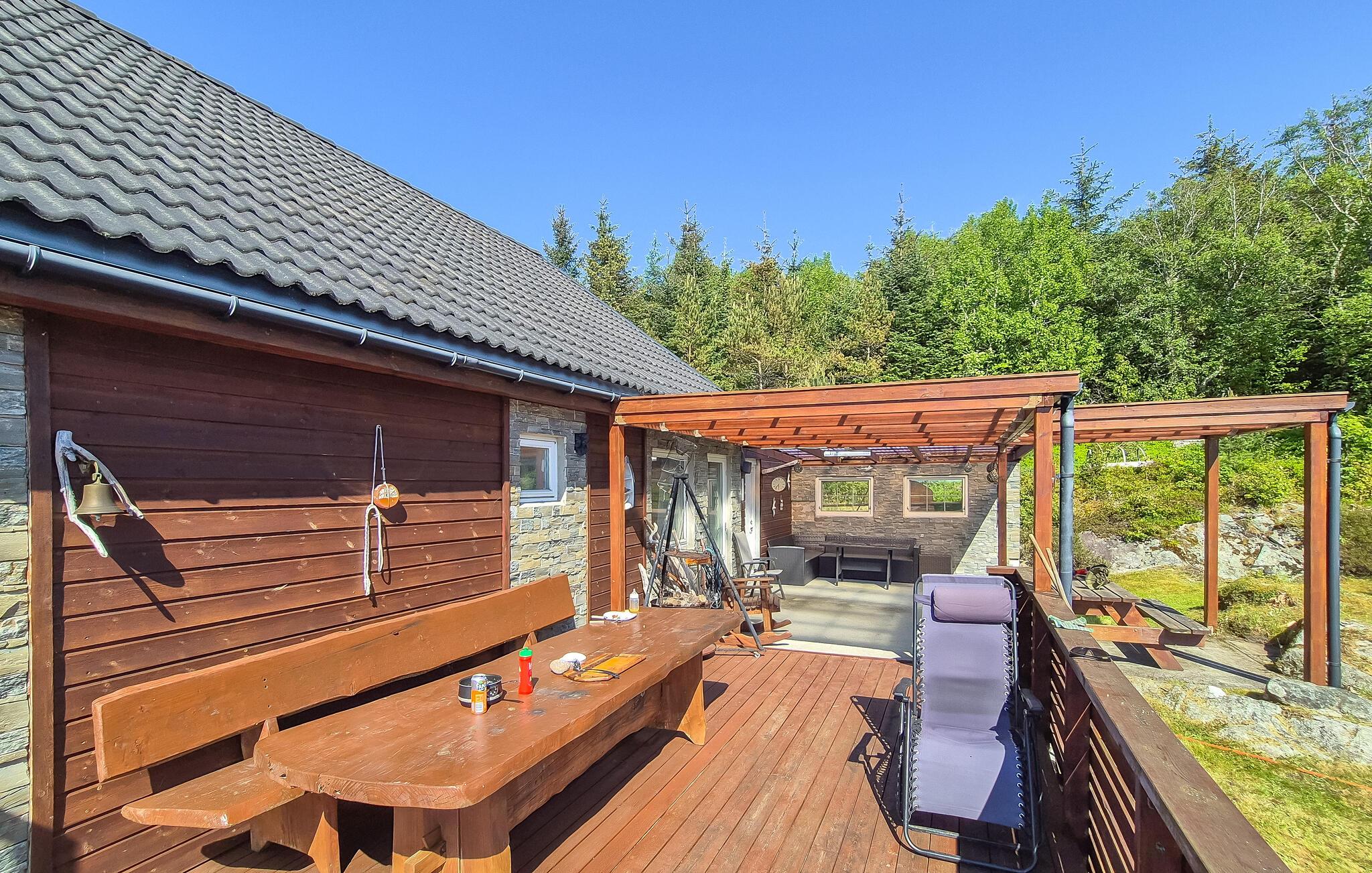 En ferie i dette afsidesliggende og idylliske feriehus giver den optimale mulighed for at slappe af midt i naturen og undslippe hverdagens stress og jag. Huset er noget særligt med sin rolige beliggenhed og den betagende udsigt over Bømlafjorden. Find jer godt til rette på den overdækkede eller åbne terrasse og begynd dagene med morgenmad under åben himmel eller afslut aftenen her i godt selskab, mens I nyder udsigten og den friske havluft.