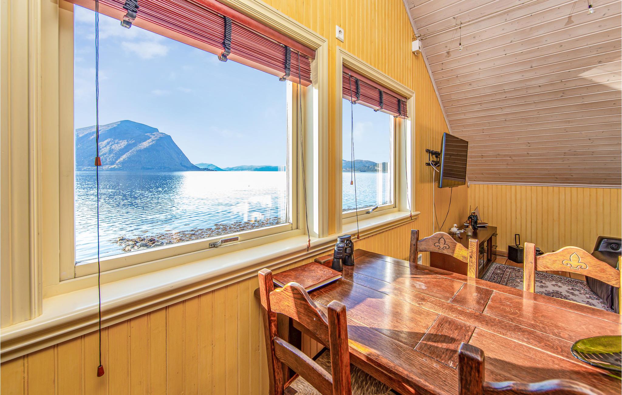 Bo i denne lille perle af et feriehus direkte ved vandkanten. Huset er perfekt til en lystfiskerferie i fantastiske naturomgivelser. Udenfor er der en stor terrasse med skøn udsigt over Hjørundfjorden/Storfjorden, som er meget rig på fisk. Huset er smagfuldt indrettet i alle rum. Underetagen har et boligareal på 50 m² indrettet med en fiskerenseplads, kogeplads, hvor I f.eks. kan koge krabber, og meget forskelligt fiskeudstyr. Huset ligger i naturskønne omgivelser lige ved Ålesund ikke langt fra Geiranger, Trollstigen og Norangsdalen.