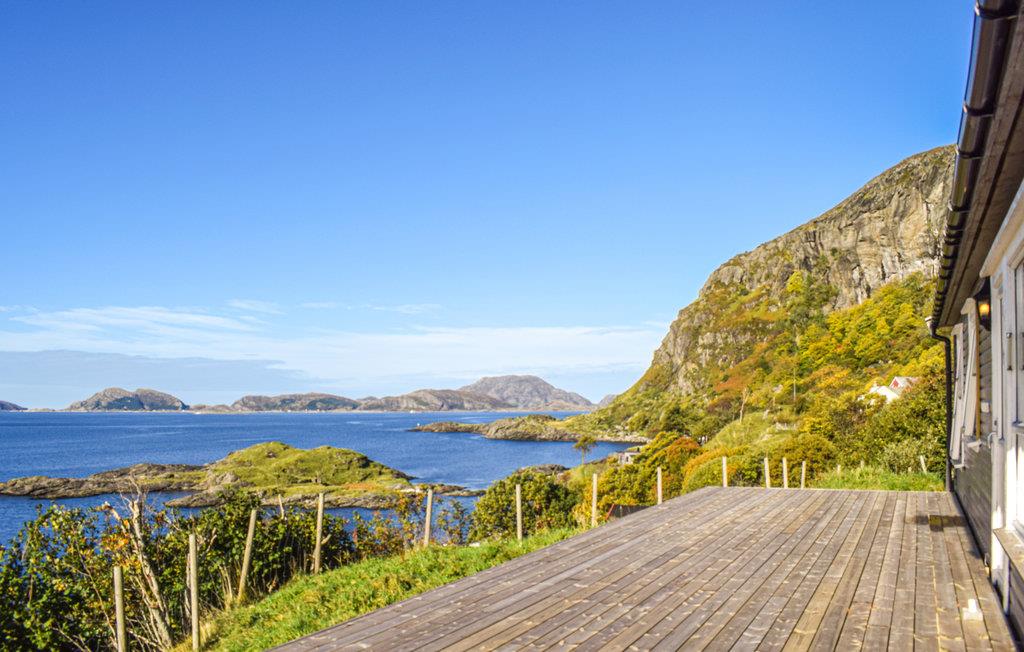 På dejlige dage kan du hellere spise middagen ude på terrassen ledsaget af en spektakulær panoramaudsigt. Her ser du lige vest med Shetland som nærmeste nabo.