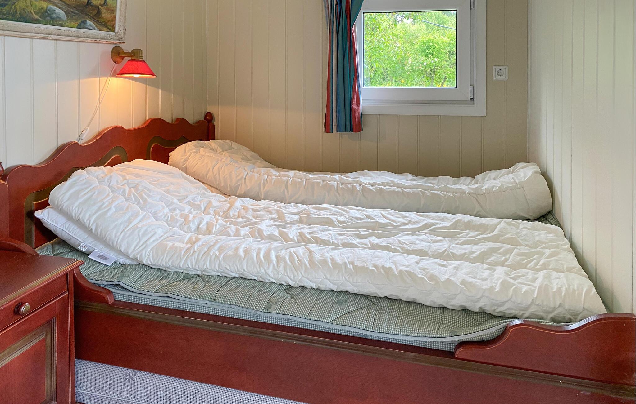 Dette charmerende feriehus har alt, hvad I behøver for et problemfrit ophold. En komfortabel sofa med en storslået udsigt over fjorden og et praktisk køkken, hvor I kan tilberede friske måltider. Slap af, lad op og nyd det enkle liv.