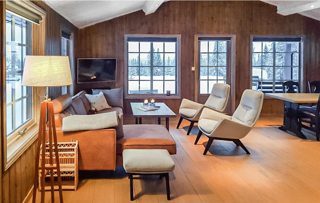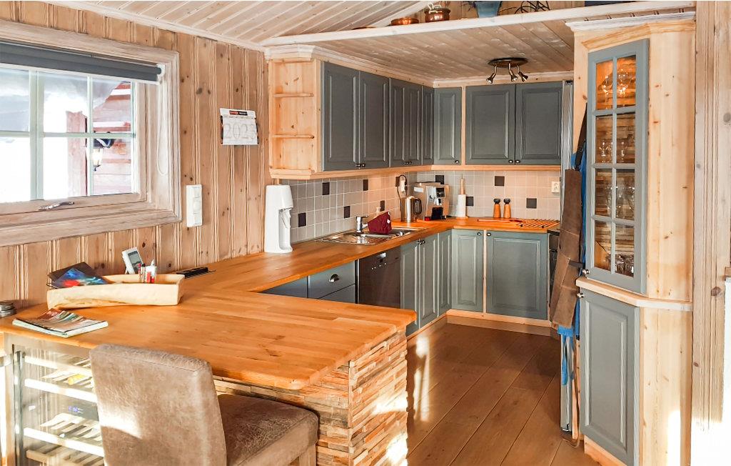 Velkommen til denne hyggelige bjælkehytte, der giver jer alt, hvad I skal bruge for en afslappende naturoplevelse i Norge. Efter aktive timer i naturen kan I finde jer tilpas i den åbne stue. Leg sammen, put jer i sofaen foran en varm pejs eller tryll lækre måltider frem i køkkenet. Om morgenen kan I nyde jeres dampende kaffe på terrassen, tage en dyb indånding og se ud over landskabet.