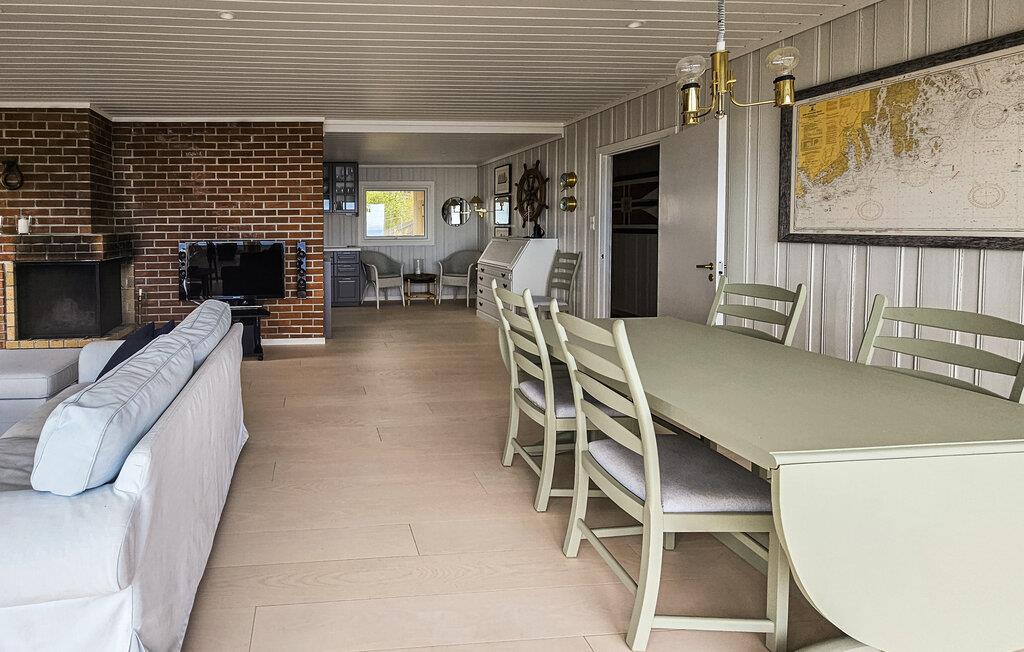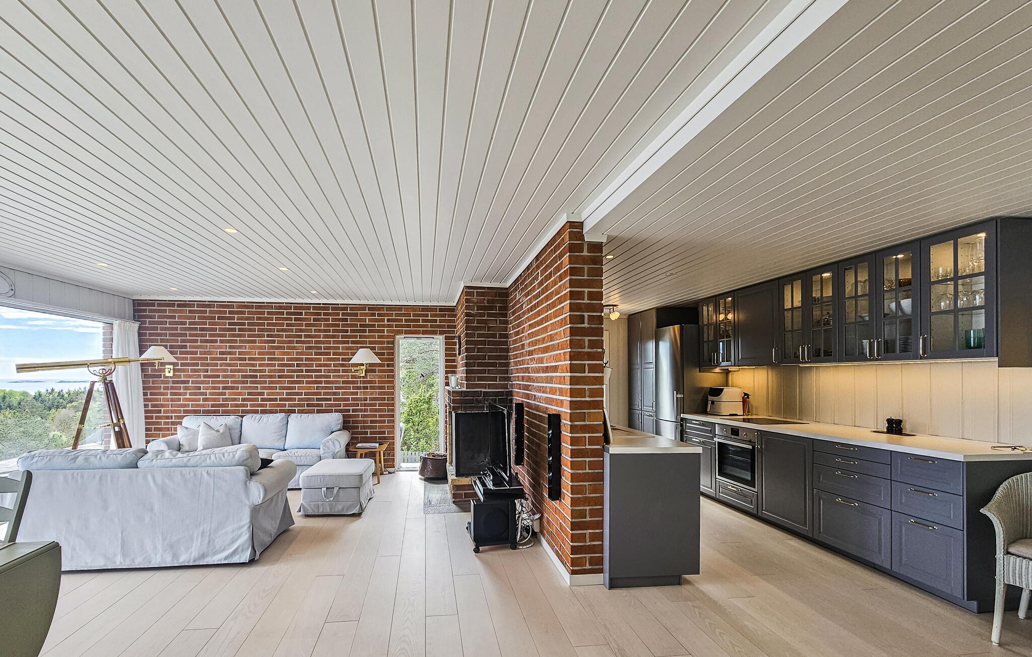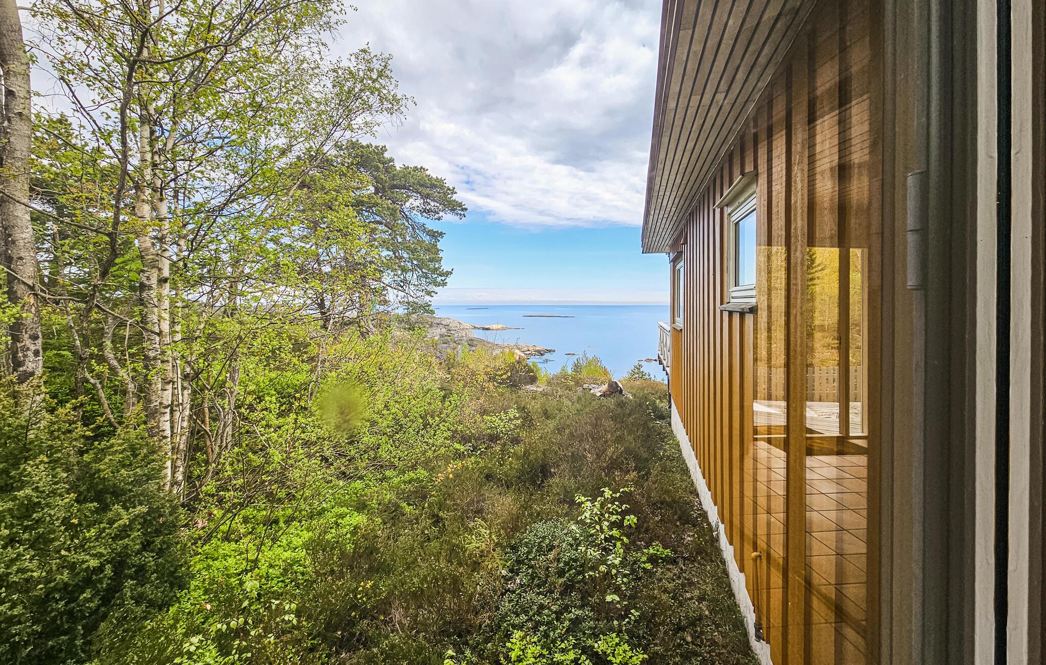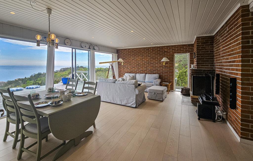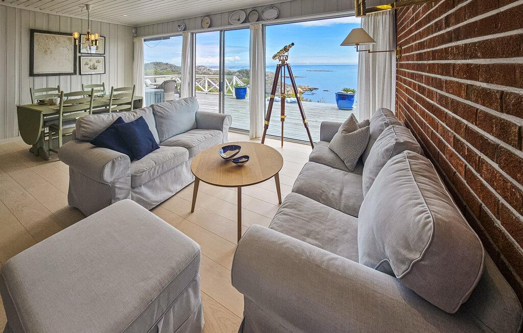 Jeres skønne hus inviterer jer til en fantastisk ferie, som I sent vil glemme. Glæd jer til jeres hus, der ligger på en klippe over kysten. Husets rum er vendt mod vandet, hvilket giver en stor vinduesfacade og masser af dagslys. Den store stue bliver familiens centrale samlingspunkt. Slå jer ned i sofaerne, tænd op i pejsen, og spis sammen ved spisebordet med havudsigt.