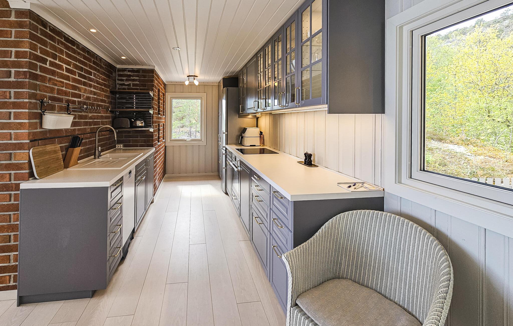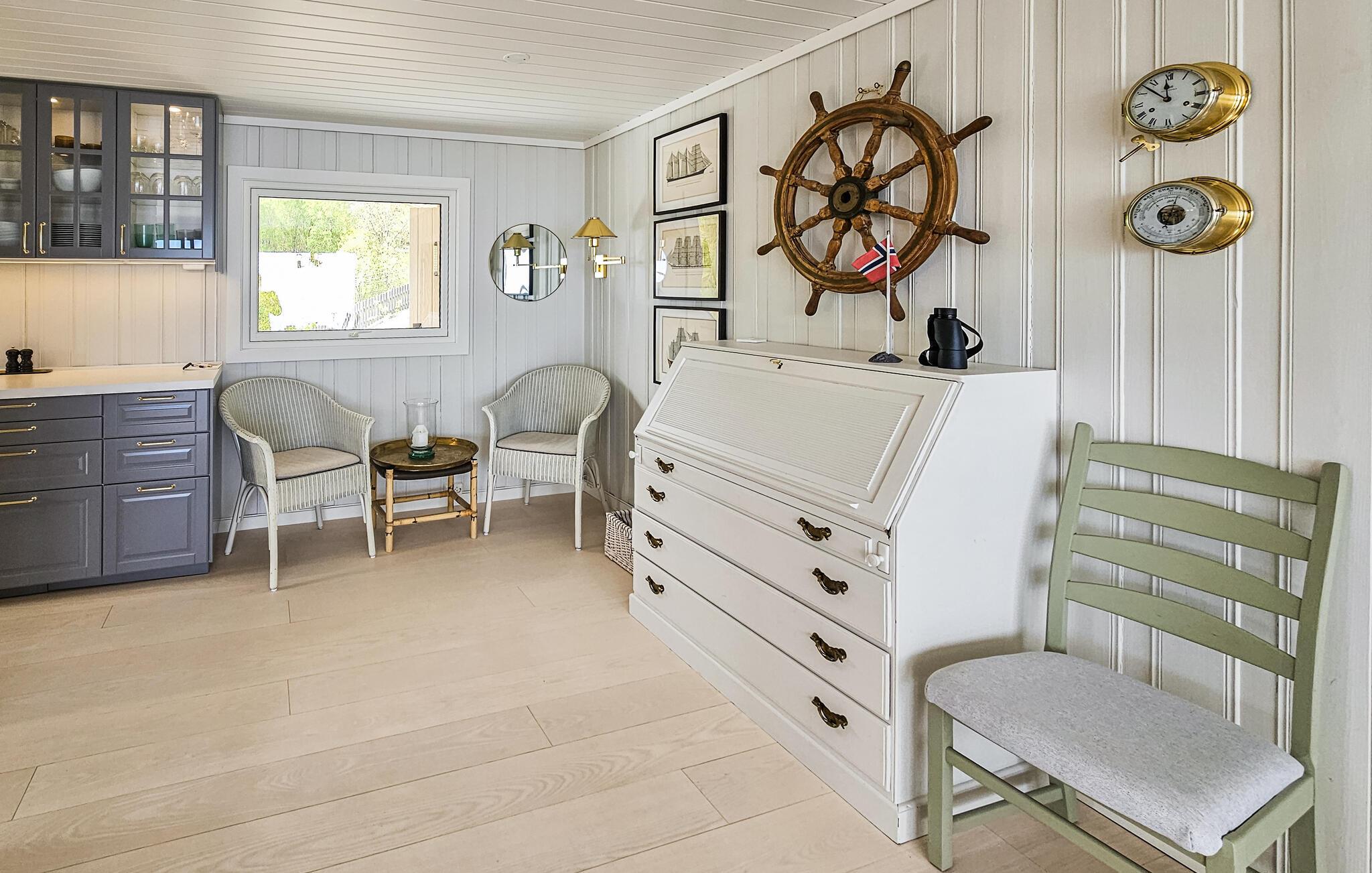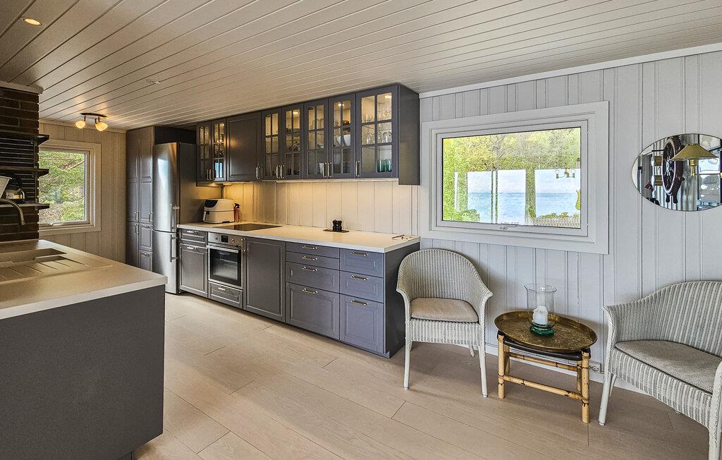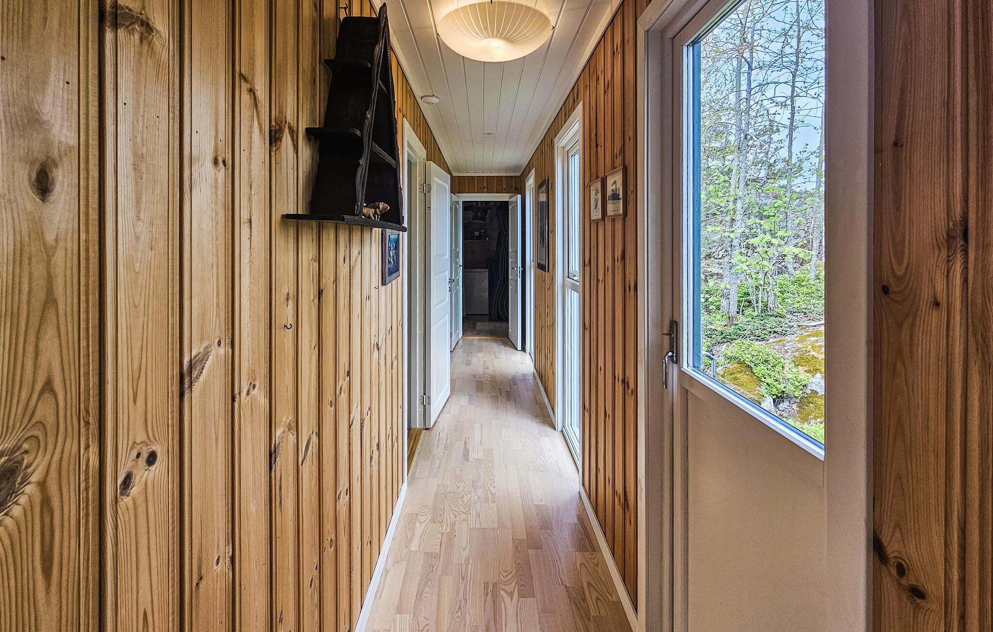 Jeres skønne hus inviterer jer til en fantastisk ferie, som I sent vil glemme. Glæd jer til jeres hus, der ligger på en klippe over kysten. Husets rum er vendt mod vandet, hvilket giver en stor vinduesfacade og masser af dagslys. Den store stue bliver familiens centrale samlingspunkt. Slå jer ned i sofaerne, tænd op i pejsen, og spis sammen ved spisebordet med havudsigt.