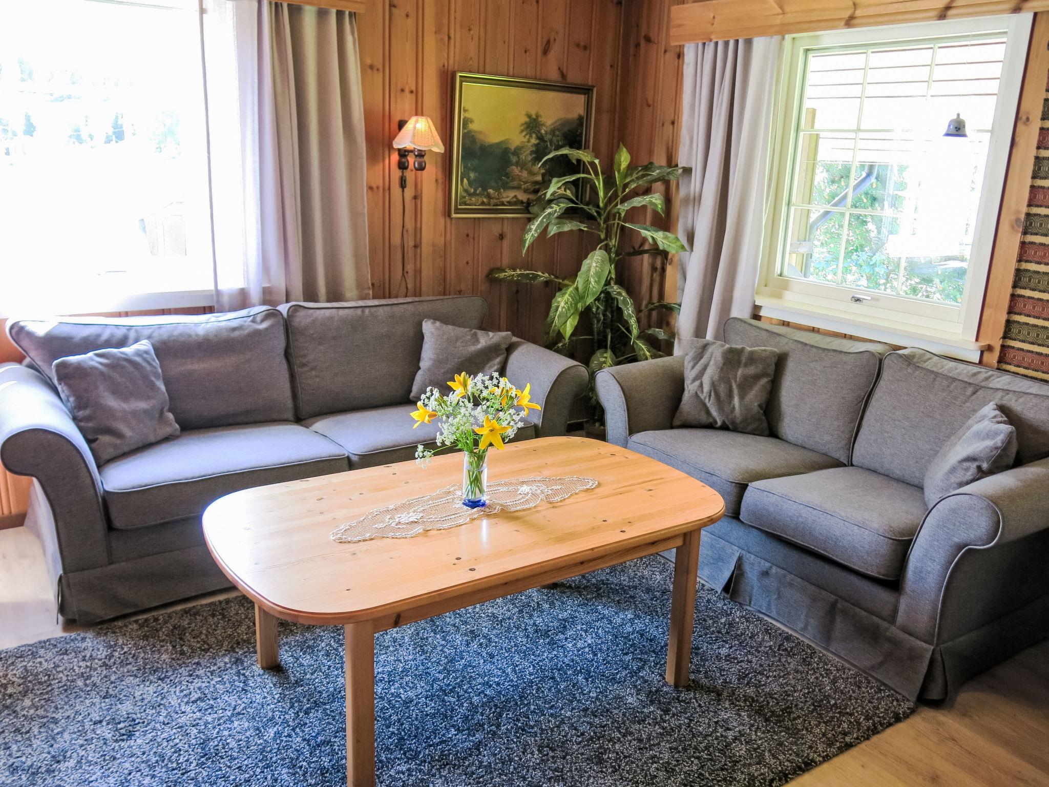 "Knatten", 4-room house 89 m2 on 2 levels. Rustic furnishings: living/dining room with Scandinavian wood stove, dining table and satellite TV. 1 room with 1 double bed (180 cm, length 200 cm). Walk-through room with 2 beds (80 cm, length 200 cm). 1 room with 2 beds (70 cm, length 200 cm). Kitchen (oven, dishwasher, 4 ceramic glass hob hotplates, microwave, freezer, electric coffee machine) with dining table. Shower/WC. Electric heating. On the lower ground floor: Sauna. Electric heating. Terrace, patio. Terrace furniture, barbecue (portable). View of the lake. Facilities: washing machine, iron. Please note: maximum 1 pet/ dog allowed. Smoke alarm, fire extinguisher. Freezer approx. 250 l. 924531169