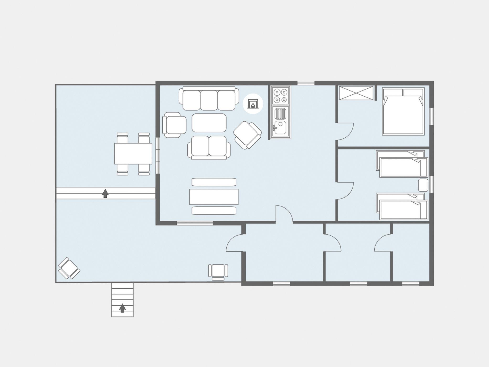 "Telemarkshytta", 3-room house 60 m2. Object suitable for 4 adults + 2 children. Rustic furnishings: living/dining room with open-hearth fireplace and dining table. 1 room with 1 double bed (140 cm, length 200 cm). 1 room with 2 x 2 bunk beds (80 cm, length 200 cm). Kitchenette (mini-oven, oven, Gas stove, 4 gas rings). Simple dry toilet. Wood heating. Heating not available in all rooms. Wooden floors. Terrace partly roofed. Terrace furniture, barbecue (portable). View of the lake. Please note: non-smoking house. Maximum 1 pet/ dog allowed. Smoke alarm, fire extinguisher. Bed layout is flexible. There are more sleeping options available than the maximum number of people allowed which may, however, not be exceeded. 924531169