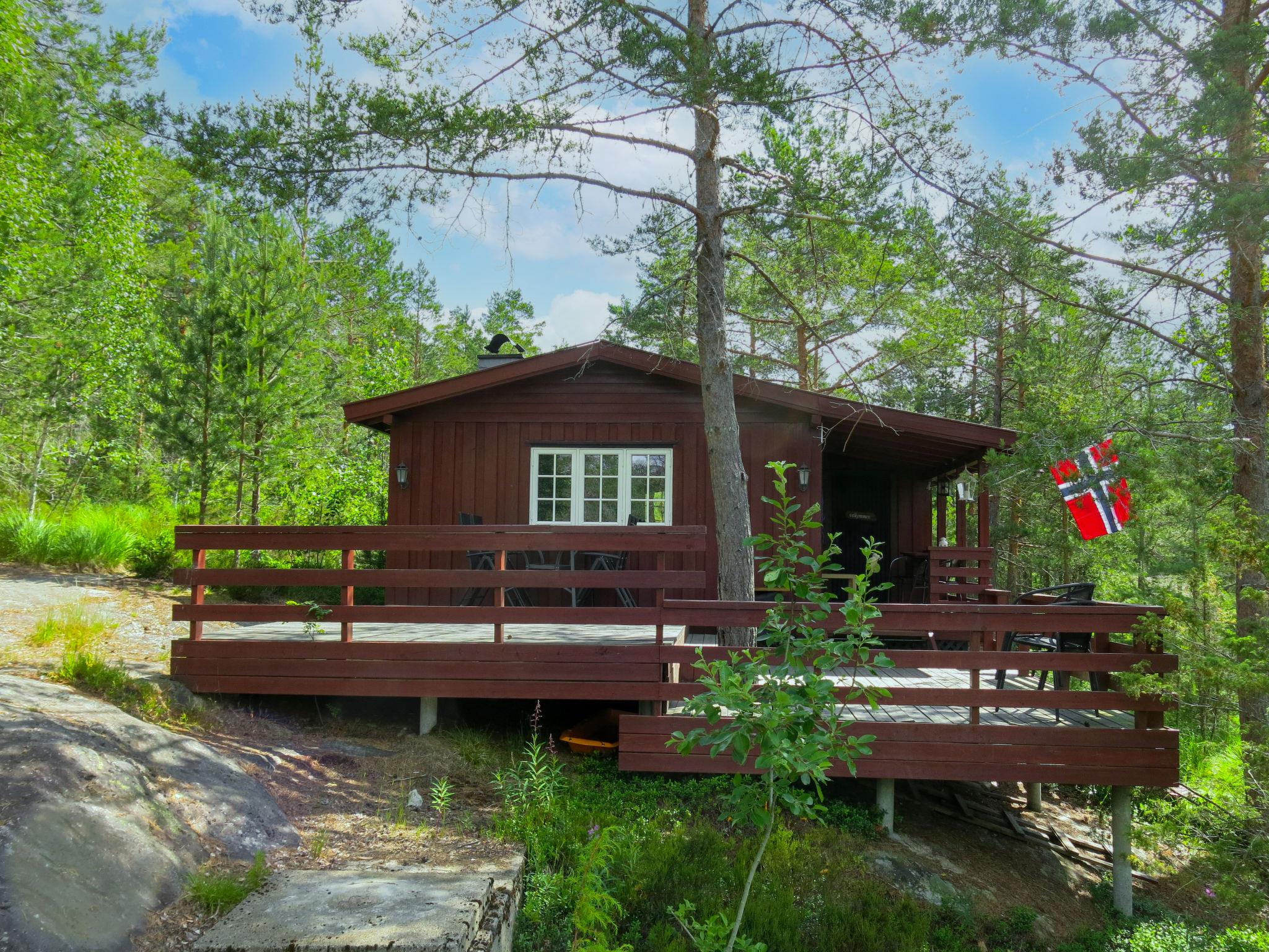 Cosy timber house "Telemarkshytta", built in 1977, renovated in 2021, surrounded by trees. 6 km from the centre of Treungen, 83 km from the centre of Kragerø, 128 km from the centre of Kristiansand, 100 m from the lake. Bathing place. Private: natural state property 1'000 m2 with trees. Rowing boat (on request). 530 m footpath to the house. Public parking 530 m. Shop 6 km, bus stop "Tjønnefoss" 2 km, railway station "Gjerstad" 50 km, ferry "Langesund" 107 km. Fishing possibilities 100 m. Please note: fishing [permit required]. The tap water has no drinking water quality. No running water in the house.