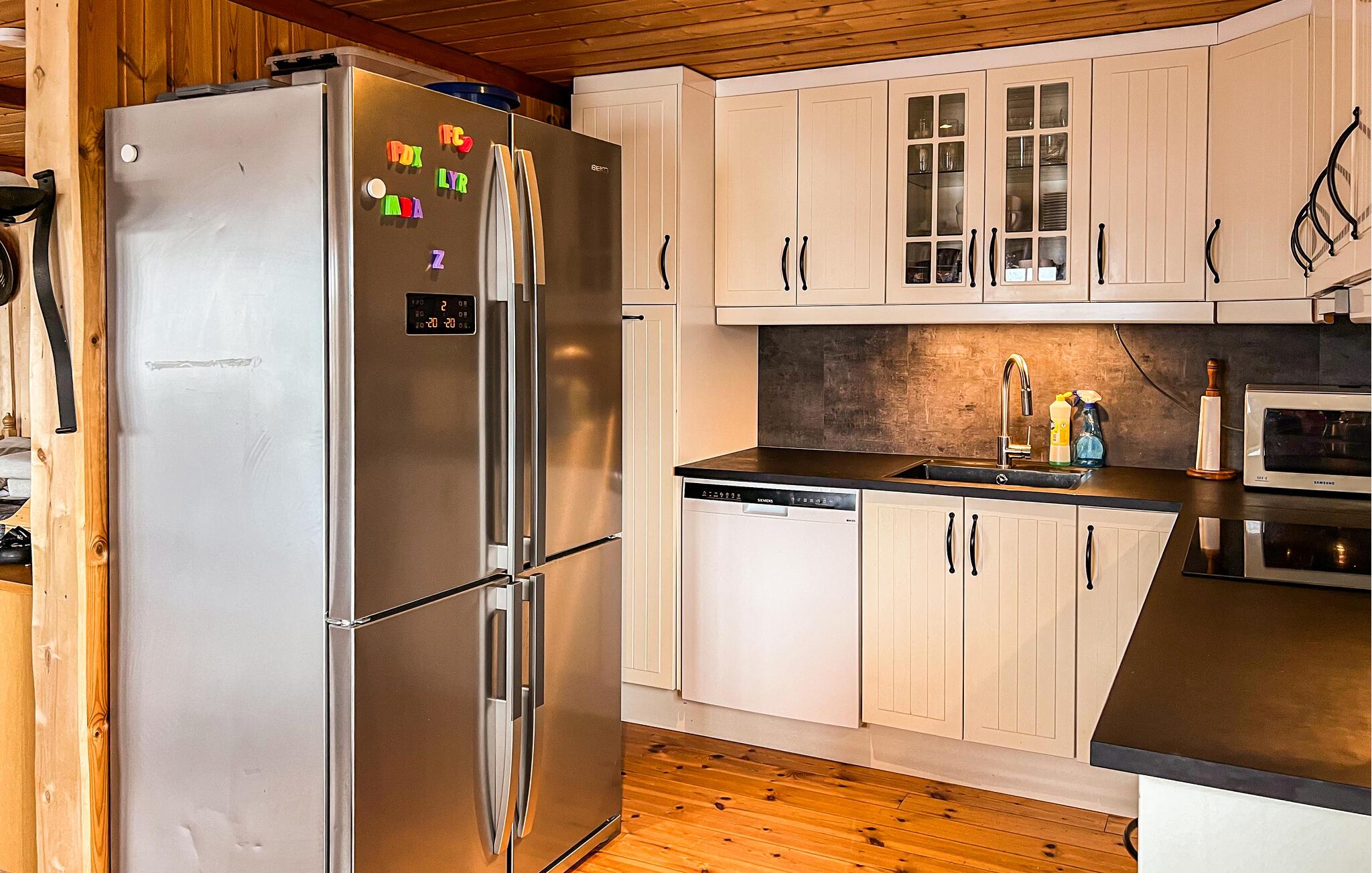 Huset er hyggeligt og komfortabelt møbleret. Slap af i stuen og nyd en dejlig middag sammen omkring spisebordet.