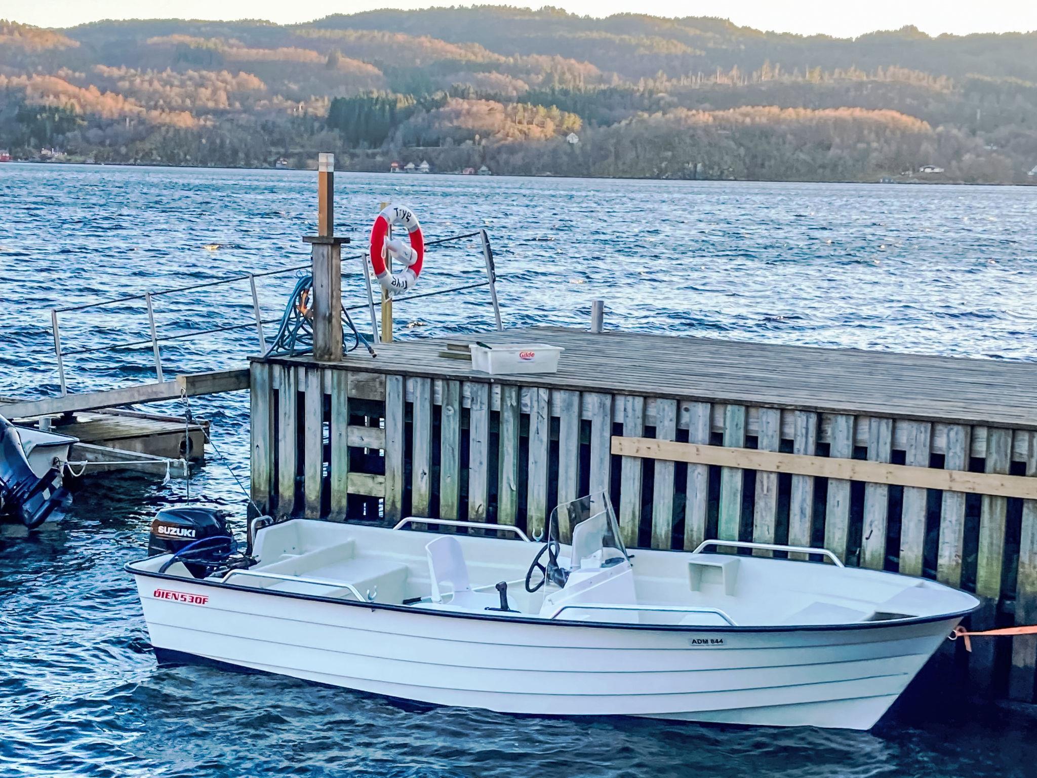 Certified fishing house "Rorbuen", 1 m a.s.l., built in 2005, renovated in 2017. 14 houses in the resort. In the resort 1.5 km from the centre of Uggdal, 7 km from the centre of Våge, 54 km from the centre of Bergen, 1 km from the lake, 350 m from the beach, 5 m from the fijord. For shared use: volleyball court. Motor boat (on order), parking on the premises. Shop 1.5 km, supermarket 7 km, bus stop "Uggdalseidet" 1.2 km, railway station "Bergen" 54 km, ferry "Bergen" 54 km. Fishing possibilities 2 m. Owner lives in separate semi-detached house.