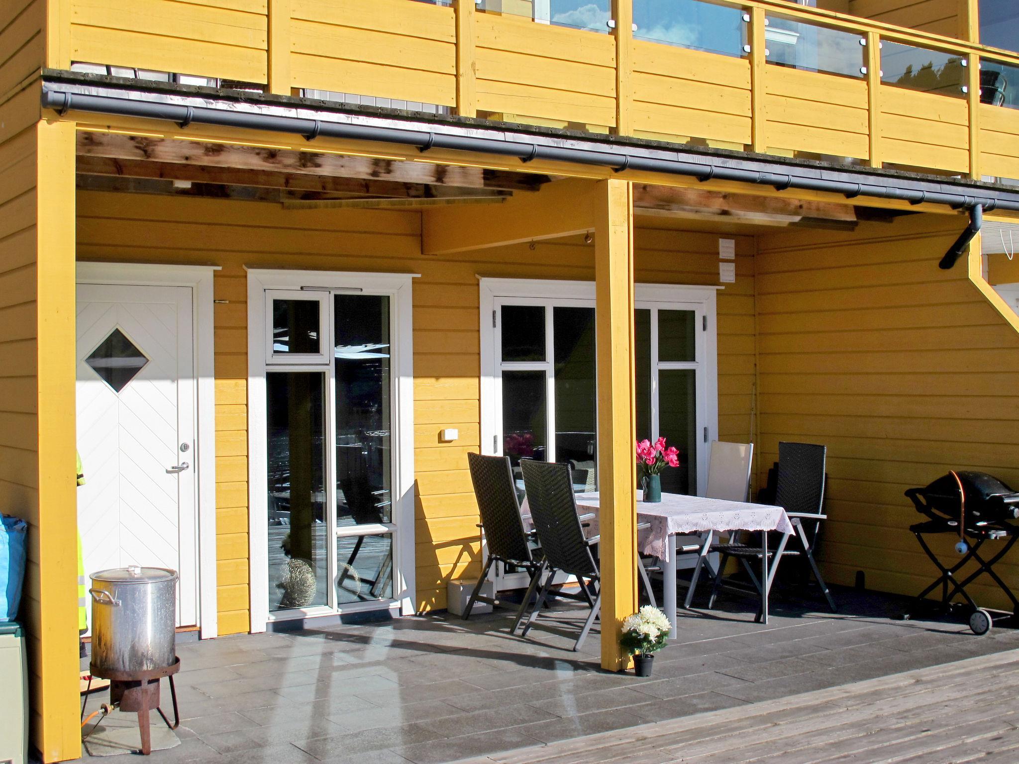 "Rorbuen", 3-room apartment 55 m2, on the ground floor. Object suitable for 4 adults. Renovated in 2017, cosy furnishings: living room with satellite TV. Exit to the terrace. 1 room with 1 double bed (140 cm, length 200 cm). 1 room with 1 x 2 bunk beds (150 cm, length 200 cm) (90 cm, length 200 cm). Open kitchen (oven, dishwasher, 4 ceramic glass hob hotplates, microwave, freezer, electric coffee machine). Shower/WC. Electric heating. Terrace 8 m2, roofed. Terrace furniture, barbecue (portable). Very beautiful view of the sea. Facilities: washing machine, children's high chair. Internet (WiFi, free). Please note: non-smoking house. Freezer approx. 80 l. 924531169