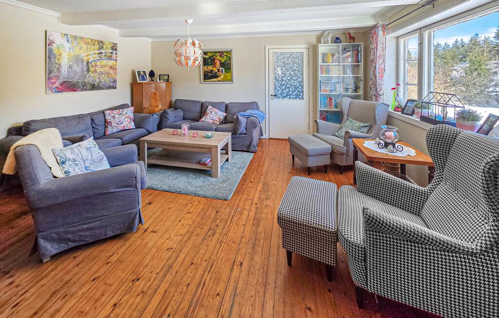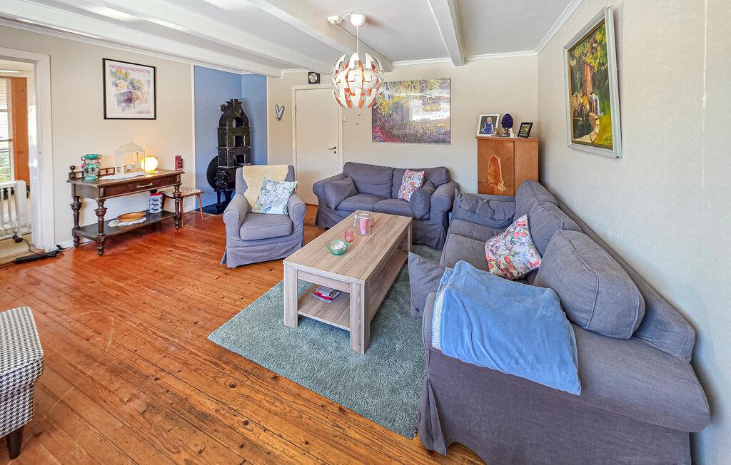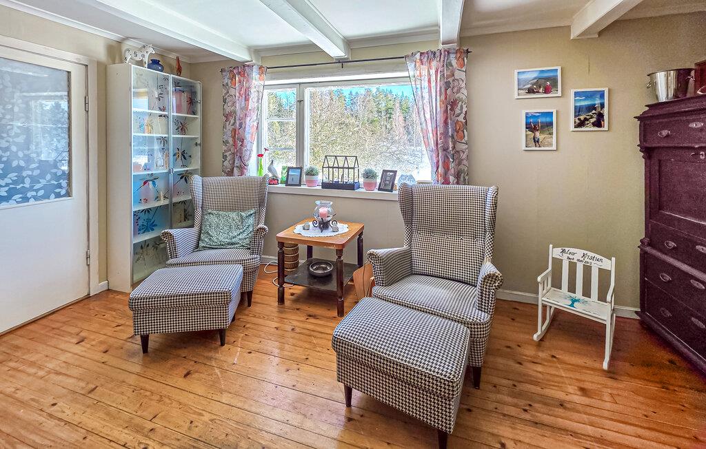 Nyd den hyggelige atmosfære i opholdsstuen, der har trægulve, flere sofaer og komfortable lænestole, der inviterer jer til at slappe af. Find jer til rette her og Læn jer tilbage med en god bog. Dekorative detaljer og omhyggeligt udvalgte møbler giver værelserne et personligt præg. Brug den separate spiseplads med det runde træbord til fælles måltider eller hyggelige spilleaftener. I det rummelige køkken med et andet spisebord kan I komfortabelt tilberede jeres måltider og starte dagen på en afslappet måde.