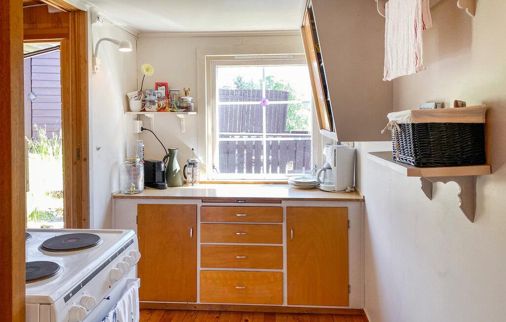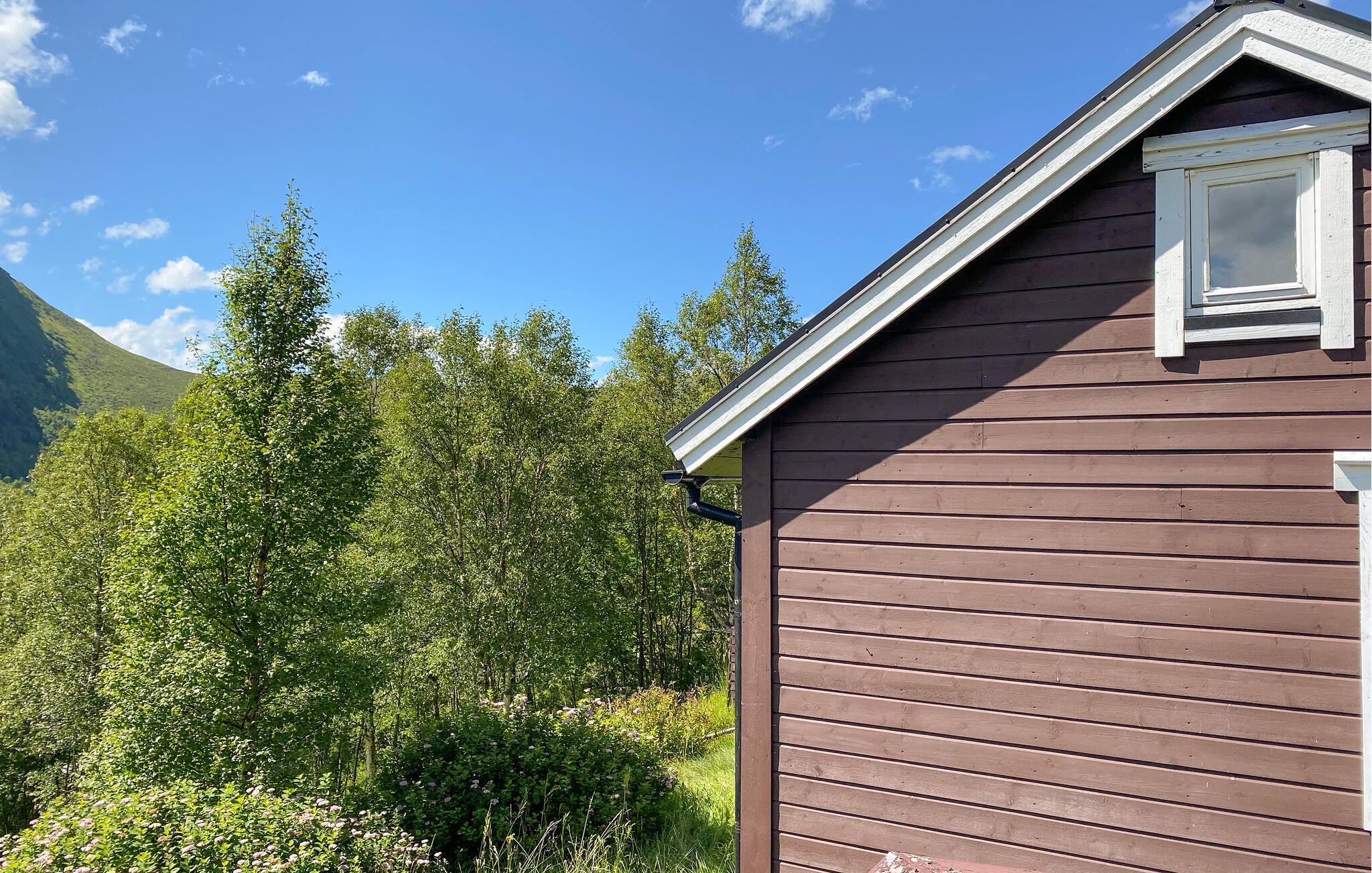 Fred og afslapning samt en lang række vandre- og fiskemuligheder er nogle af de højdepunkter, der venter jer i jeres feriehus på øen Hareidlandet. Huset er indlejret i et idyllisk landskab og byder på en skøn kombination af ro, afslapning og naturoplevelse. Den kompakte, velindrettede stue med sine varme træmøbler lægger op til at blive hængende. Find jer godt til rette i den komfortable sofa og nyd tiden med en god bog eller spil musik med hele familien.