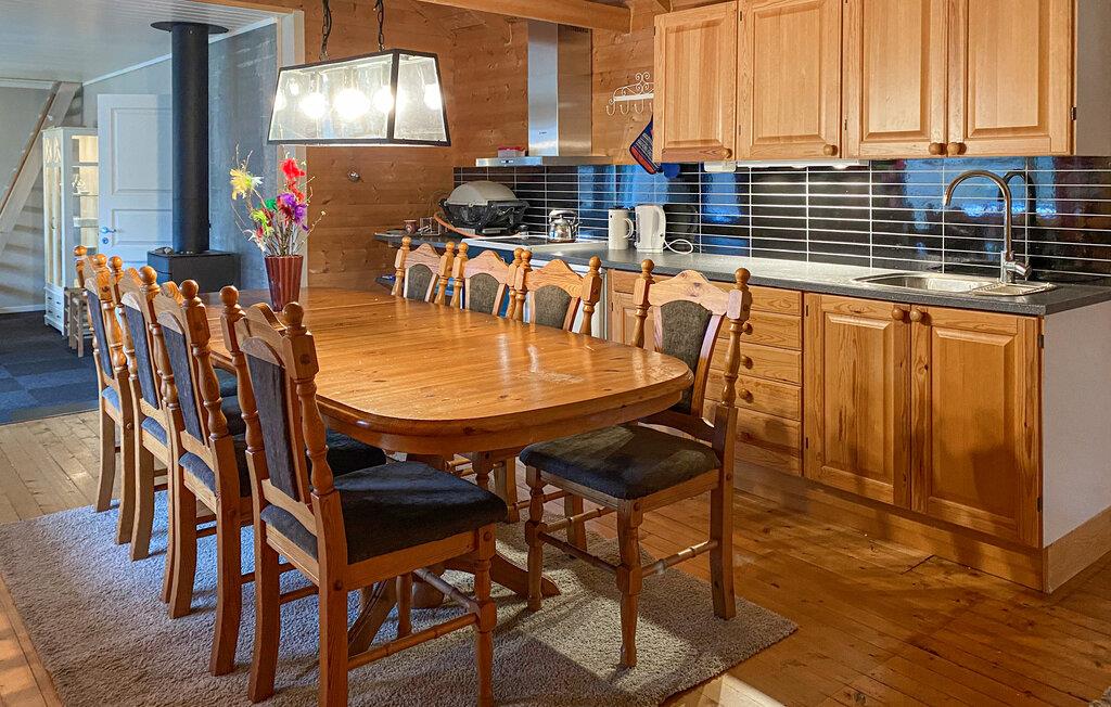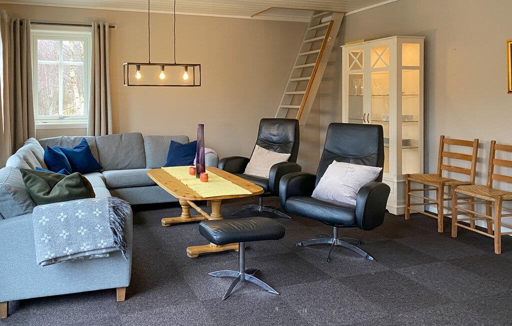 Velkommen til dette hyggelige feriehus, hvor I takket være de store vinduer og beliggenheden på bakketoppen kan nyde en smuk panoramaudsigt over det idylliske naturlandskab. Vær vært for hyggelige madlavningsaftener i det rummelige køkken og hyggelige måltider i den rustikke atmosfære. Tænd brændeovnen og slap af på den behagelige sofa med en god bog eller en film.