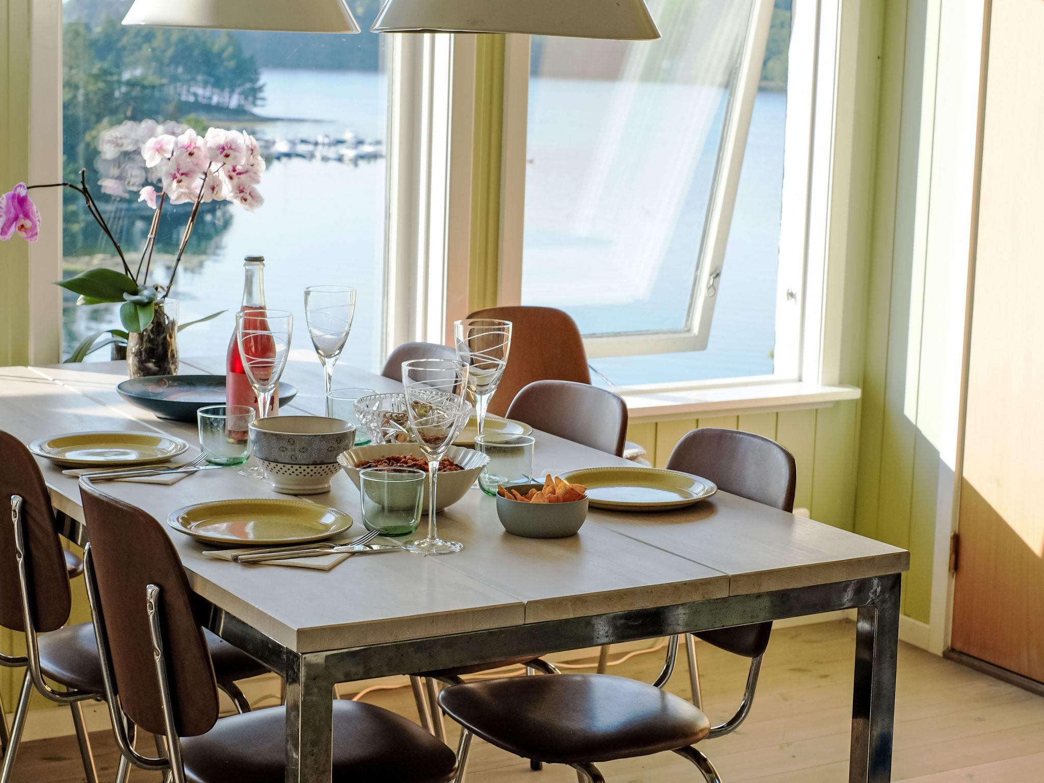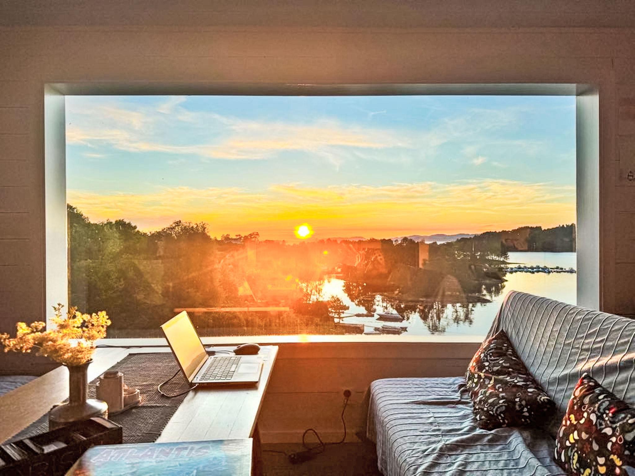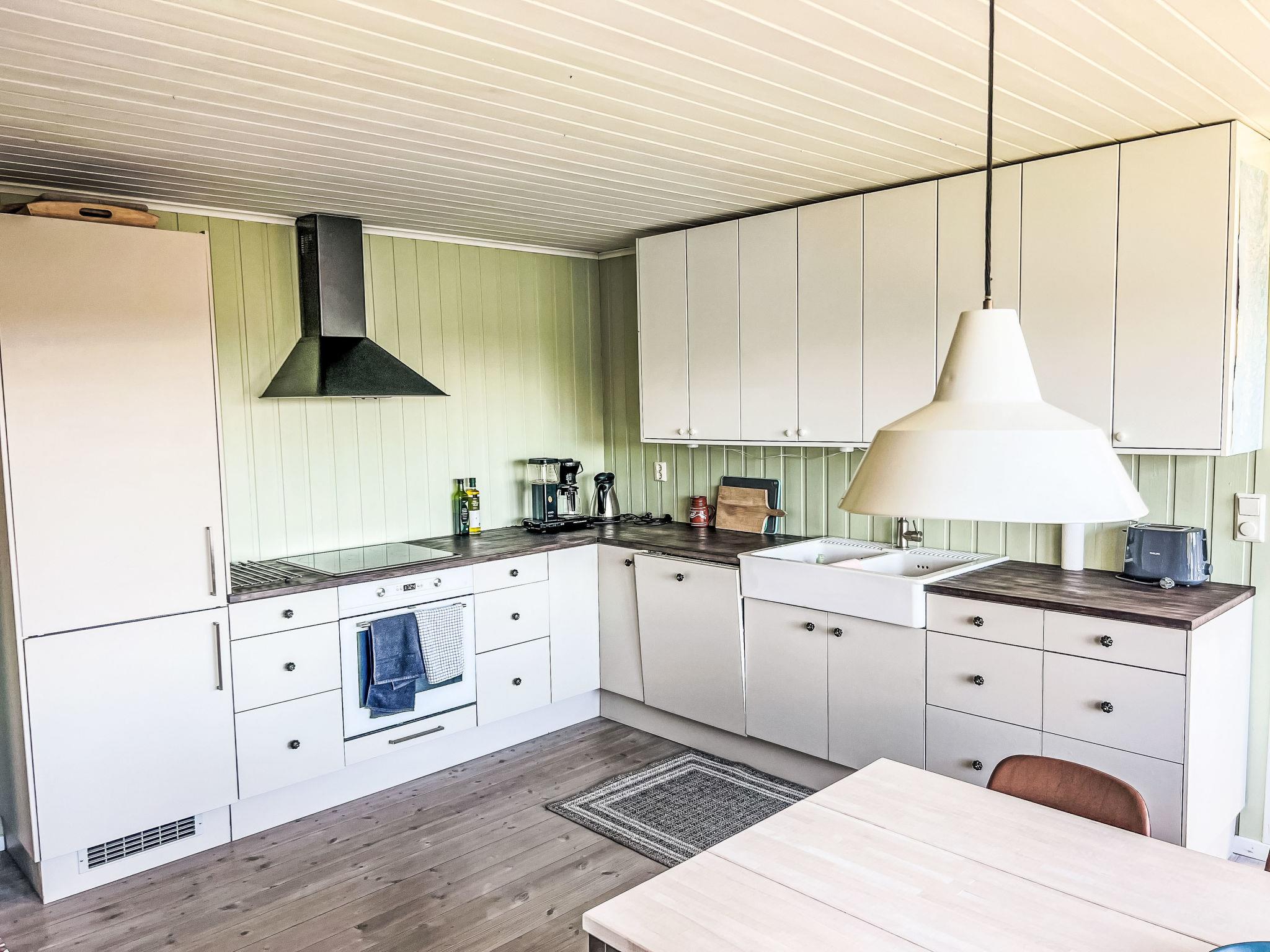 "Lauvlid Cottage", 5-room cottage 110 m2 on 2 levels. Comfortable and cosy furnishings: living/dining room with panoramic window with Scandinavian wood stove and TV. Exit to the terrace. 1 room with 1 double bed (140 cm, length 200 cm). 1 double bedroom with 1 double bed (140 cm, length 200 cm). Large, open kitchen (oven, dishwasher, 4 ceramic glass hob hotplates, toaster, kettle, freezer, electric coffee machine) with dining table. Electric heating, wood heating. On the lower ground floor: 1 room with 1 double bed (160 cm, length 200 cm). 1 room with 1 double bed (140 cm, length 200 cm). Shower, sep. WC. Wooden floors. Comfortable furnishings in the country house style. Large terrace. Terrace furniture, barbecue (portable), sitting area. Very beautiful panoramic view of the sea, the mountains, the garden and the port. Facilities: washing machine, baby cot. Internet (WiFi, free). Please note: non-smoking house. Smoke alarm, fire extinguisher. TV via wifi. Extra freezer 280 l.