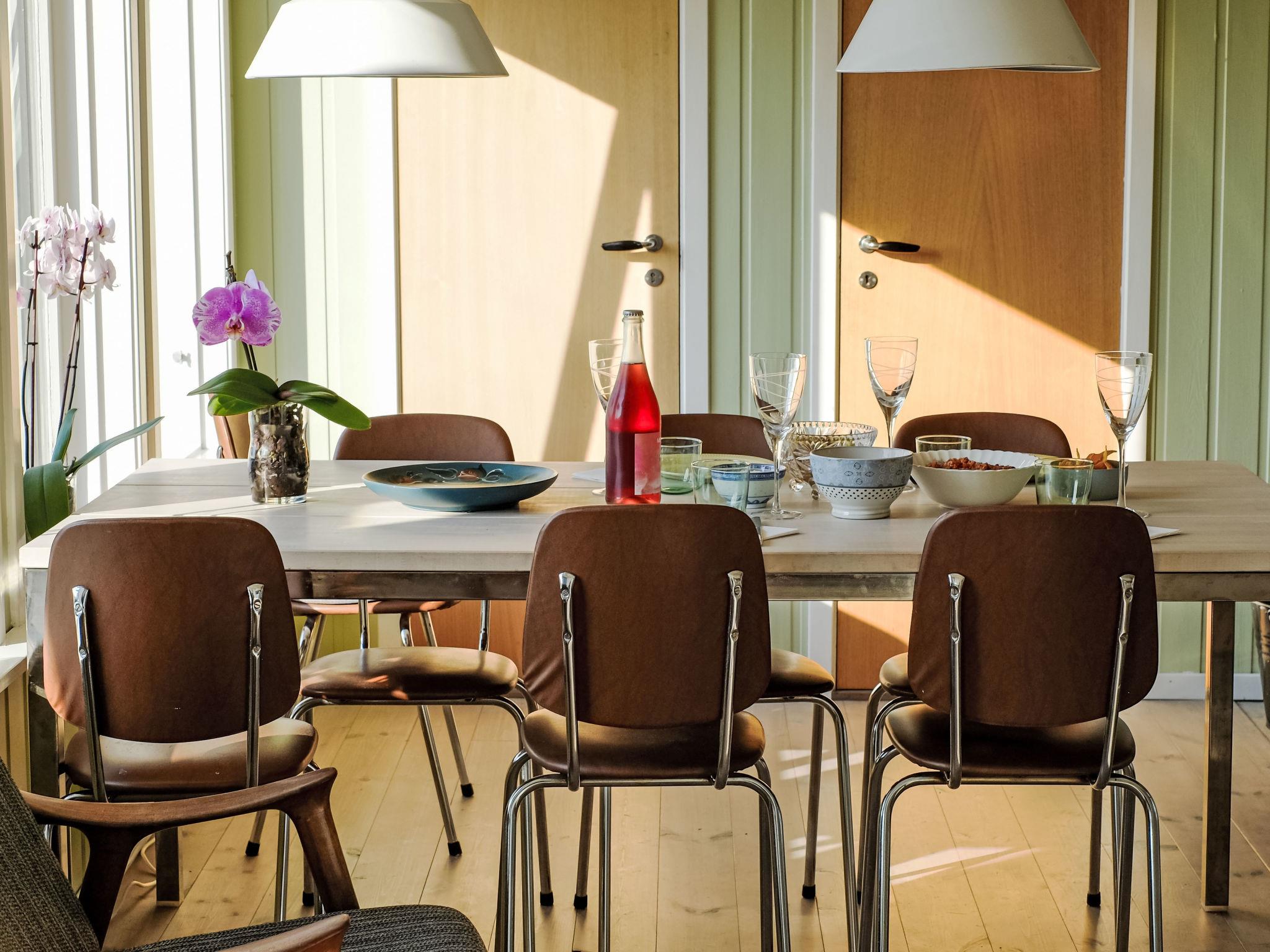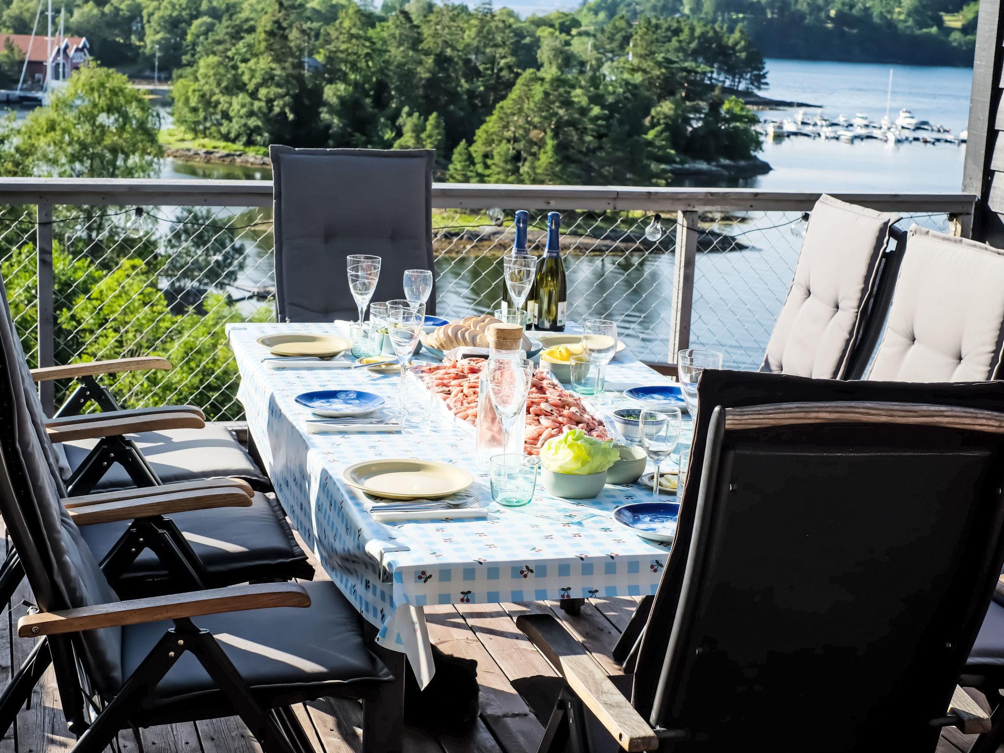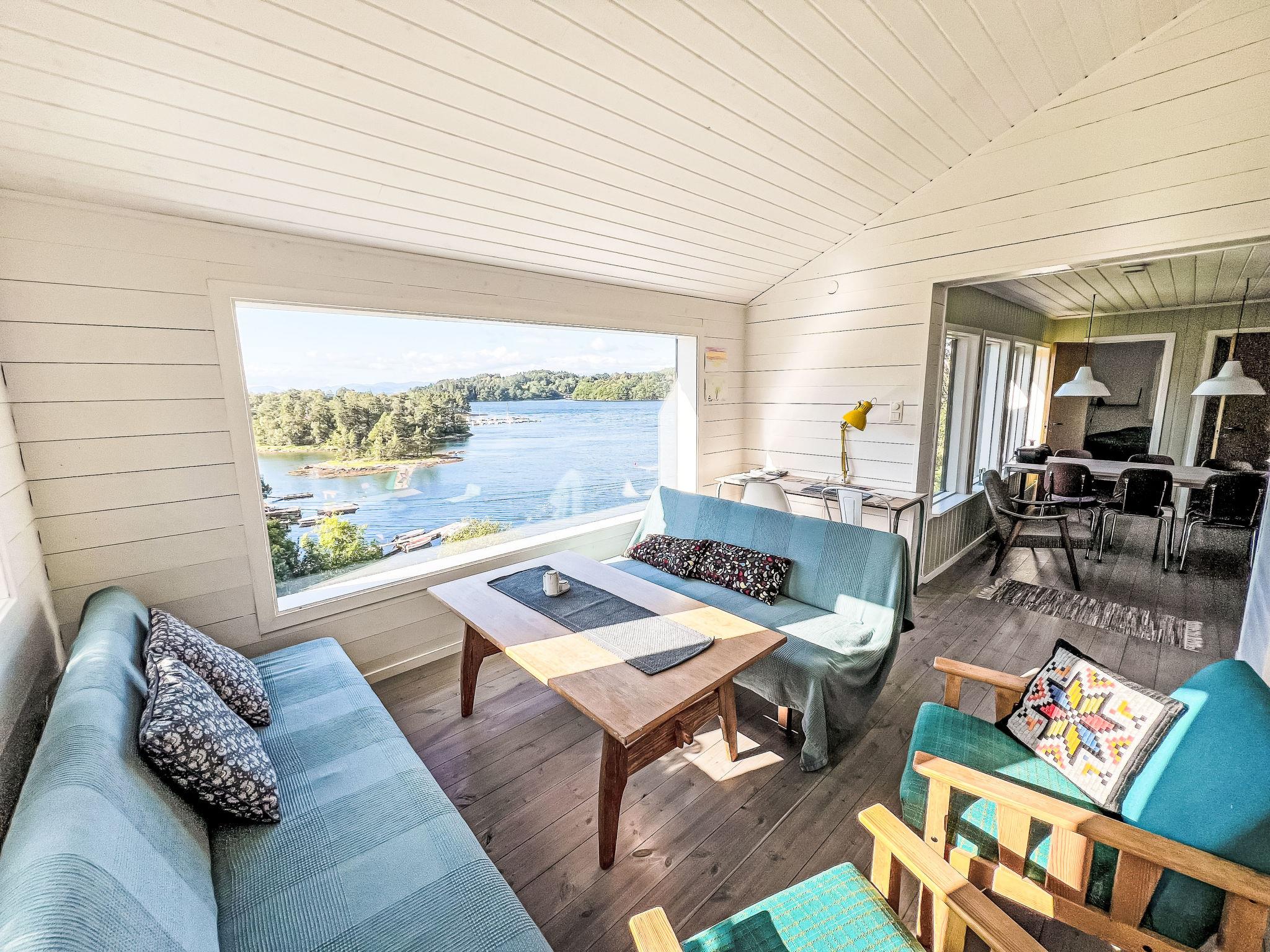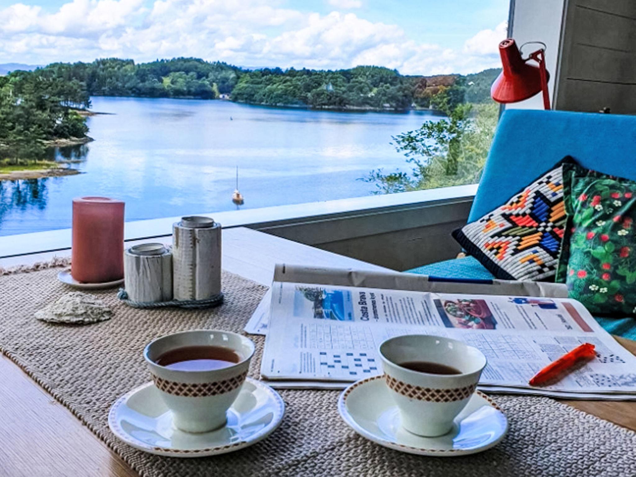 "Lauvlid Cottage", 5-room cottage 110 m2 on 2 levels. Comfortable and cosy furnishings: living/dining room with panoramic window with Scandinavian wood stove and TV. Exit to the terrace. 1 room with 1 double bed (140 cm, length 200 cm). 1 double bedroom with 1 double bed (140 cm, length 200 cm). Large, open kitchen (oven, dishwasher, 4 ceramic glass hob hotplates, toaster, kettle, freezer, electric coffee machine) with dining table. Electric heating, wood heating. On the lower ground floor: 1 room with 1 double bed (160 cm, length 200 cm). 1 room with 1 double bed (140 cm, length 200 cm). Shower, sep. WC. Wooden floors. Comfortable furnishings in the country house style. Large terrace. Terrace furniture, barbecue (portable), sitting area. Very beautiful panoramic view of the sea, the mountains, the garden and the port. Facilities: washing machine, baby cot. Internet (WiFi, free). Please note: non-smoking house. Smoke alarm, fire extinguisher. TV via wifi. Extra freezer 280 l.