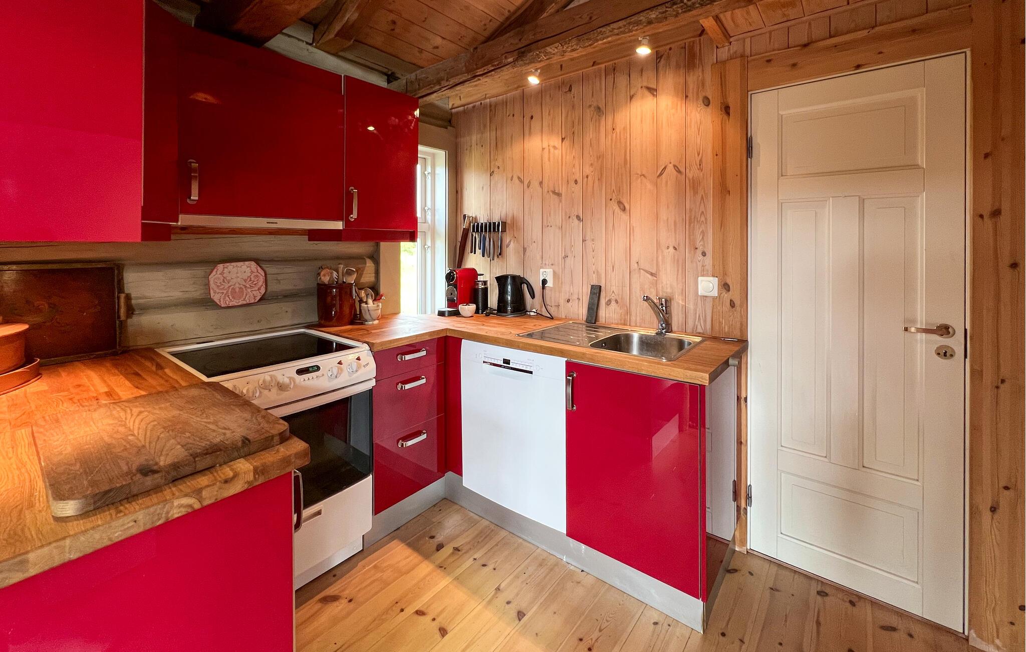 Dette rustikt indrettede hus er både hyggeligt og originalt. Store vinduer lukker masser af naturligt lys ind og giver jer uhindret udsigt over det bølgende landskab. En brændeovn sørger for hyggelig varme på kølige dage, mens de komfortable siddepladser lægger op til at læse, spille spil eller blot slappe af. Tilbring afslappende timer her med en bog eller lyt til den knitrende ild.