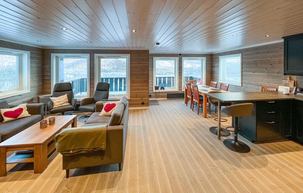 Dette stilfulde feriehus er noget særligt med sin enkle, moderne indretning og en åben, lysfyldt stue. På to etager giver det jer plads til afslappet samvær: lav mad sammen i det veludstyrede køkken, nyd komforten ved pejsen eller slap af i den komfortable sofa. Terrassen lægger op til at indånde den friske bjergluft og nyde den vidunderlige udsigt over det omkringliggende landskab - et perfekt sted at planlægge eller afslutte dagen.