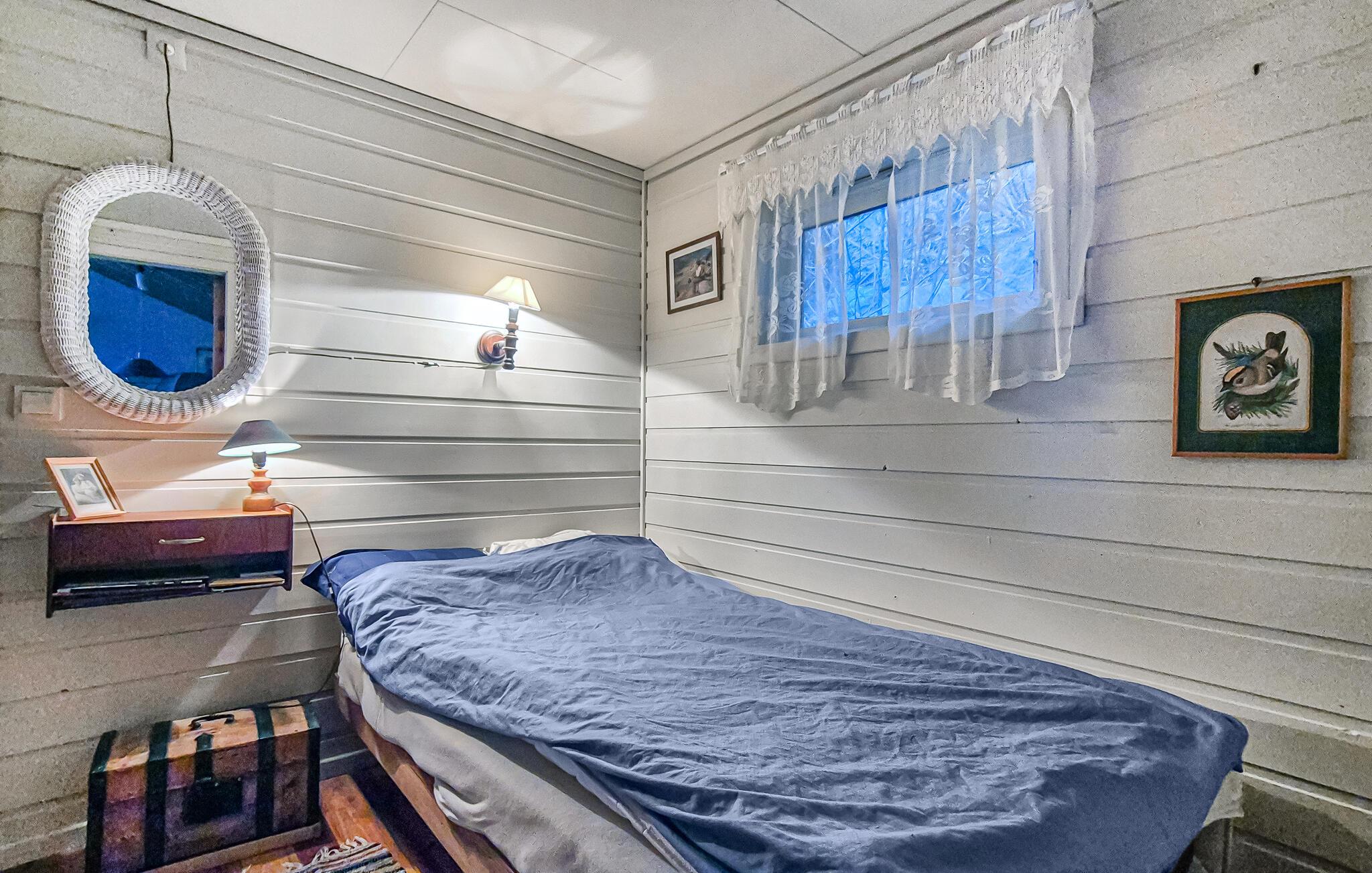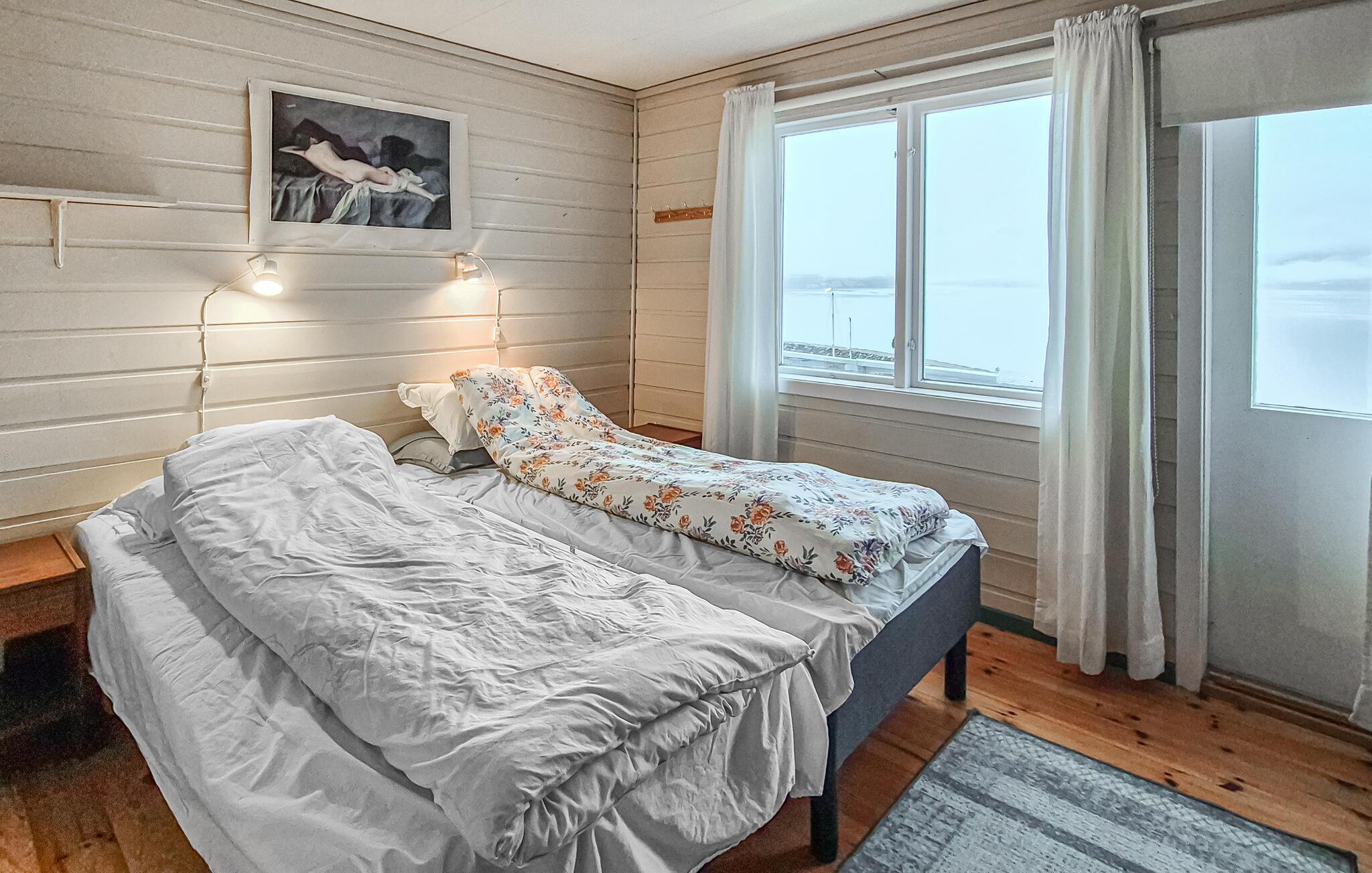 Interiøret er præget af rigeligt træ, nautiske detaljer og personlige præg. Find jer til rette i den rummelige opholdsstue og nyd panoramaudsigten gennem de store vinduer. Stuen byder på flere siddepladser, en brændeovn og omhyggeligt udvalgte møbler, perfekt til afslappende aftener.