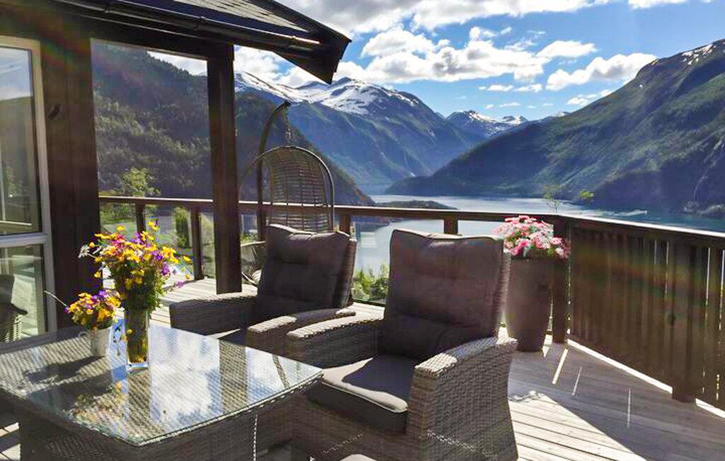 Drømmer I om en ferie omgivet af majestætiske bjerge, dybe fjorde og frodig natur? Så er dette idylliske feriehus i Valldal det perfekte sted for dig! Her finder I en kombination af komfort, ro og uendelige muligheder for udendørs aktiviteter. Feriehuset er rummeligt, charmerende og fuldt udstyret til jeres uforglemmelige ophold. Begynd dagen med en friskbrygget kaffe i det rummelige køkken, hvor hele familien kan lave mad sammen. Nyd den fredfyldte udsigt over fjorden over morgenmaden, mens morgenlyset strømmer ind gennem vinduerne. Den lyse opholdsstue med komfortable sofaer lægger op til at tilbringe omgængelige timer. Her kan I slappe af, spille spil og tilbringe tid med familien. Husets terrasse byder også på en spektakulær udsigt over de omkringliggende fjelde og fjordens glitrende vand. Slap af her og lad jer fortrylle af Norges naturlige skønhed.