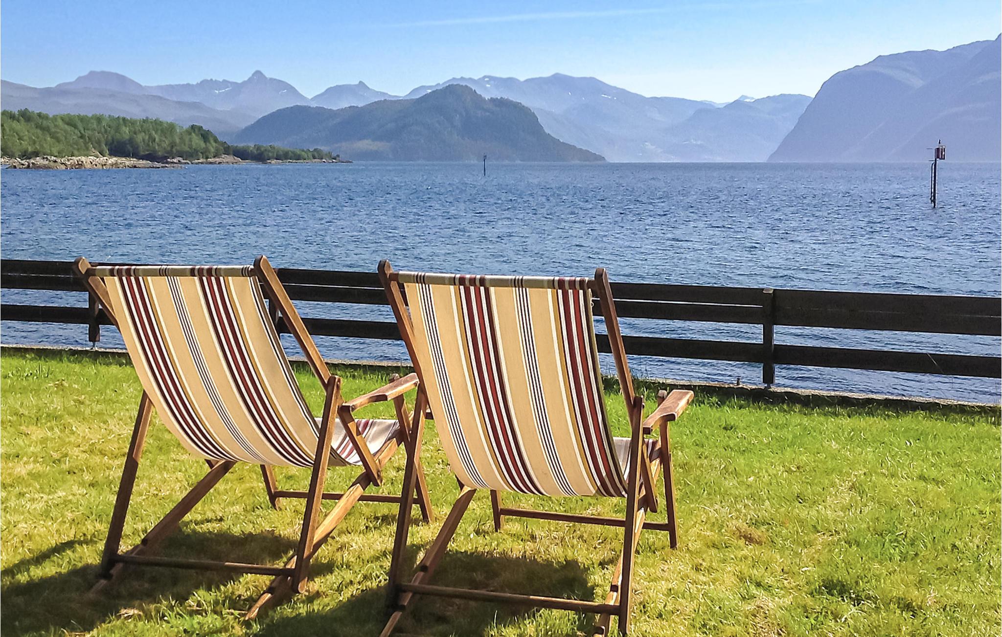 Fantastisk panoramaudsigt over Storfjorden og de smukke bjerge. Udsigten kan nydes fra haven eller den dejlige overdækkede terrasse. Feriehusets beliggenhed er afsondret - det perfekte sted at bare sænke skuldrene og nyde din ferie. Både og marinaer ligger kun 30 meter fra feriehuset, og der er meget gode betingelser for at prøve fiskeri i området.