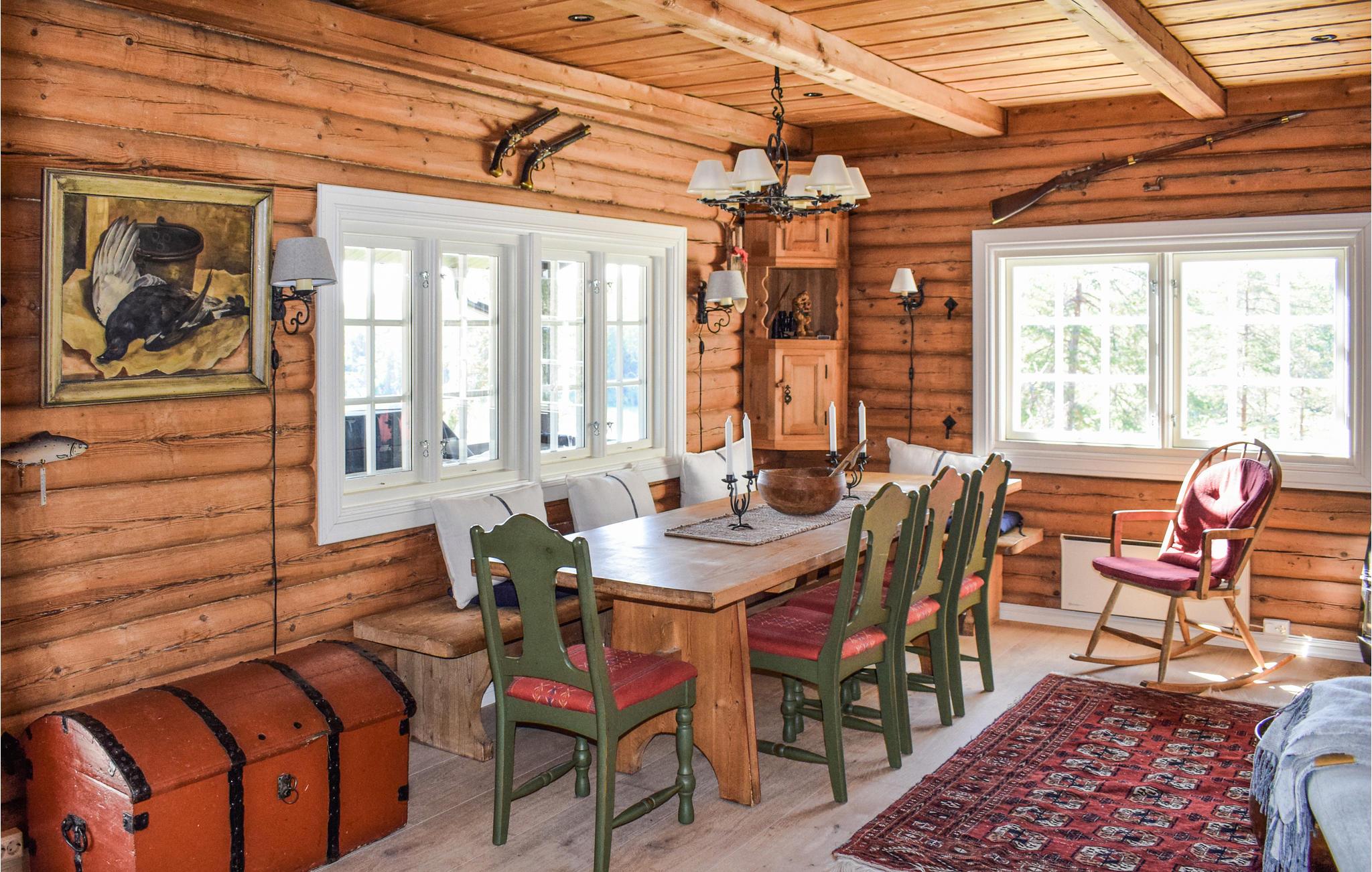 Drømmer I om en behagelig ferie i en hyggelig atmosfære? Så ville dette smukke træhus med egen mole være det perfekte valg. Denne smukke bjælkehytte byder velkommen lige ved Vansjø søen. Indenfor kan I forvente et højkvalitets og velindrettet interiør med flotte detaljer og hyggelige siddepladser. Her får I den ideelle kombination af komfort og autentisk stemning. Tilbring omgængelige aftener med at spille jeres yndlingsbrætspil og få varmen foran pejsen i de kølige måneder. På den enorme naturejendom vil unge og gamle finde masser af plads til at slippe dampen ud, men bemærk nærheden til indhegnet vand. Tilbring afslappende timer på terrasserne i løbet af dagen og afslut senere dagen med udsigt over det fortryllende landskab. Udnyt den nemme adgang til søen og hop i vandet på varme dage. Udforsk de omkringliggende skove til fods og oplev det rige dyreliv. Pak picnickurven og nyd naturens ro.