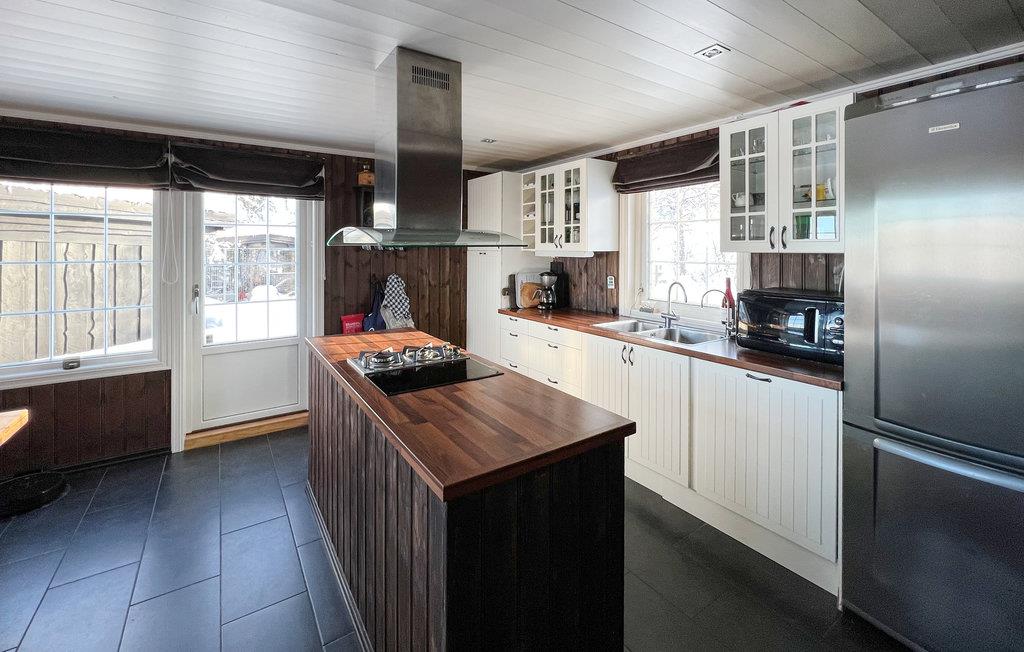 Velkommen til dette feriehus, som giver den store familie en bolig med vellykket samspil mellem moderne æstetik, komfort og funktionalitet. I kan glæde jer til hyggeligt samvær i den store sofa foran pejsen, hvad enten det er med kortspil, brætspil eller måske et stykke kage. Her kan I nyde tiden sammen langt væk fra hverdagens program og lave alle de ting, I normalt ikke har meget tid til. Nyd dagens måltider i det smukt oplyste køkken-alrum - og hvis vejret er godt, kan I spise på terrassen.