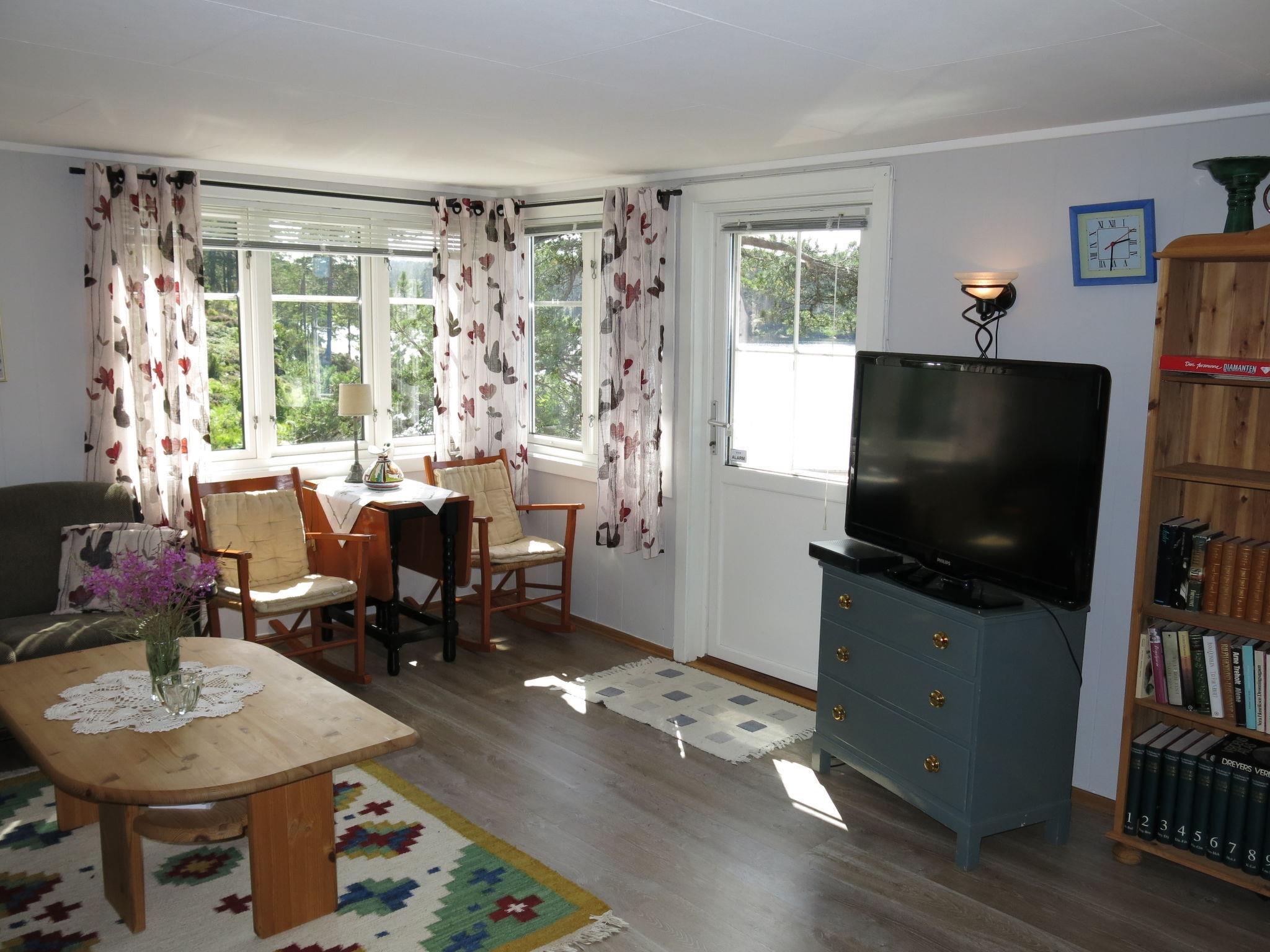"Ogge", 5-room house 85 m2 on 2 levels. Simple and cosy furnishings: living room with Scandinavian wood stove, dining table and TV. Exit to the terrace. 1 room with 1 double bed (150 cm, length 200 cm). 1 double bedroom with 1 double bed (150 cm, length 200 cm). Kitchen (4 hot plates, oven, kettle, freezer, electric coffee machine). Sep. WC. Upper floor: 2 rooms with sloping ceilings, each room with 1 x 2 bunk beds (75 cm, length 190 cm), 1 double bed (150 cm, length 200 cm). Shower. Wooden floors. Very beautiful view of the lake. Please note: one double bedroom is outside the apartment. Maximum 2 pets/ dogs allowed. Smoke alarm. Freezer approx. 20 l. Process water from the well, drinking water from the store. The shower is accessed from the outside and WC (combustion toilet) in the annex. Bed layout is flexible. There are more sleeping options available than the maximum number of people allowed which may, however, not be exceeded. 924531169