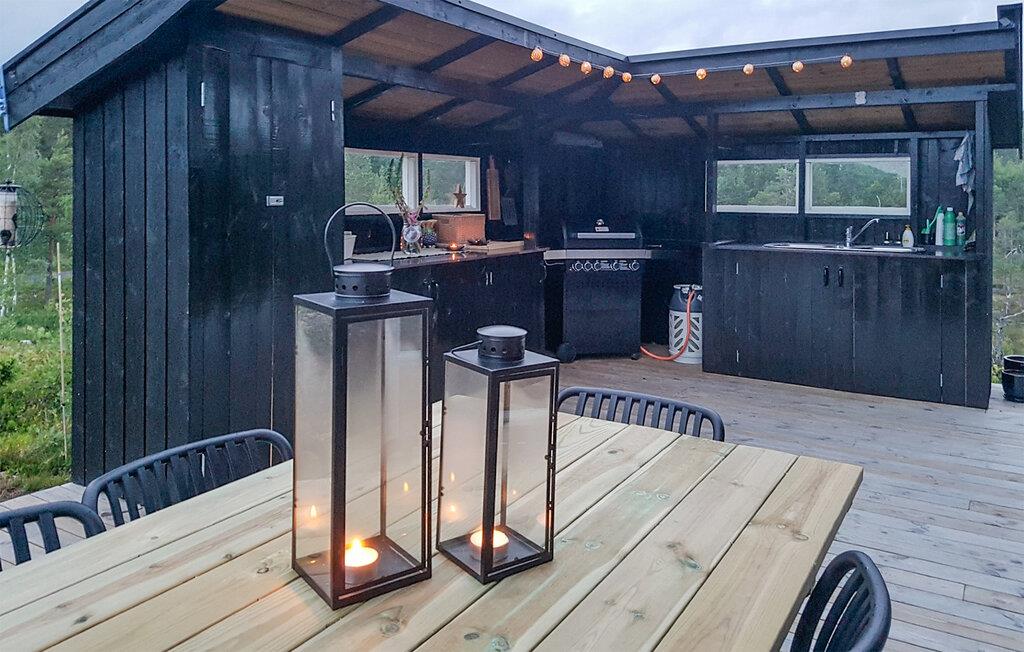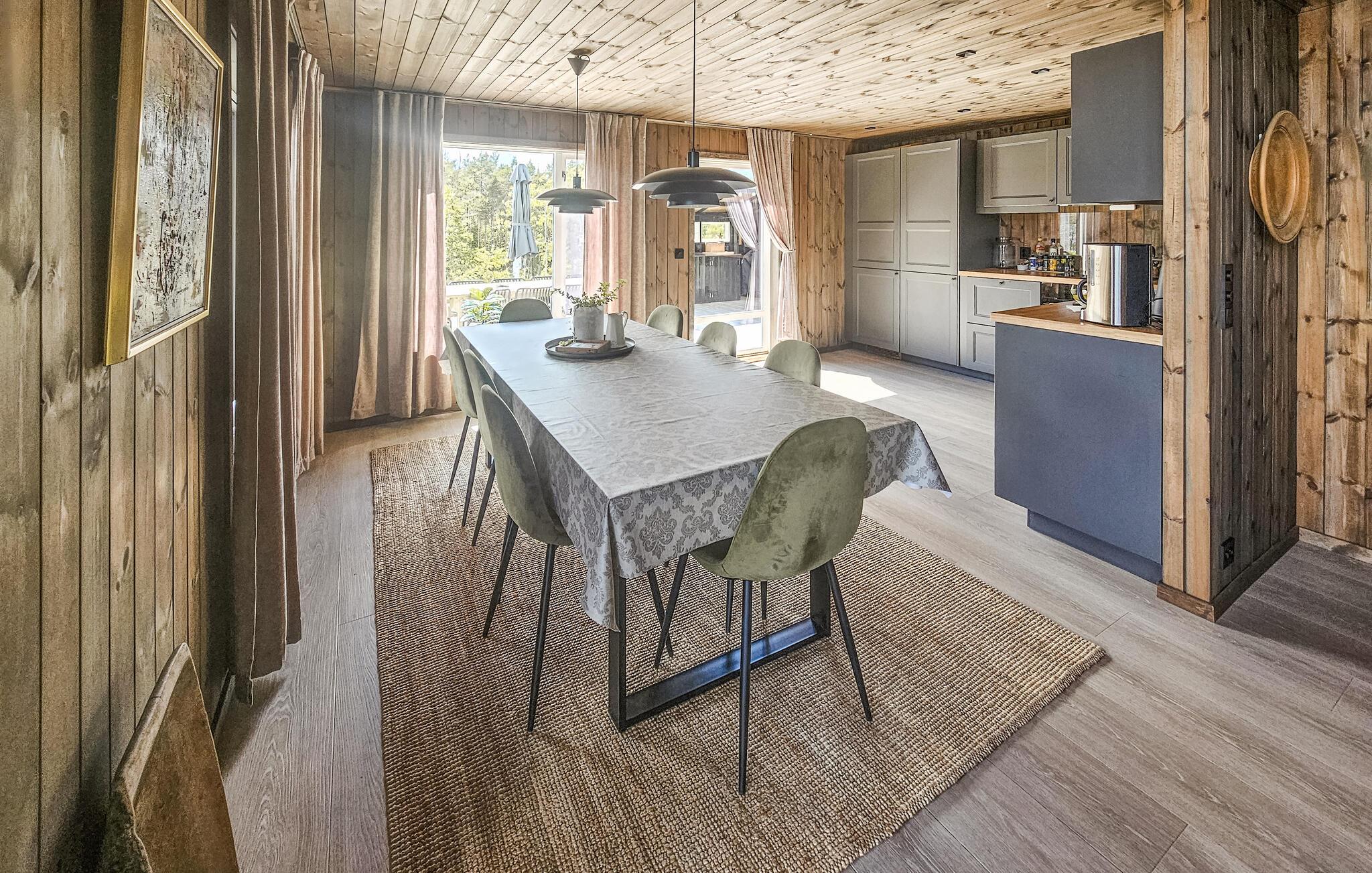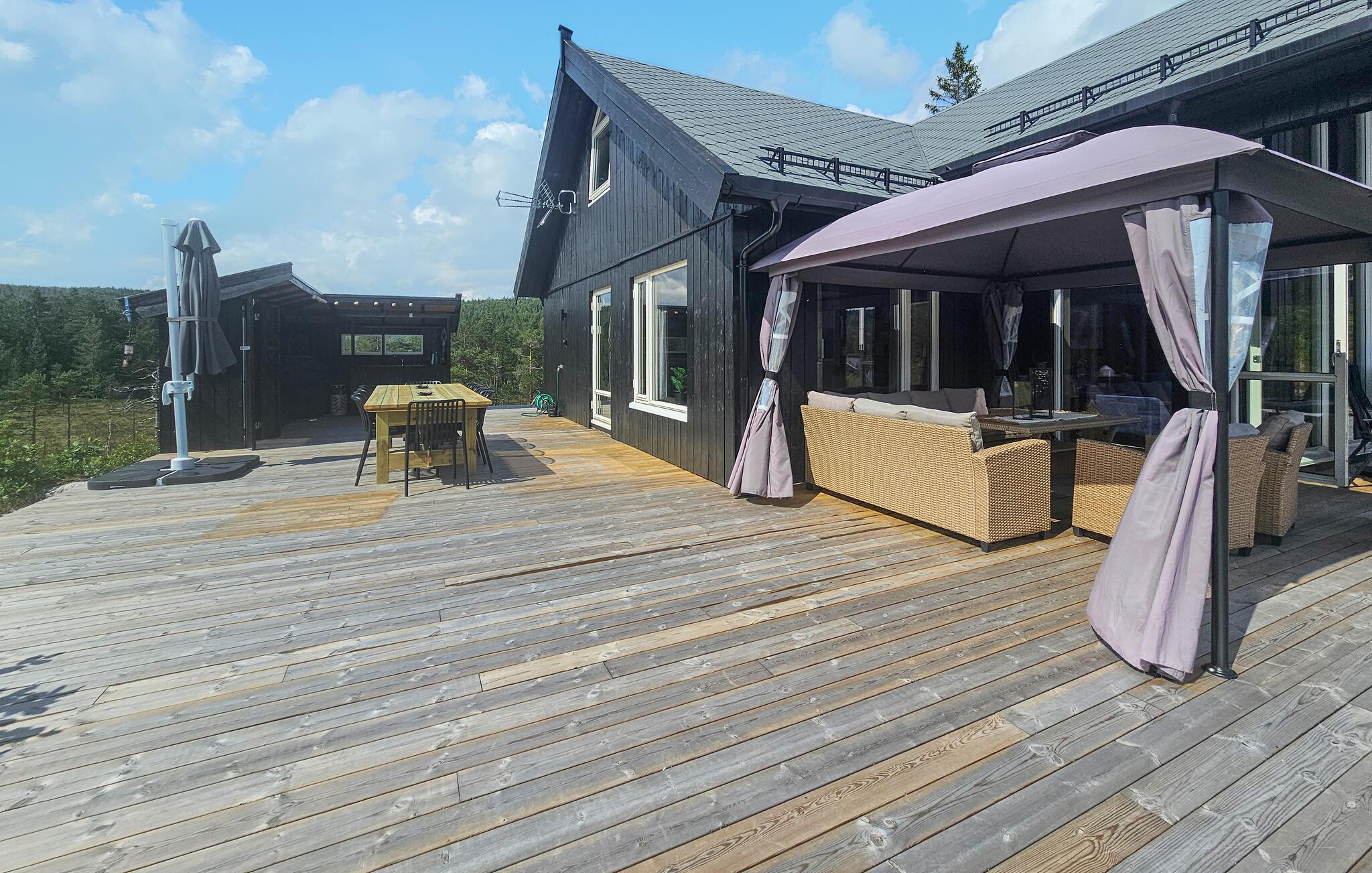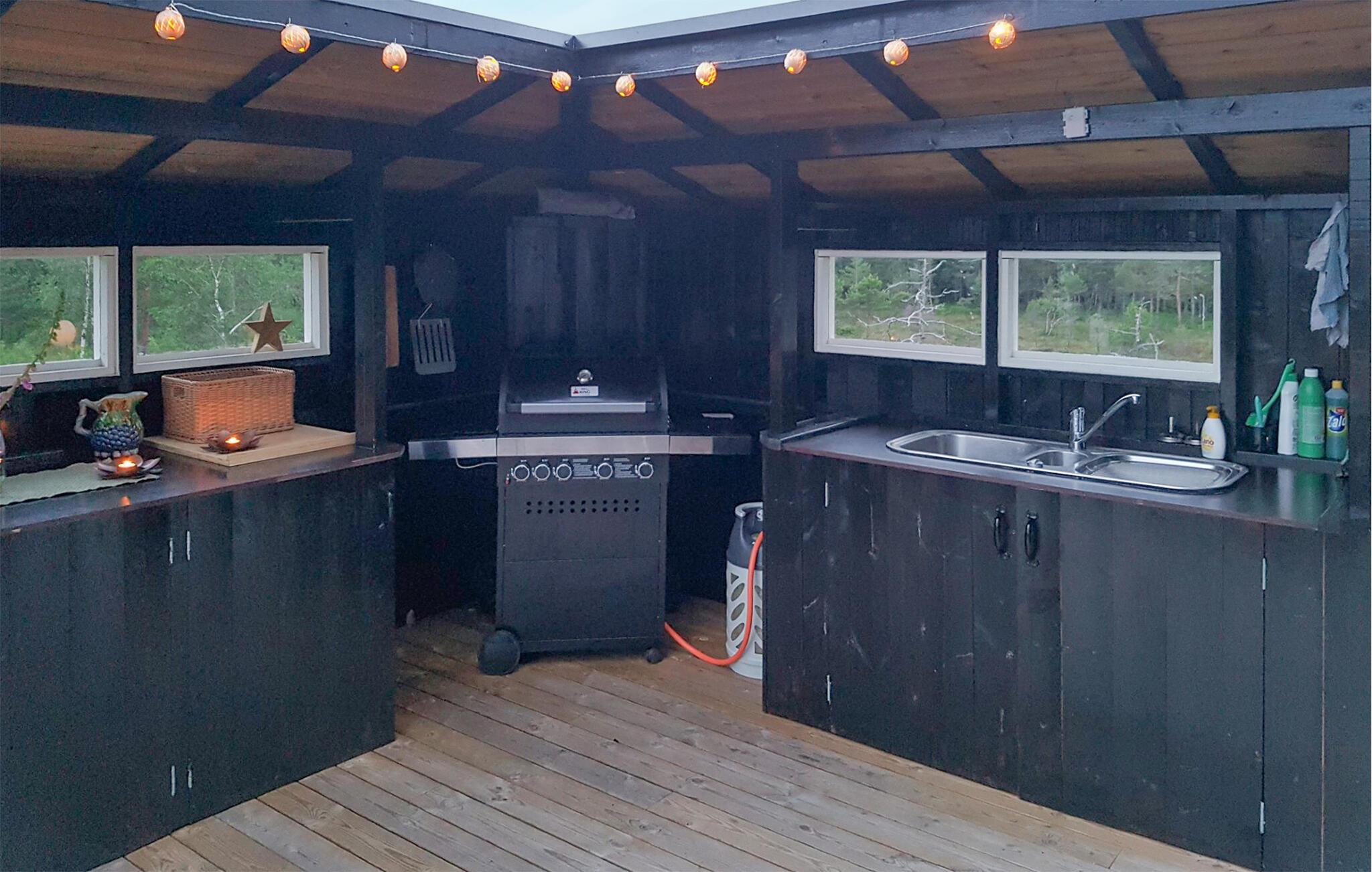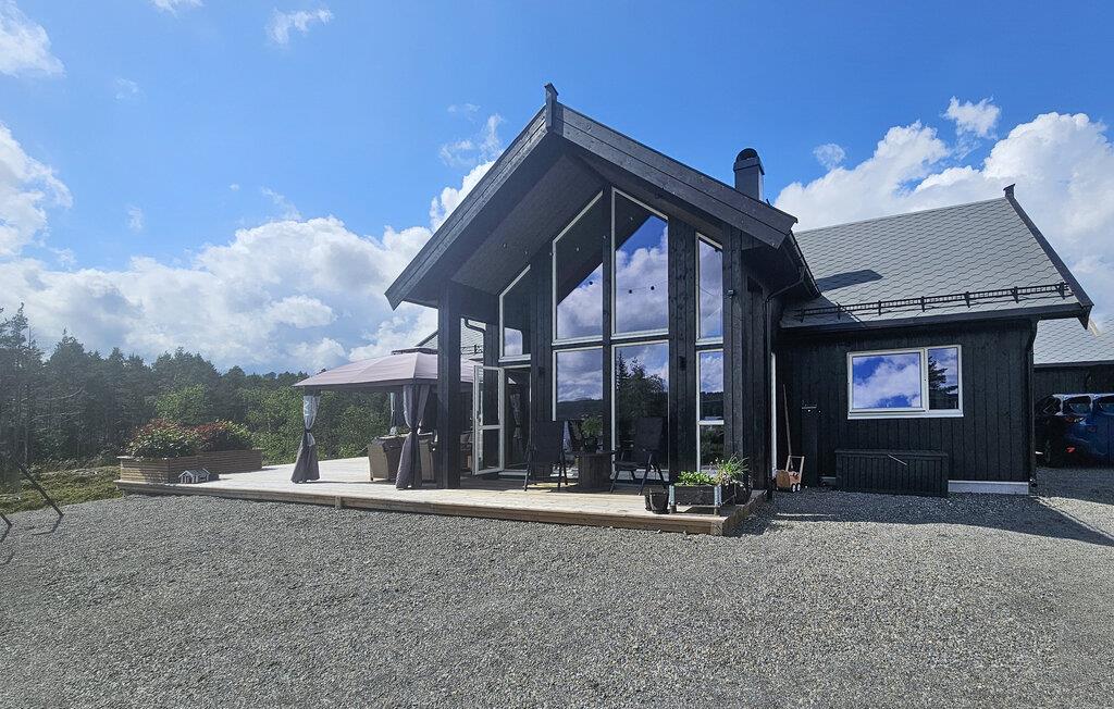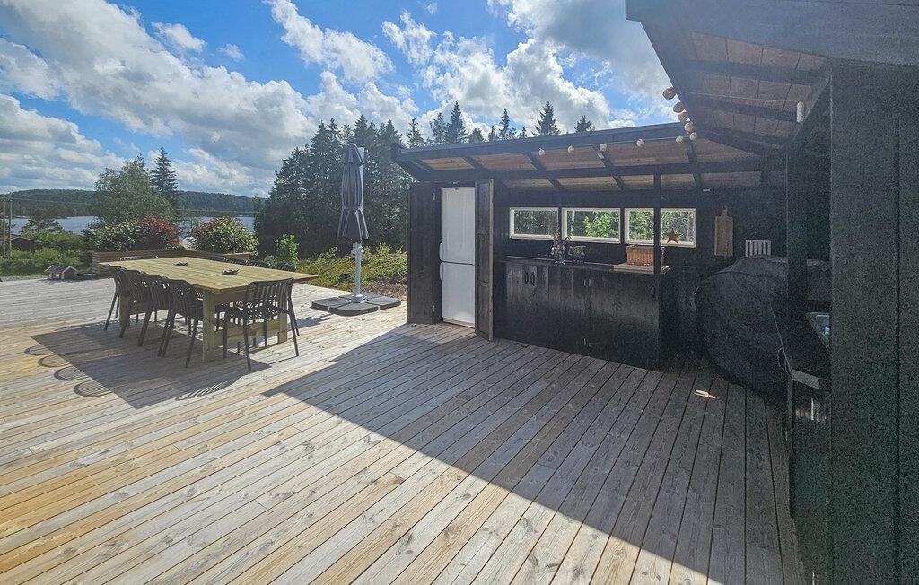 Lige ved den maleriske sø Sørfjorden venter dette skønne feriehus i Vegårshei på jer til en afslappende ferie i Norge. Det moderne, stilfulde hus giver jer en smuk udsigt over søen og har en skøn indretning. Begynd dagene med morgenmad på den store terrasse, hvorfra I kan nyde den brede udsigt over søen og den omkringliggende natur. Udekøkkenet med grill giver mulighed for at tilberede jeres måltider udendørs og nyde den friske luft. De komfortable siddepladser lægger op til at afslutte dagen i fred.