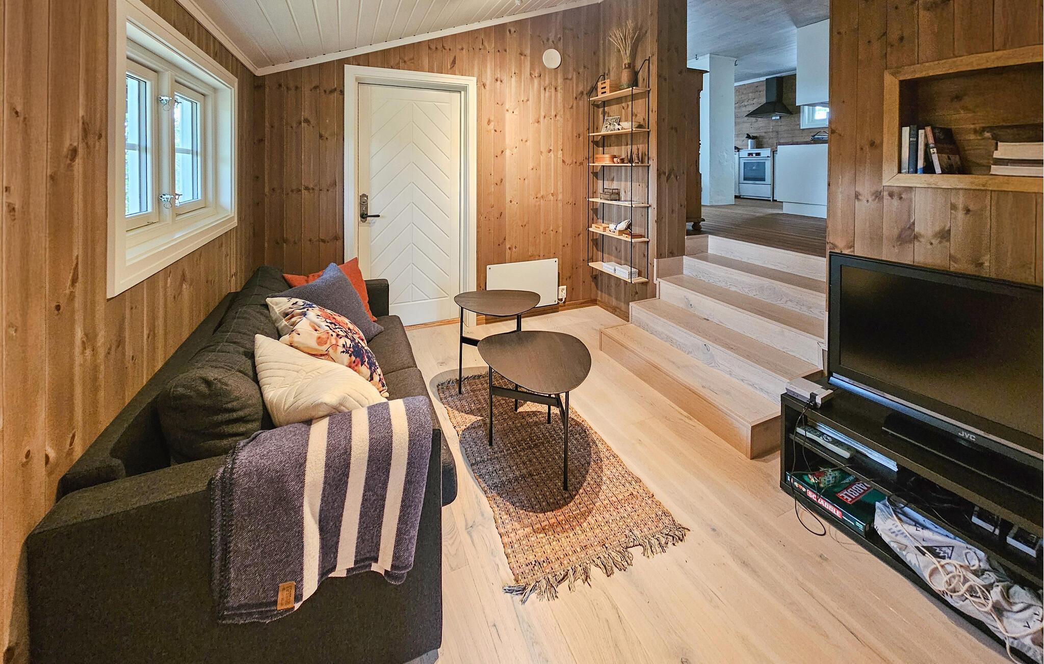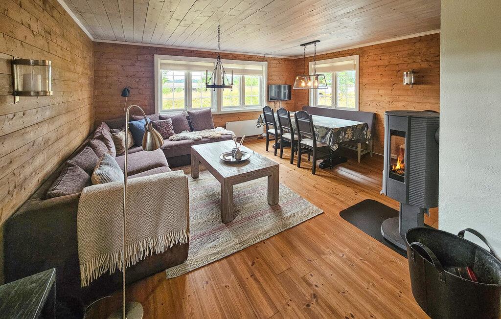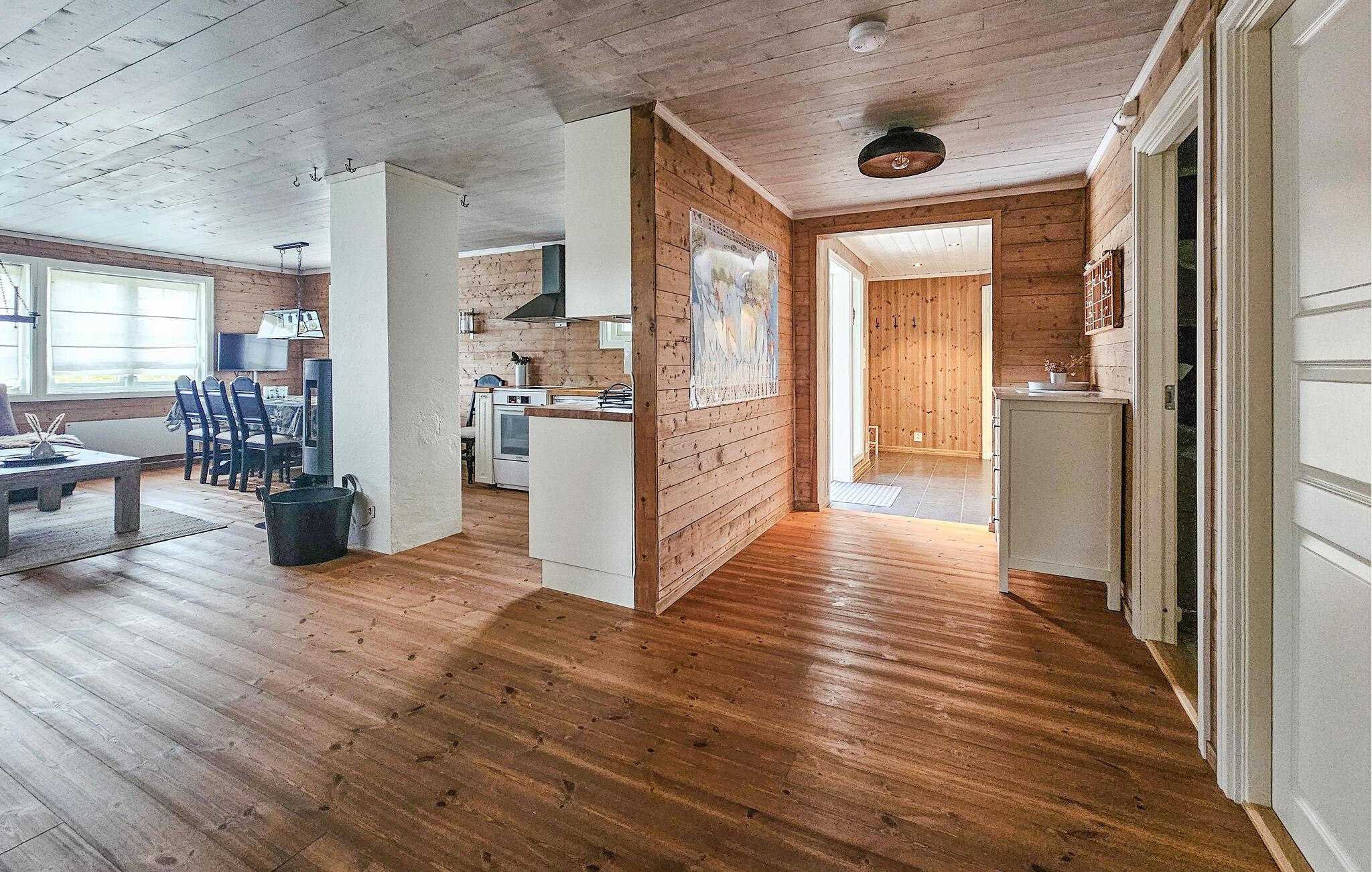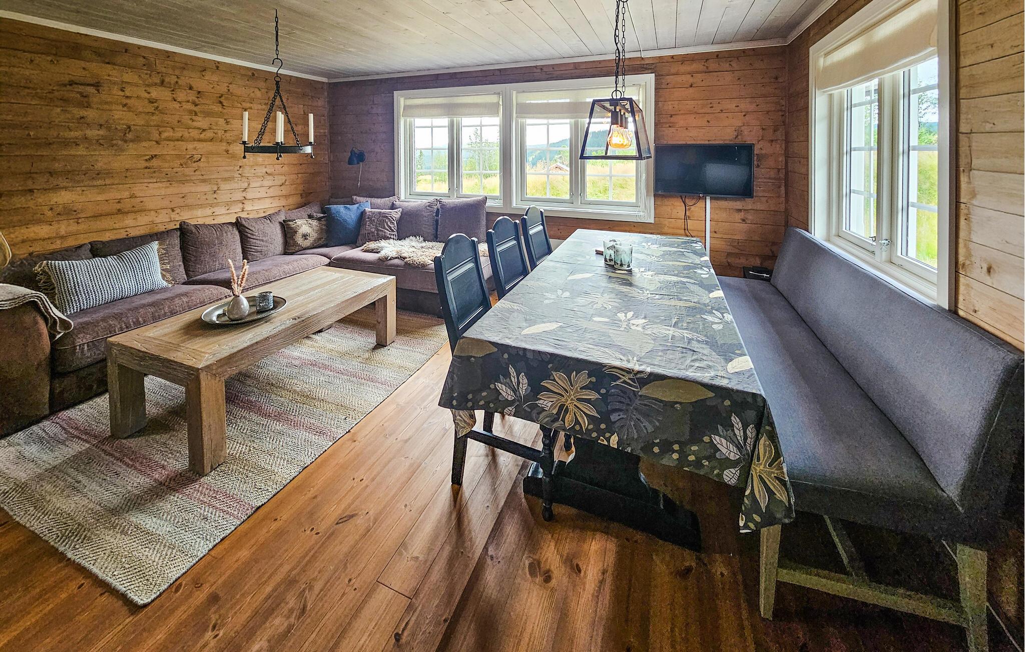 Velkommen til denne komfortable og hyggelige hytte på Vegglifjell, hvor I og familien kan lade hverdagen forsvinde. Tænd pejsen og føl jer hjemme, mens I tilbereder lækre måltider i det åbne køkken. Brug spisebordet til sjove spilleaftener eller hyg jer i den rummelige sofa og stream en spændende film.