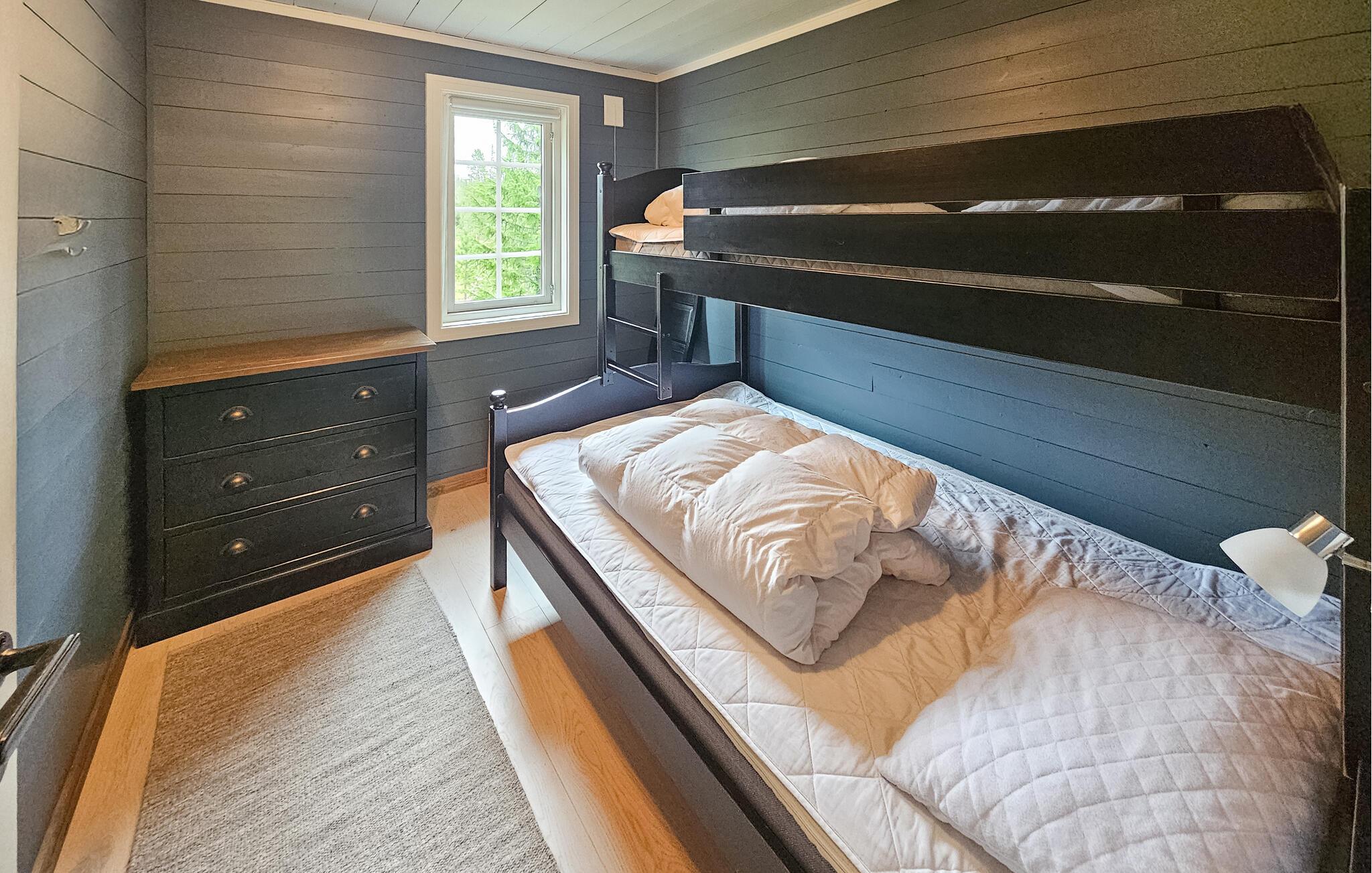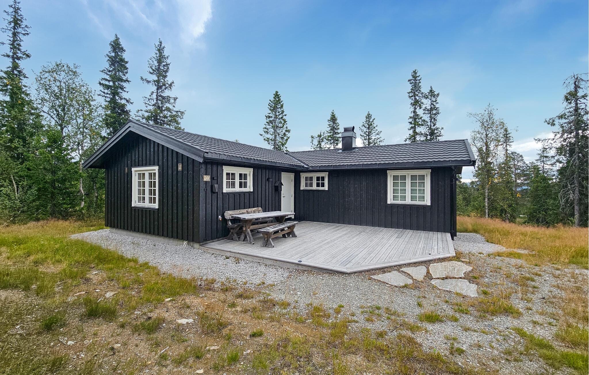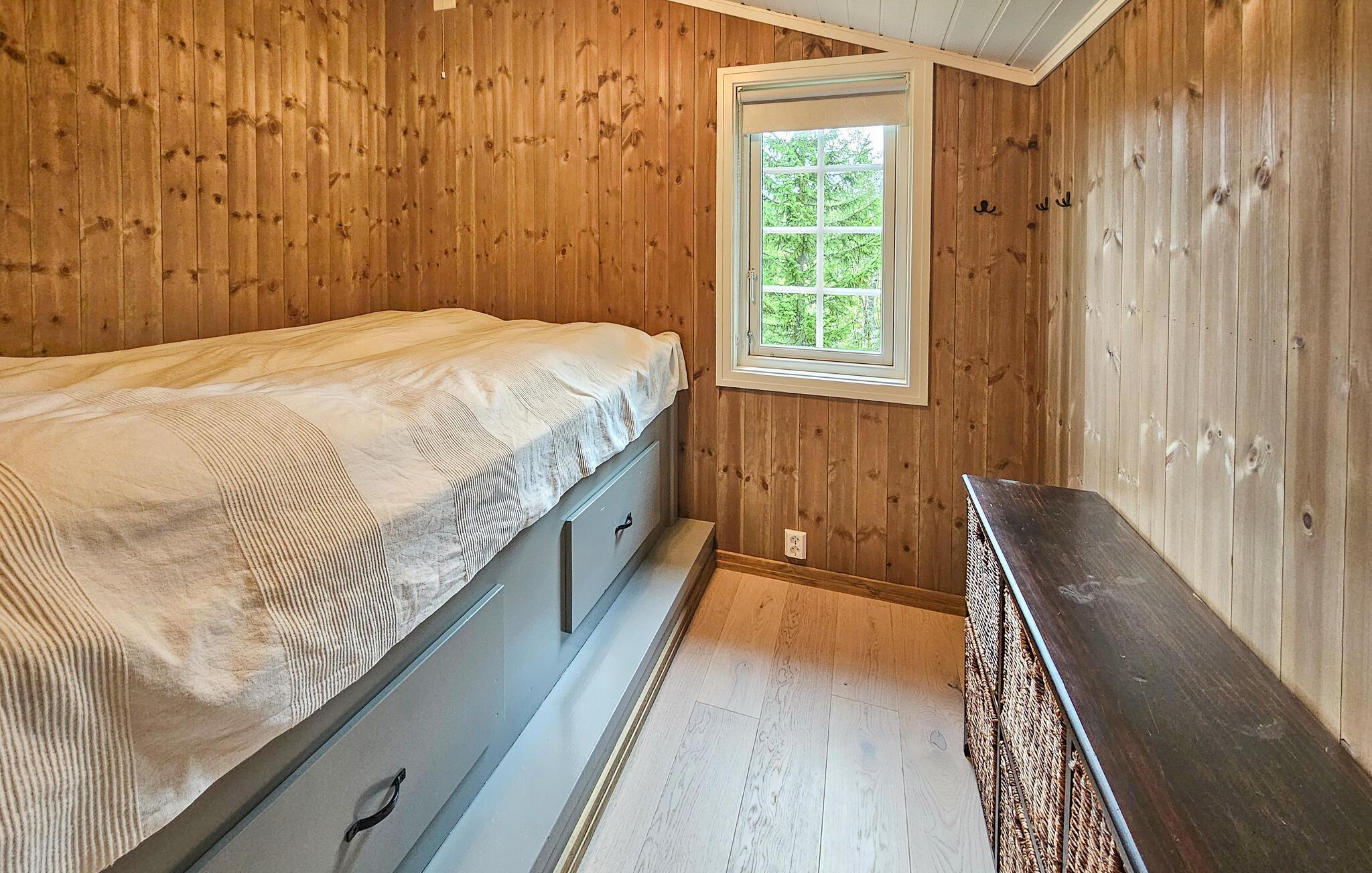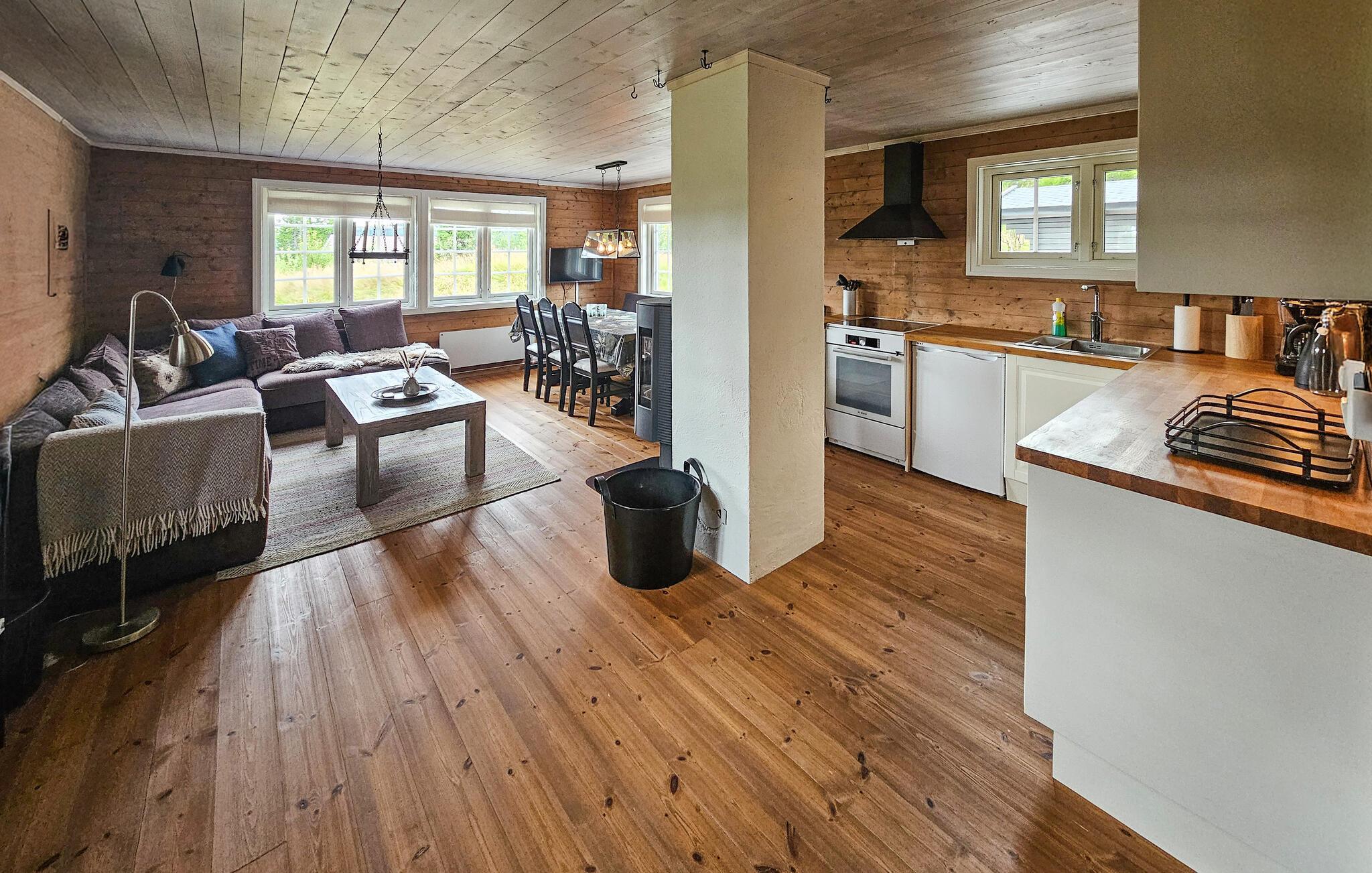 Velkommen til denne komfortable og hyggelige hytte på Vegglifjell, hvor I og familien kan lade hverdagen forsvinde. Tænd pejsen og føl jer hjemme, mens I tilbereder lækre måltider i det åbne køkken. Brug spisebordet til sjove spilleaftener eller hyg jer i den rummelige sofa og stream en spændende film.