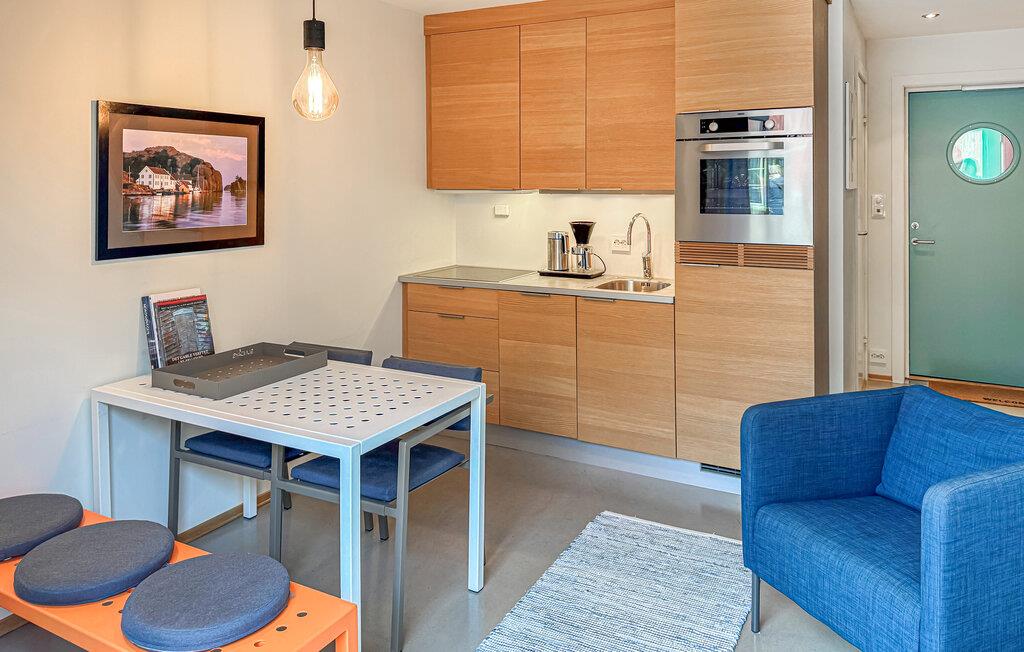 Denne lyse og luftige lejlighed har en beskyttet beliggenhed ved havnen på den smukke ø Ny-Hellesund og tilbyder jer et komfortabelt hjem væk fra hjemmet under en naturfyldt ferie ved havet. Tilbered solide måltider i det dejlige, åbne køkken og nyd fælles måltider ved det lyse spisebord. Hold hyggelige spilleaftener eller fordyb jer i en god bog på den behagelige sofa.