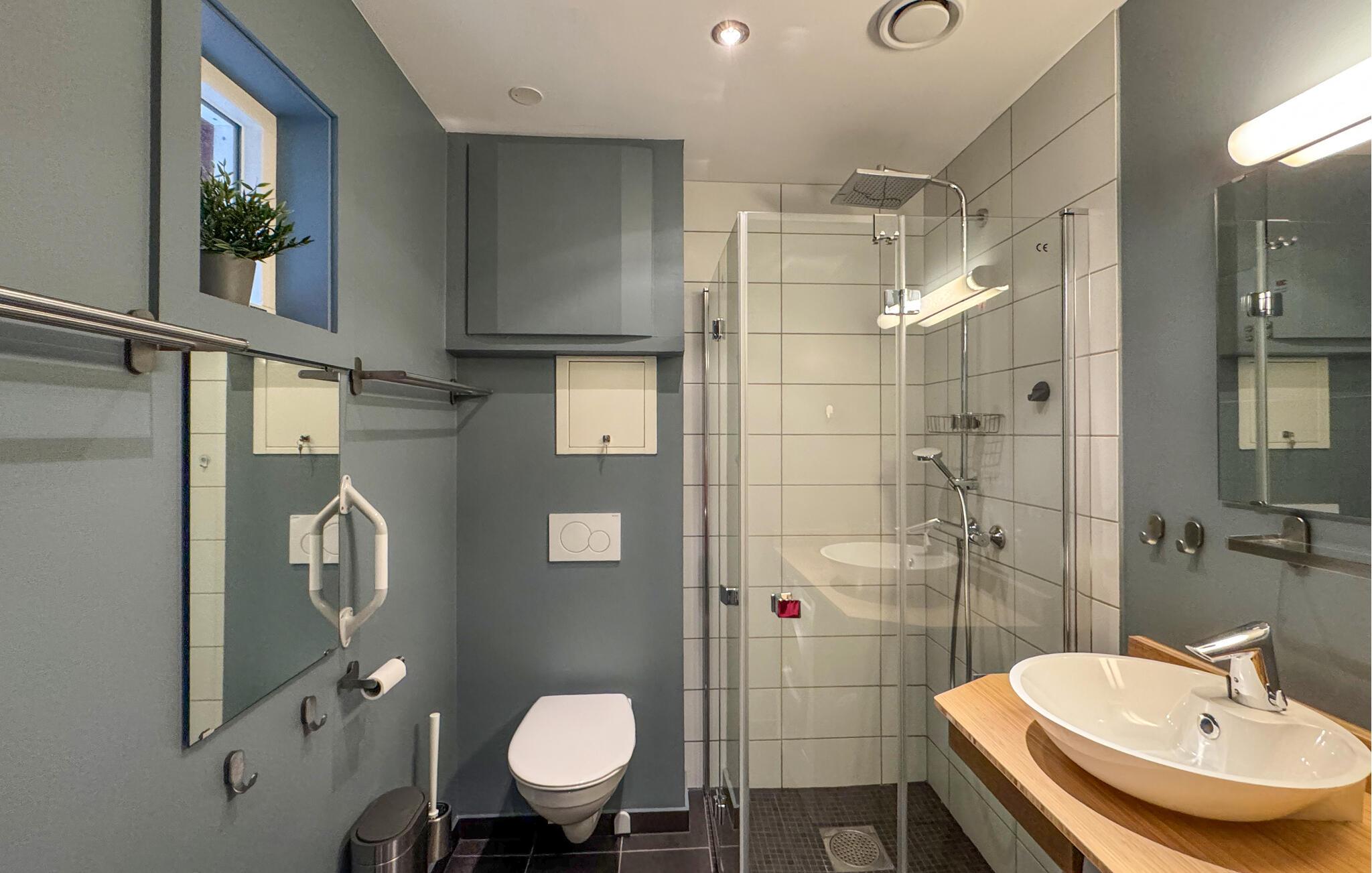 Badeværelse (nr. 1) - WC. Varmt og koldt vand. Bruser