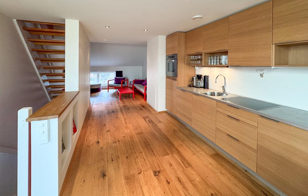 Denne lyse og luftige loftlejlighed giver jer mulighed for at sætte hverdagen på pause med familien på den beskyttede ø Ny-Hellesund. Naturmaterialer og et harmonisk design skaber en behagelig atmosfære i det indbydende interiør. Glæd jer til at lave mad sammen i det åbne køkken og nyde hyggelige måltider ved det stilfulde spisebord. Slap af i sofaen, nyd en spilleaften eller tag jer tid til en god samtale over et glas vin.