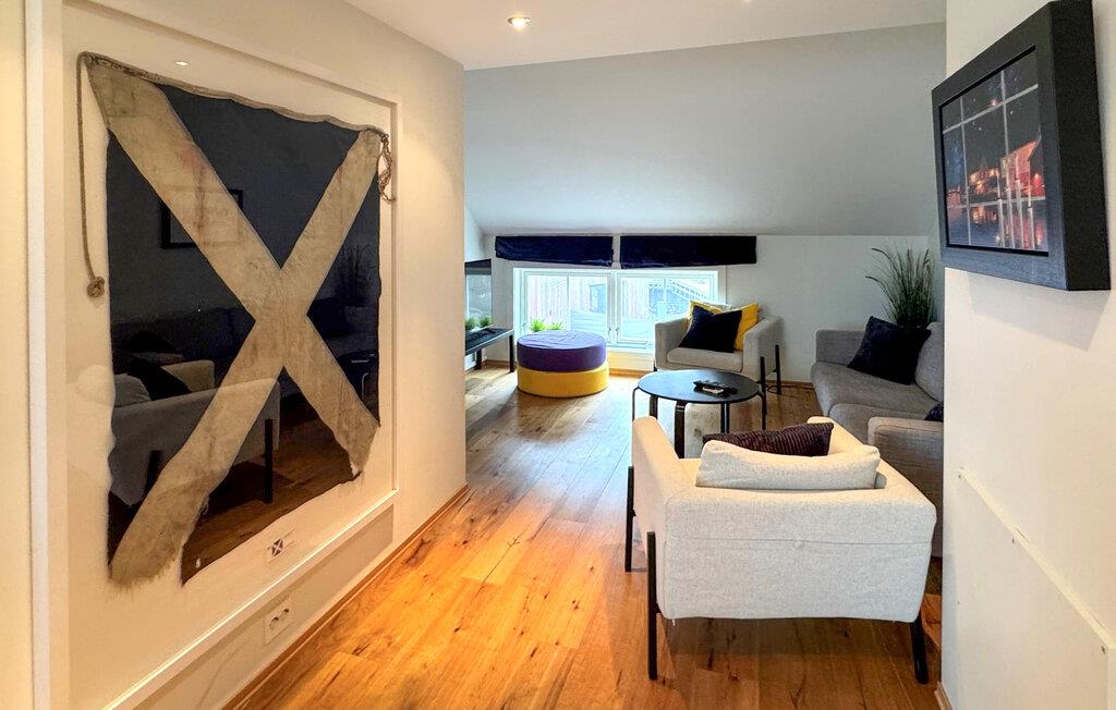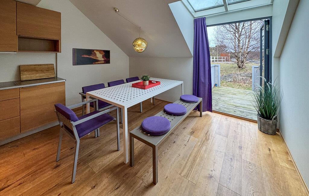 Denne lyse og luftige lejlighed giver jer mulighed for at sætte hverdagen på pause med familien på den beskyttede ø Ny-Hellesund. Tiltalende farver og et harmonisk design skaber en behagelig atmosfære i det indbydende interiør. Glæd jer til at lave mad sammen i det åbne køkken og nyde hyggelige måltider i smukke omgivelser. Slap af i sofaen, nyd en spilleaften eller tag jer tid til en god samtale over et glas vin.